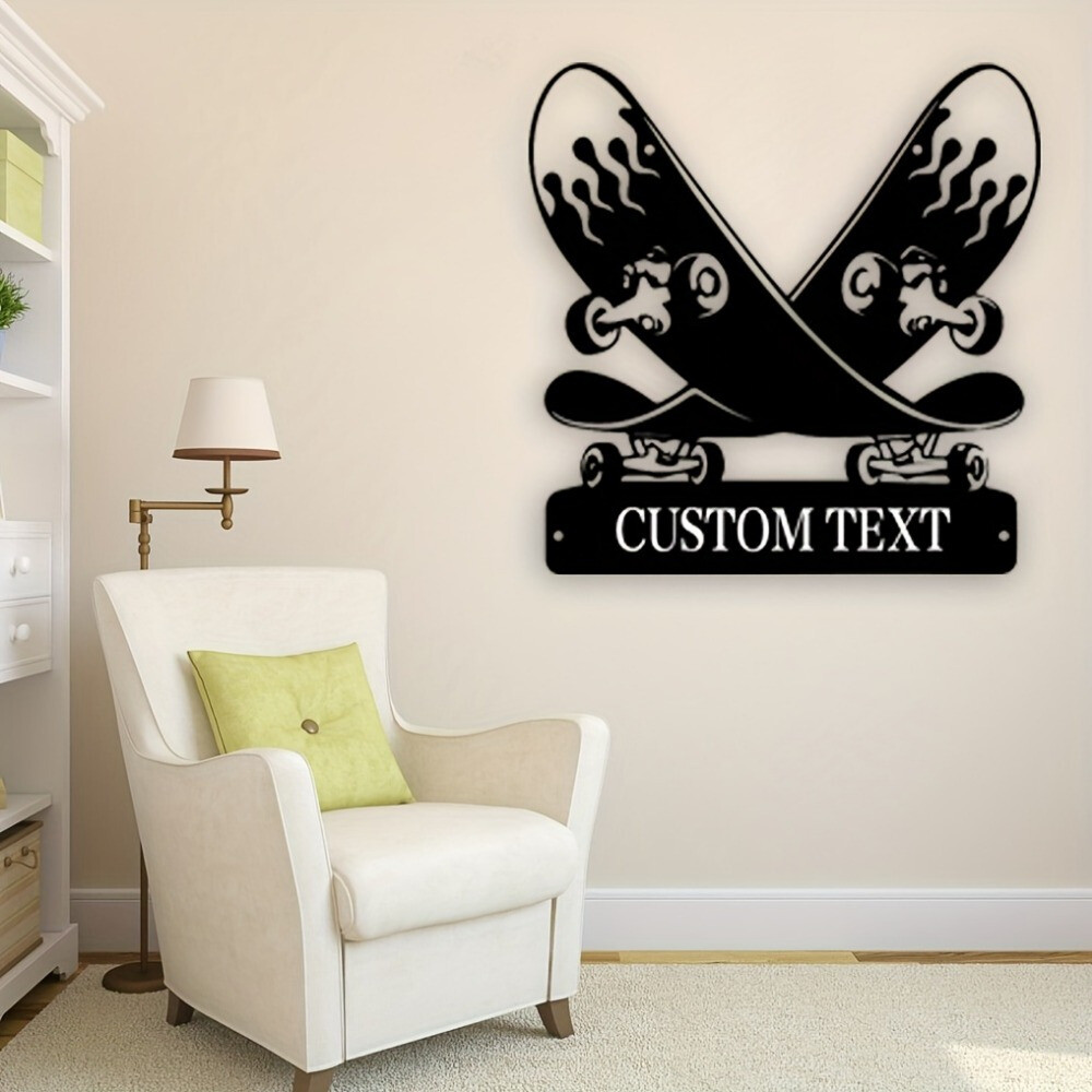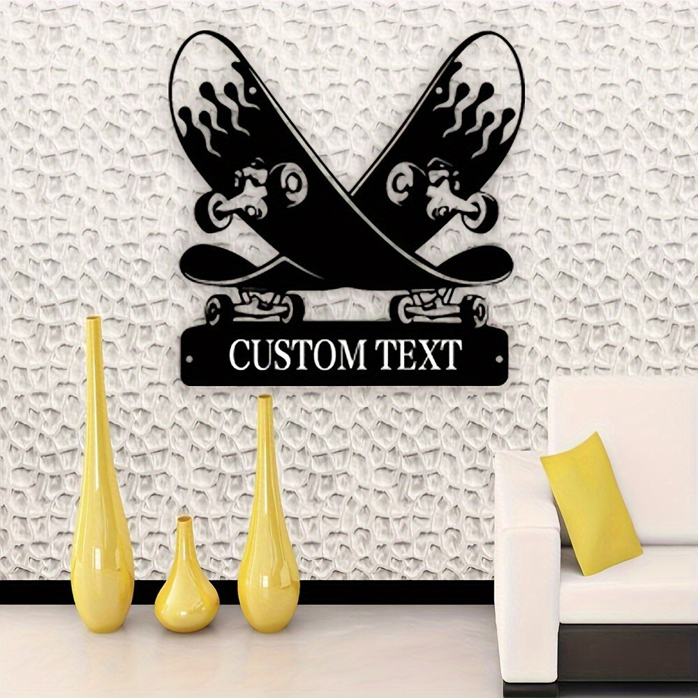 This skateboard-shaped metal wall decor is such a cool addition to my space! The Art Deco-inspired design gives it a stylish retro vibe, and I love that I could customize the text to make it personal. The quality is fantastic—solid metal with a sleek finish that looks even better in person. It’s lightweight but sturdy, and the mounting was super easy. Perfect for adding a unique touch to any room!