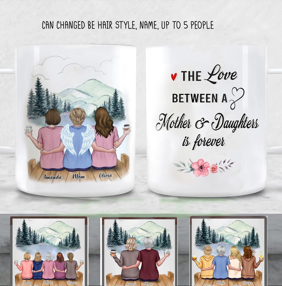Customize The Love Between A Mother And Daughters Is Forever Mug Personalized Product Details.. This high quality 11oz. ceramic white mug has a premium hard coat that provides crisp and vibrant color reproduction sure to last for years. Perfect for all hot & cold beverages. The highest quality printing possible is used. It will never fade no matter how many times you wash it. Material: 100% Ceramic. Print both sides. Dishwasher and Microwave Safe. High Gloss + Premium White Finish. Printed in the U.S.A. Personalized & Custom. We support personalized and custom mug to add custom, when placing an order, you can add notes to the "order note" in shipping address section. Also you can contact us directly via message. Shipping Info. Ready to ship in 1 to 2 business days, All products are made-to-order and proudly printed in the United States. Shipped by USPS and DHL, You will receive your order in 5-7 days. Replace & Refund. All products are defective during shipping broken, chipped will be replaced free of charge. You are not satisfied with the product, we will refund 100% money to you. If any other issues arise, please do not hesitate to message, we would be more than happy to assist you.