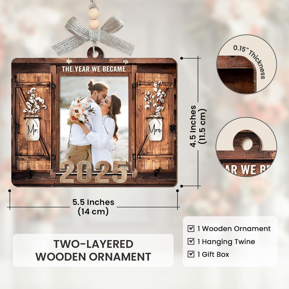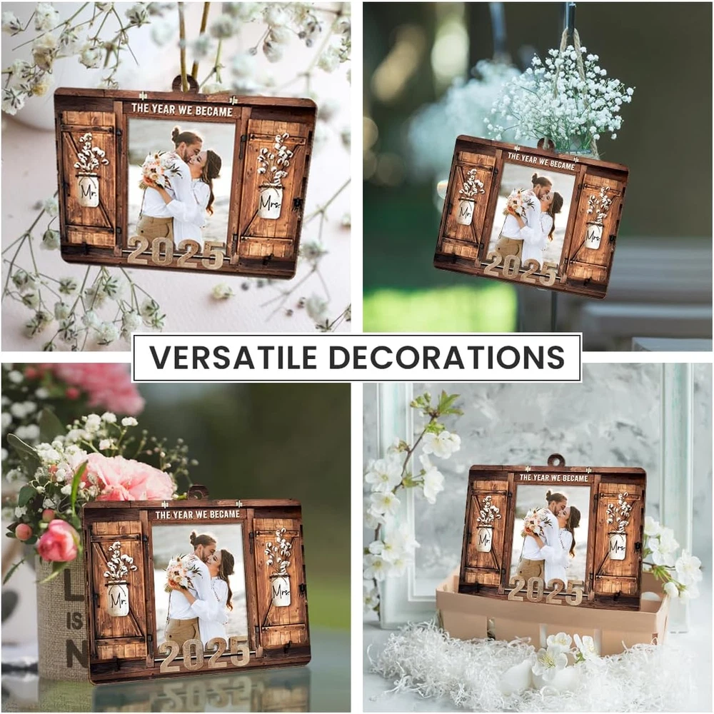 Store New Arrivals Add to Favorite View Feedback Contact Personalized Wedding Gifts for Couples 2025 - Marriage Customized Ornaments with Photos, Personalized Picture Frame, Mr and Mrs Engagement Gifts, Wood Ornament for Just Married Decorations Description Item Weight 1.13 ounces Item model number MO25 Country of Origin China Package Dimensions 6.57 x 4.61 x 0.75 inches Brand Unbranded Shipping Fast shipping USA Custom Ornaments For Couples: These personalized wood ornaments capture the essence of a newlywed couple's special year, featuring a heartfelt message and a cherished personalized photo. More than just a decoration, it's a love keepsake, making it ideal engagement gifts for couples or unique bridal shower decorations. The rustic wooden design adds a touch of warmth and personal touch to any space, making it a lasting symbol of their love story. Premium Wooden Decor : Crafted from high-quality wood, these two-layered custom couple Christmas ornaments showcase intricate detailing and a rustic charm. The personalized ornament features a vibrant, fade-resistant print of your custom photo, ensuring your cherished memory remains vivid. Measuring approximately 5.5''x4.5''x0.4'', these wooden ornaments are perfect for showcasing your unique love story as a couple ornament or adding a personal touch to your wedding decoration. Perfect Wedding Gifts For Couple: Each personalized newlywed ornament arrives meticulously packed in a beautiful gift box, ready for immediate gifting. The included elegant gold ribbon makes it easy to hang this holiday decor piece on a tree, mantel, or anywhere you desire. These decorative hanging ornaments are perfect for celebrating a couple's 1st Christmas married ornament milestone. As a special ornament for her, it stands out, conveying a heartfelt message of love and commitment. Wedding Shower Decorations For Newlyweds: More than just for the Christmas tree, this wood ornament can be displayed anywhere, inside or outside, adding a touch of personalized charm. It also makes a delightful addition to your engagement party decorations, just married car decorations, hanging party decor, just married decor, room decor, wedding decor, house decor, tree decoration, home decoration, mr and mrs decorations, Christmas party decorations, engagement decorations,... Personalized Wedding Gifts: More than for home decor, this wedding ornament 2025 can be served as a gift for several occasions, like bridal shower gifts, bride gifts, anniversary gifts for husband, newly wed gifts for the couple, customized gifts for women, wedding anniversary gifts for couple, honeymoon gifts, bride and groom gifts, engagement gifts for her, custom photo gifts, wedding gifts for bride, couples gifts for him and her, Christmas gifts,... Product Description RETURNS We offer a 30-Day Return Policy on items which you are not completely satisfied with. You have the option for a full-refund or an exchange of the item. No returns are available on items shipped outside of the USA. PAYMENT We accept PayPal. CONTACT US This page content is yet to come Please ad us to your favorite seller and visit again later Thank You CUSTOMER SATISFACTION We try our very best to make sure every customer is completely satisfied. If there's a problem, message us! We're happy to help.