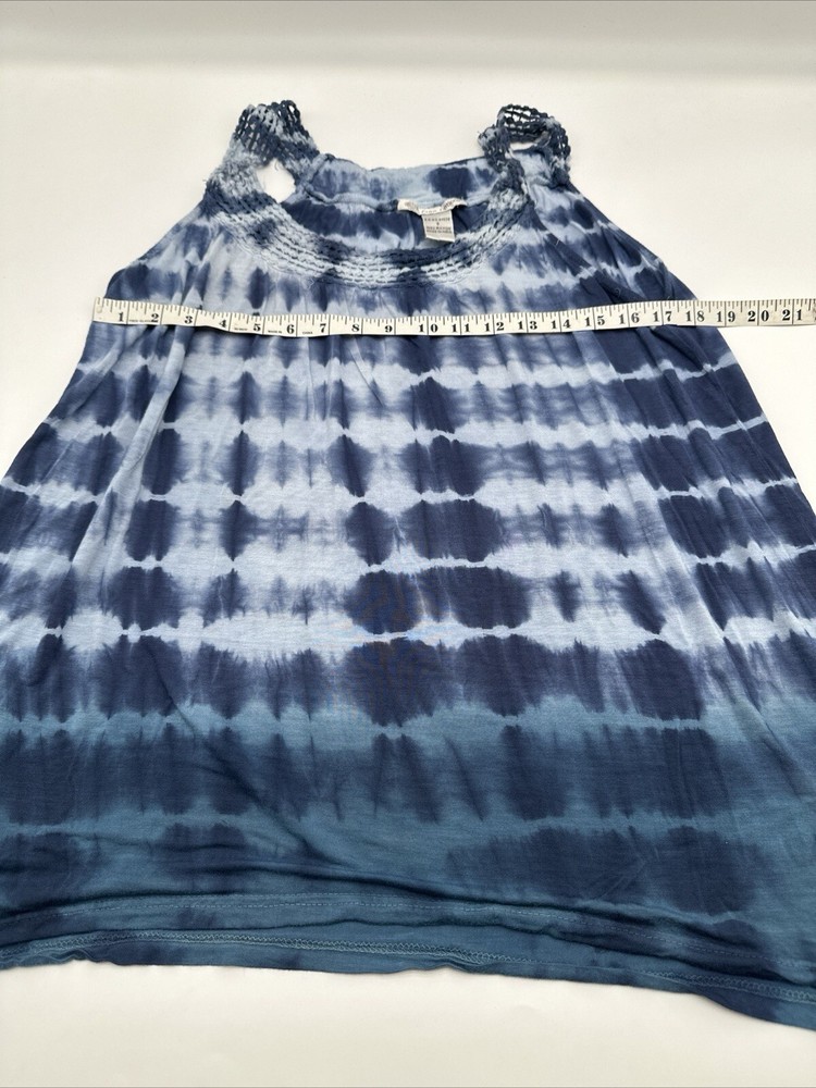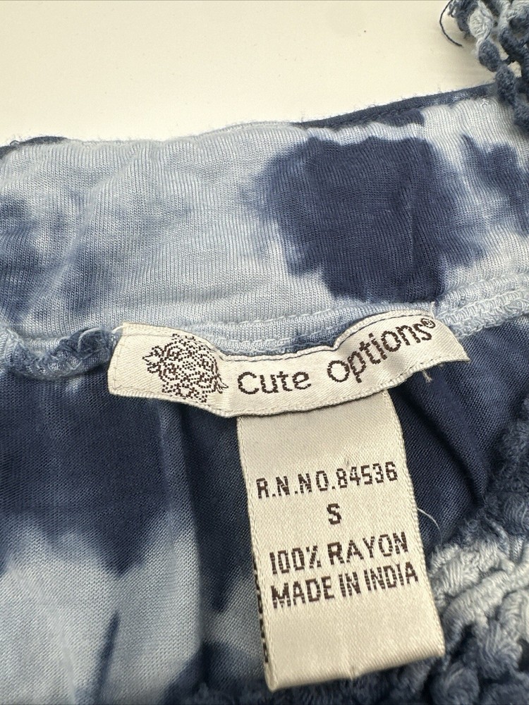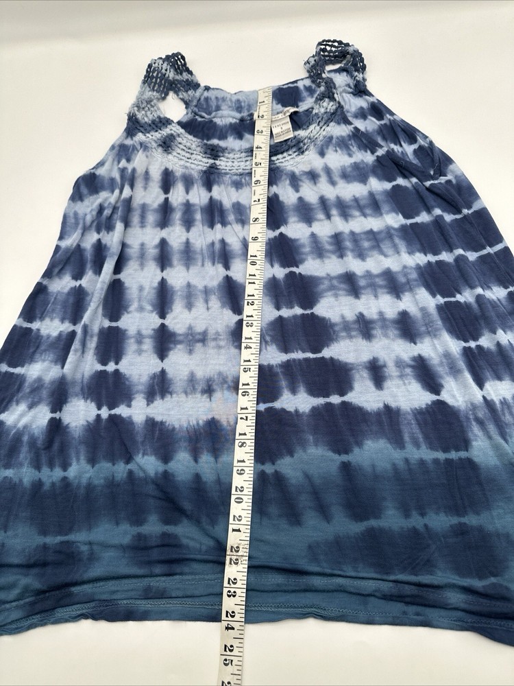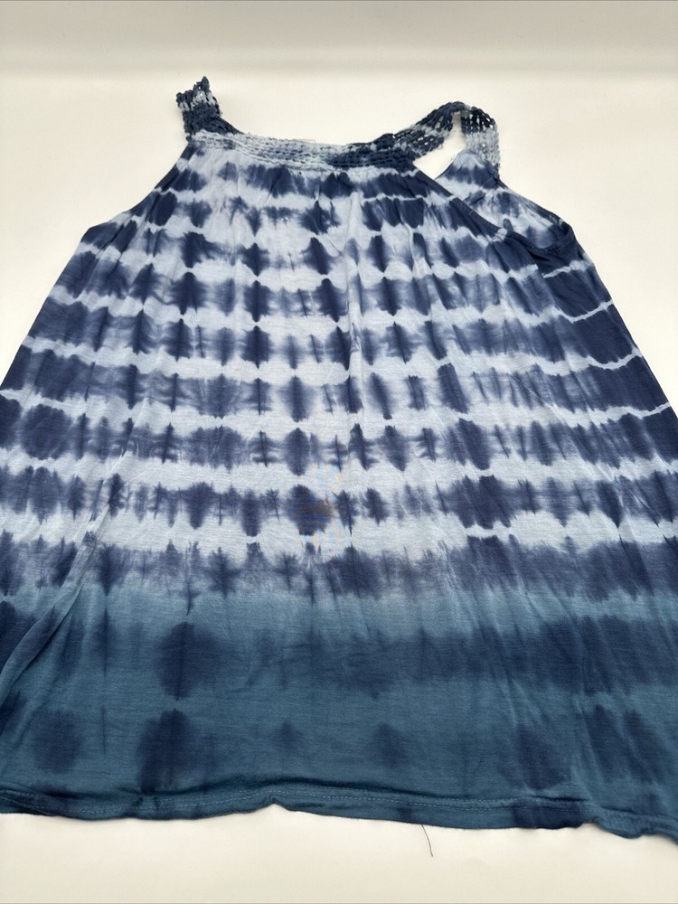 This Cute Options blouse is perfect for a casual day out. The halter neckline and sleeveless design provide a comfortable fit, while the pullover closure makes it easy to wear. The blue tie-dye pattern adds a touch of style to this classic piece, making it a great addition to any wardrobe. Made from rayon, this blouse is easy to care for and will maintain its vibrancy for years to come. It is a great choice for those who are looking for a versatile and stylish top. Check Pictures for flaws and measurements
