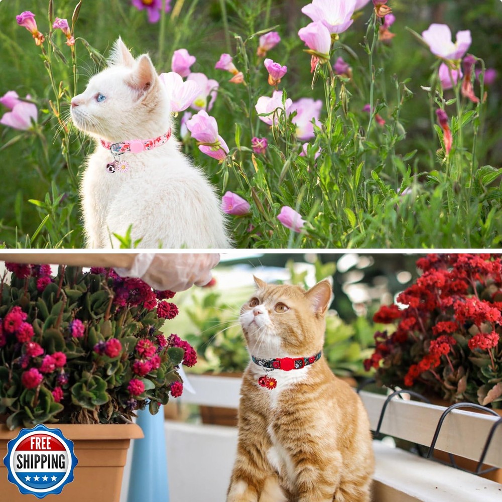 These adorable cat collars are perfect for my playful kitty! The breakaway design gives me peace of mind, and the floral daisy pendants add such a cute touch. Love that the bells are removable for quieter moments. The 4-pack offers great variety, and the adjustable fit works perfectly. My cat looks so stylish while staying safe—definitely a great buy!