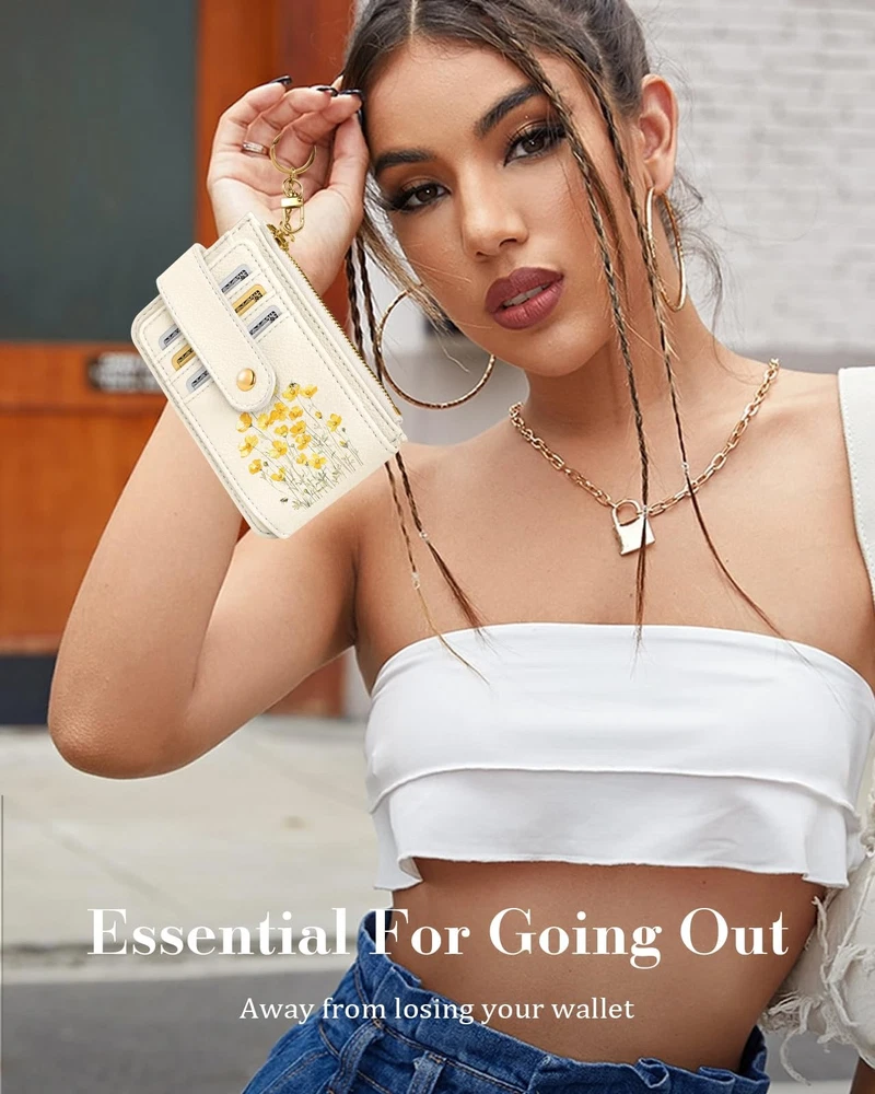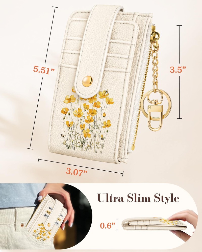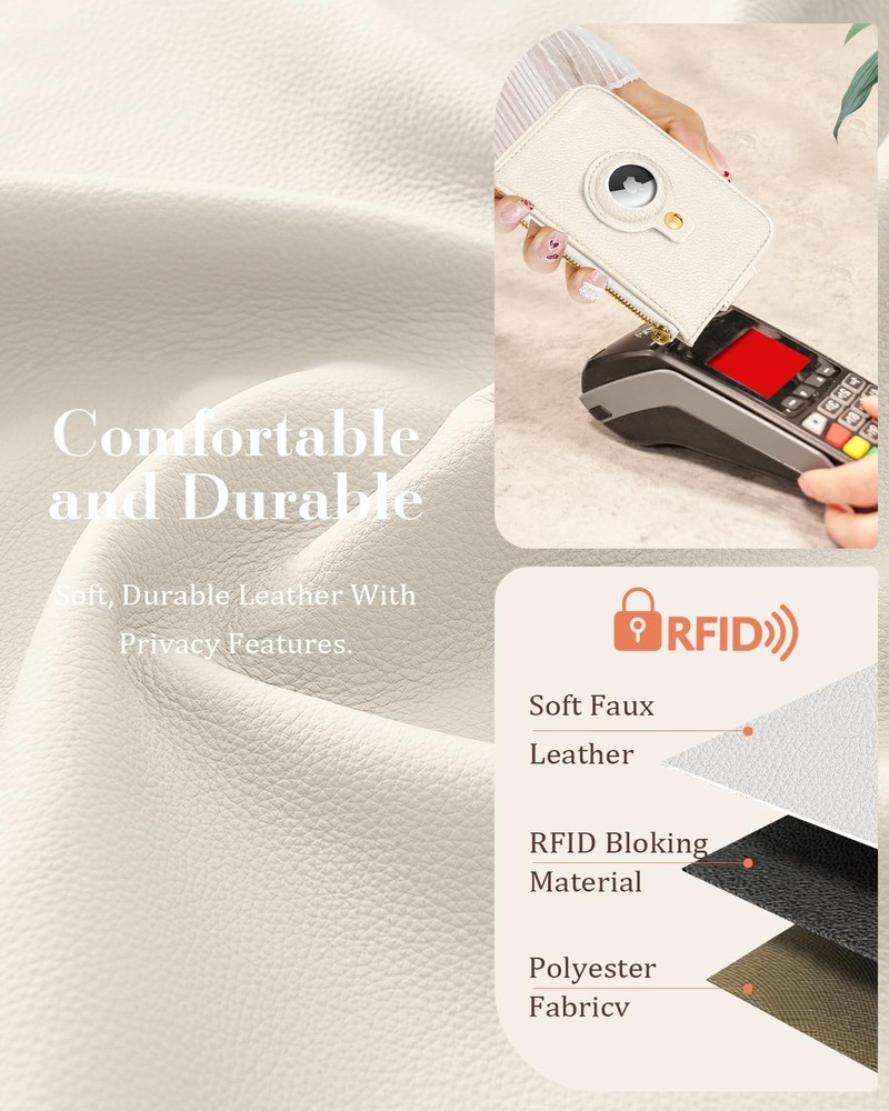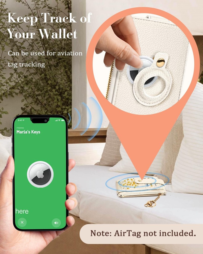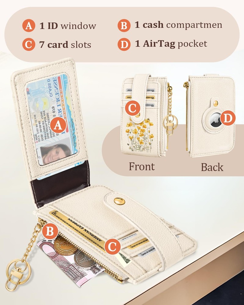 long buckle wallet with keychain and airtag storage for women cute fashion design airtag wallet for ladies female for travel daily use or for shopping Built-in Holder AirTag: This cute slim wallet has an integrated case designed for AirTag. Put your AirTag into the holder, then you can keep track of your wallet (Air Tag NOT included) Card Slots: This Airtag wallet is compact and exquisite, but has multiple card slots: 7 card slots, 1 cash compartment, 1 ID window, 1 AirTag pocket, that can storage enough cards and can also hold your driver's license Security: Our card holder wallet enhances your style and security. Its lining can protect your card from electronic scanning and has advanced RFID shielding function to ensure your information security Leather Design: The Airtag wallet for women is made of high-quality leather material, which is safe and durable, with clear and cute double-sided pattern printing Fashion: If you don't like bulky wallets, you can choose this stylish and exquisite card wallet. This wallet is lightweight and compact, easy to carry, and fully meets daily needs