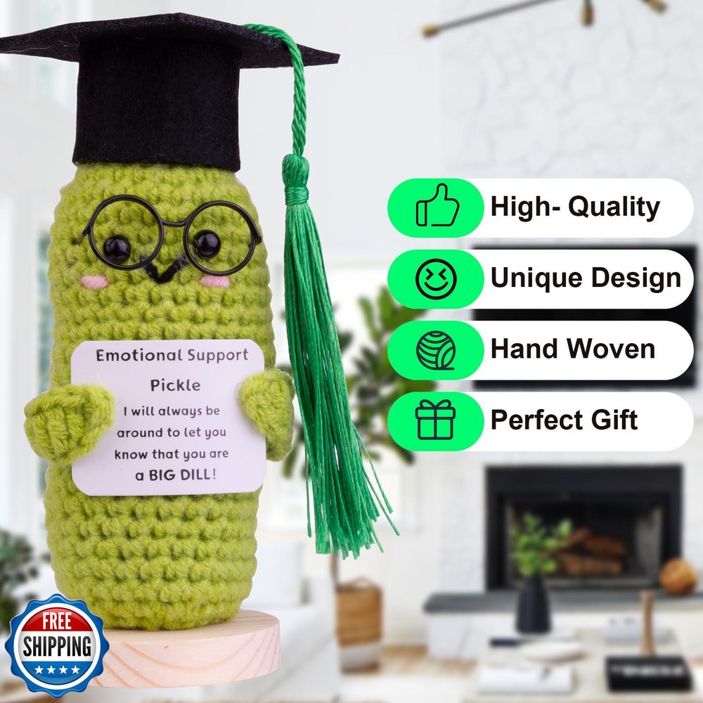 CoFuBcad Graduation Gift Emotional Support Cucumber Graduation Cap Gift, Cute Knitted Crochet Cucumber Doll with Doctoral Hat Toy with Room Decoration(A6) Features 🎓Celebrate Important Moments: For students of any age group, graduation is an unforgettable moment, celebrating this important moment with family and friends, this emotionally supportive cucumber kimchi can be a great gift, perfect for placing on your desk, bedroom, or wherever you like. It's a fun toy graduation gift that adds color to this important moment in life. 🎓Perfect Gift:Our cucumber graduation hat knit doll with emotional support and encouragement cards is an essential and perfect gift for family and friends, or for celebrating important moments of graduation. It comes with positive words of encouragement and support, bringing joy and happiness to both our loved ones and those who love us. 🎓Cute Design: You will receive a cucumber graduation cap knitted doll with a card printed with the positive word. each crochet doll is handmade by craftsmen, soft and comfortable, durable and sturdy. the beautiful knitted pattern and bright colors make it a funny graduation gift souvenir, and can also be used to decorate your home, office, and party. 🎓Funny Crochet Potato Doll : This Crochet potato doll with an encouragement card and graduation cap, as a graduation gift for him, a Middle school graduation gift, and a High school graduation gift. university graduation gift, master's degree graduation gift, at every graduation moment, emotional support pickle crochet knitted doll is a precious souvenir to celebrate this important occasion. 🎓Widely used: Emotional support kimchi can be a great gift or room decoration, not only on the desk, bookshelf, or in the room but also on the dashboard of a car, adding a cute and interesting atmosphere. Moreover, a crochet doll with a graduation hat is a delightful graduation gift for oneself, family, and friends. Shipping Free & Fast Shipping: We offer free shipping to most of the USA with a normal delivery time of 3-7 days. However, due to the current situation, additional delivery time (up to 3 weeks) may be required for some items. Alternative Carriers: We may use alternative carriers (e.g., USPS, FedEx, UPS) to ensure your package arrives safely and on time. Due to the use of multiple carriers, we are unable to provide a tracking number automatically. Handling Time: Orders are processed and shipped within 1-2 business days of receiving cleared payment. Shipping Restrictions: Shipping to Alaska, Hawaii, Puerto Rico, Guam, and other US territories may incur shipping charges or delivery restrictions. Please contact us before ordering, or your order can be refunded/cancelled. State Restrictions: Certain items may not be shipped to California due to state regulations. Contact for Tracking Updates: If you require tracking updates or have any concerns about the delivery of your order, please feel free to contact us, and we will be happy to assist you. Return Policy 30-Day Hassle-Free Returns: If you are not completely satisfied with your purchase, you can return the item for free within 30 days of receiving it for a full refund or exchange. Easy Return Process: Contact us, and we will provide you with a prepaid return shipping label and detailed instructions. No Restocking Fee: There are no restocking fees for returns. However, the buyer is responsible for return shipping costs if the return is not due to a seller"s error. Refund Processing: Refunds will be processed within 1 business day of receiving the returned item in its original condition. Feedback Your feedback is extremely important to us. We strive to provide the best products and customer service possible. If you are satisfied with your purchase, please take a moment to leave us a positive review. If you have any concerns or issues with your order, please contact us before leaving negative feedback. We are committed to resolving any problems and ensuring your satisfaction. Contact Us If you have any questions or concerns, please feel free to reach out to our customer support team. You can contact us through the eBay messaging system. We are available Monday to Friday, 9:00 am to 5:00 pm EST, and we will do our best to respond to your inquiry within 24 hours. Thank you for supporting our small family business!