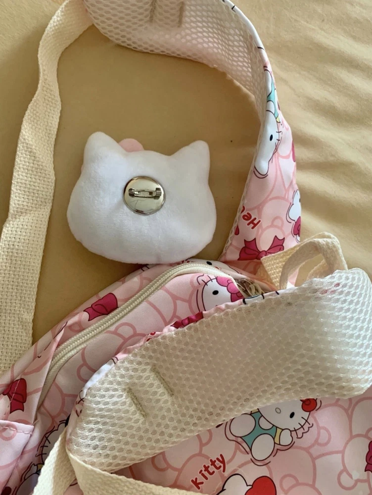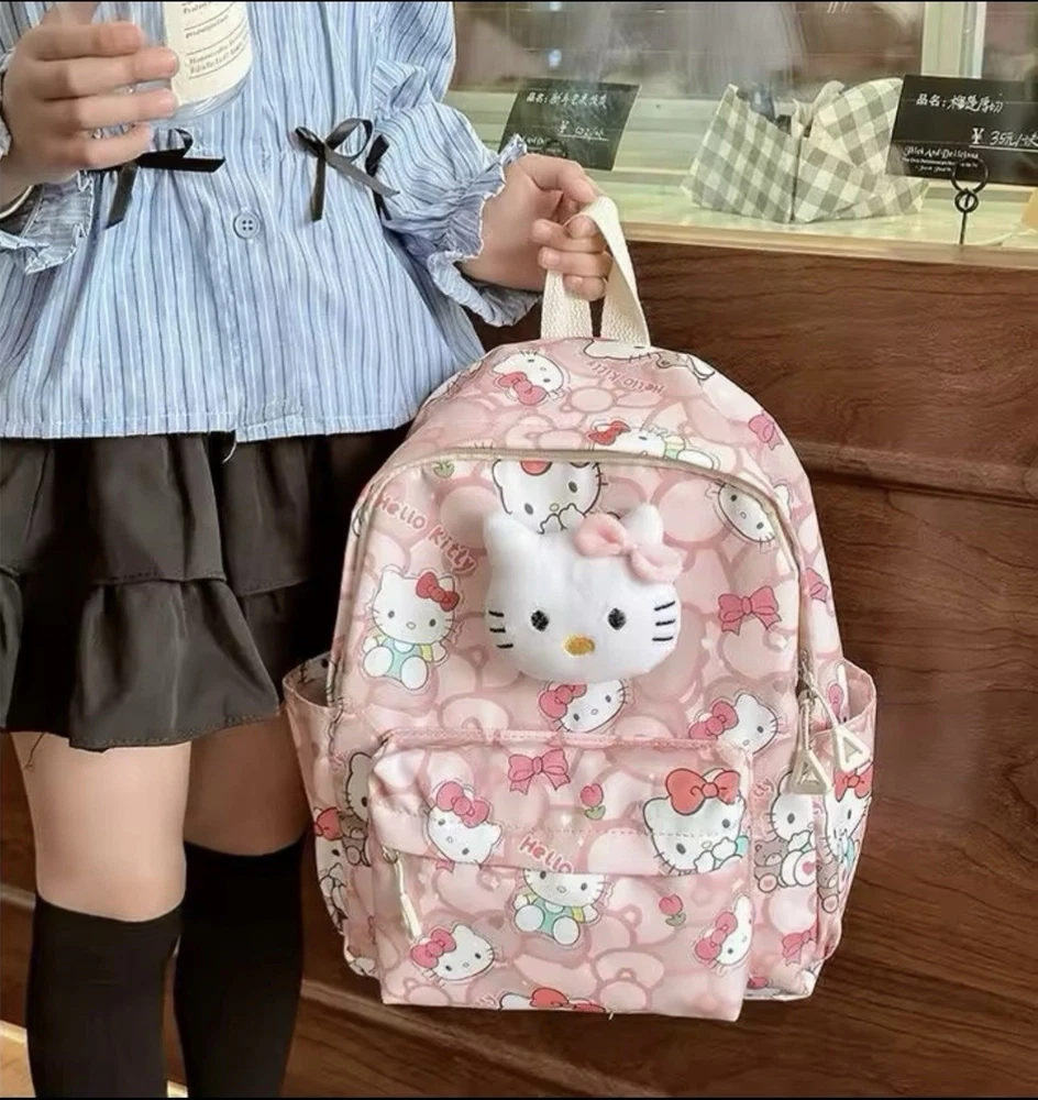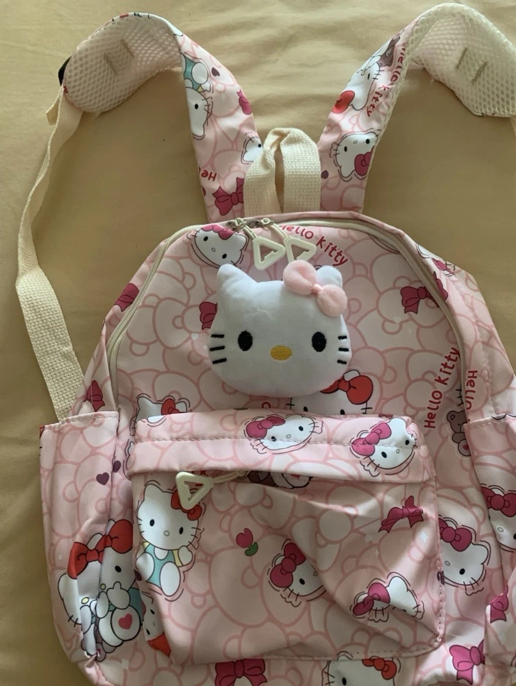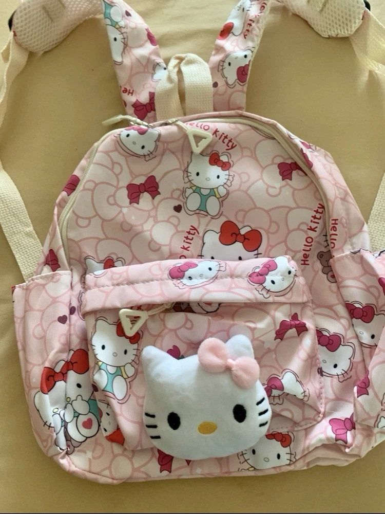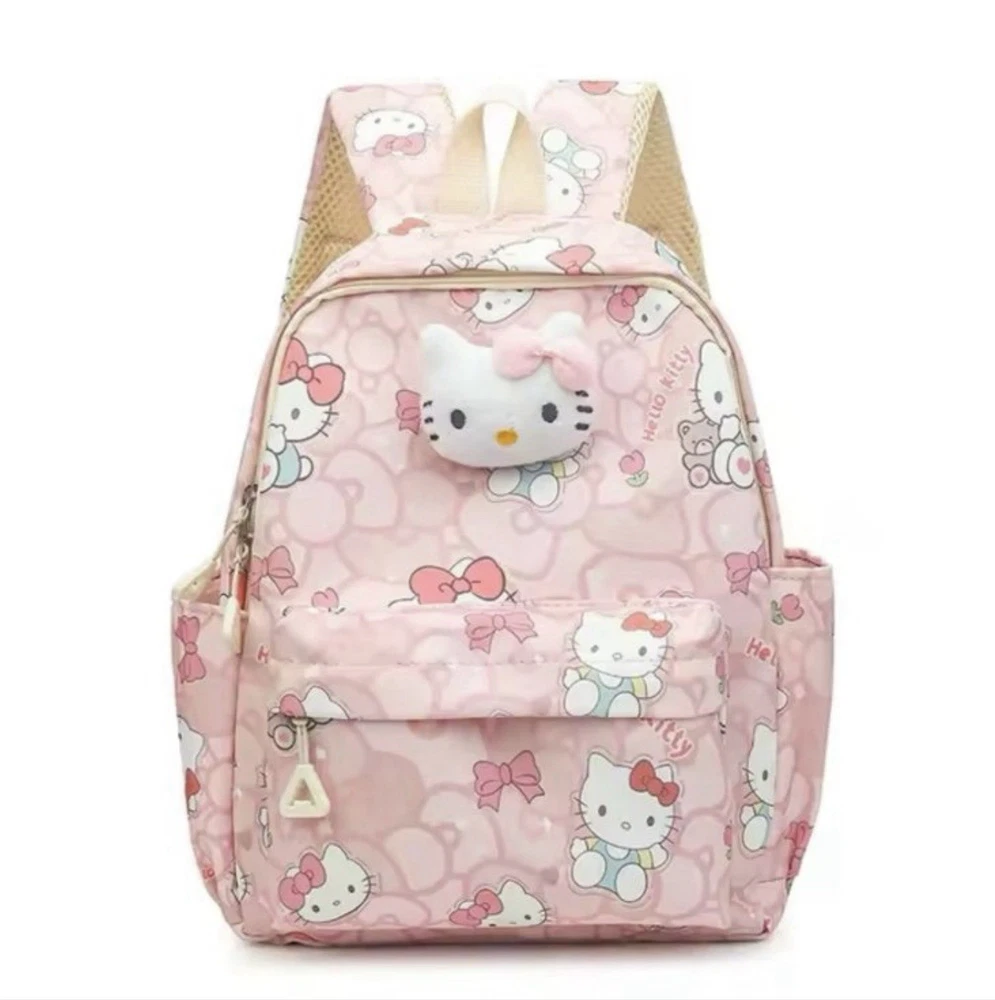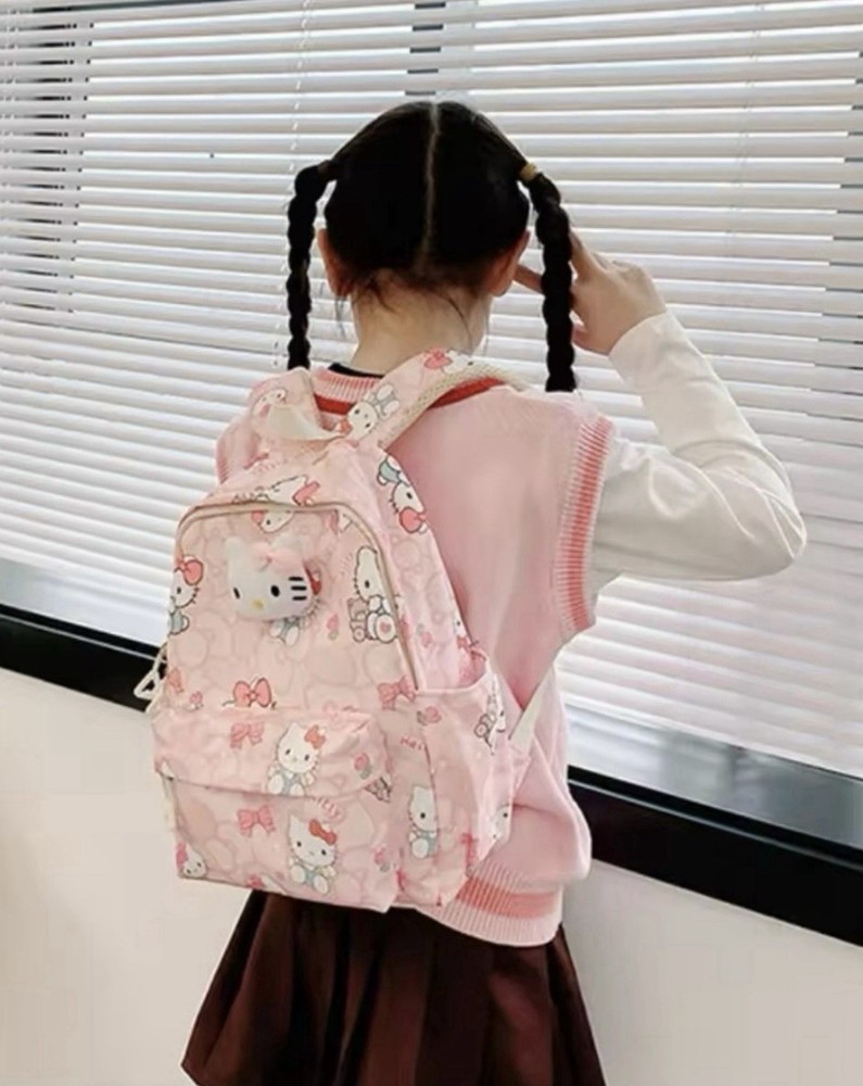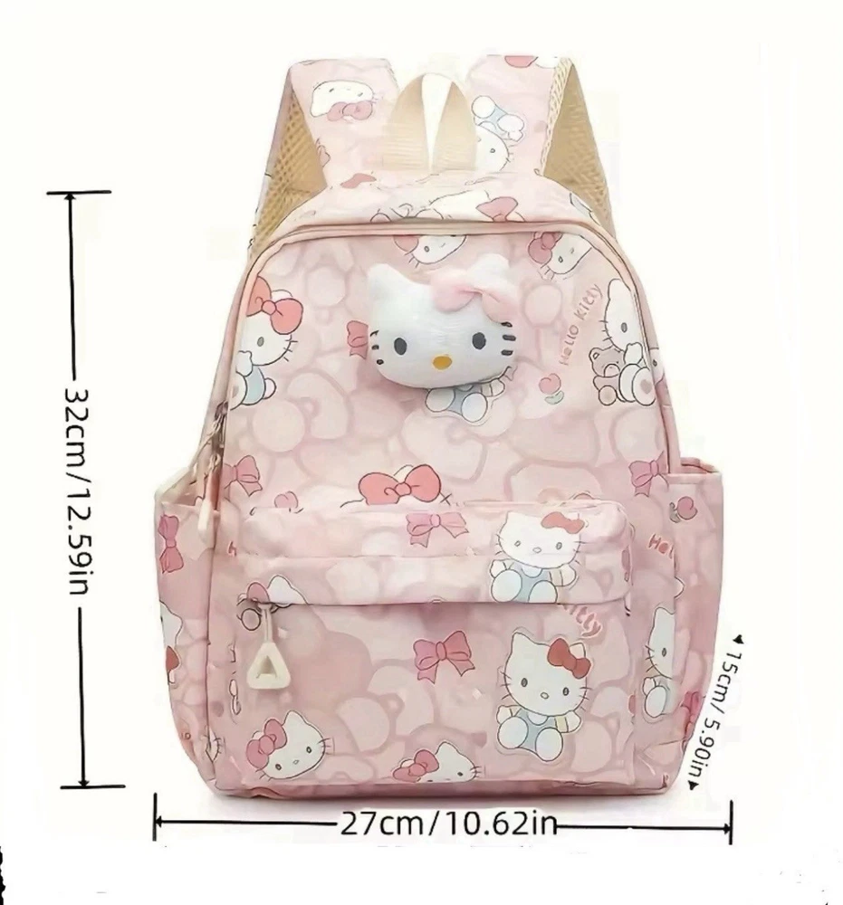 The Hello Kitty Backpack is a cute and fun accessory for school, featuring a zip closure and a shoulder strap handle style. Made from durable polyester material, this pink backpack is perfect for casual occasions and showcases a Hello Kitty character design. With accents like the strap and a theme centered around school, this unisex kids backpack from the Hello Kitty brand is a delightful addition to any young student's wardrobe. Perfect for carrying school essentials in style, this backpack is a must-have for Hello Kitty fans.