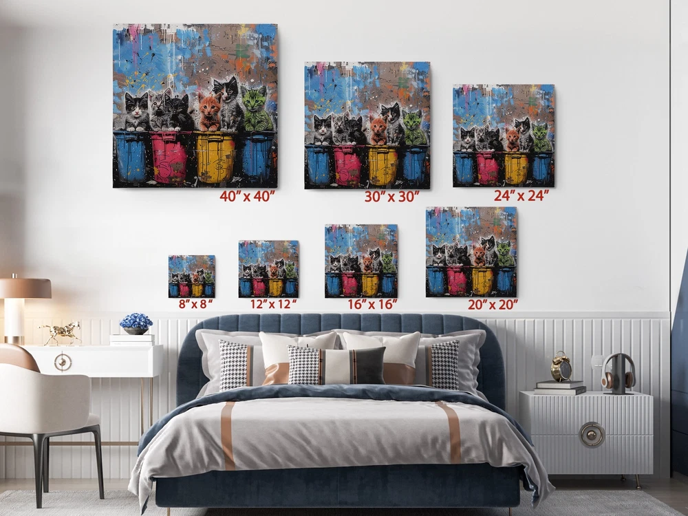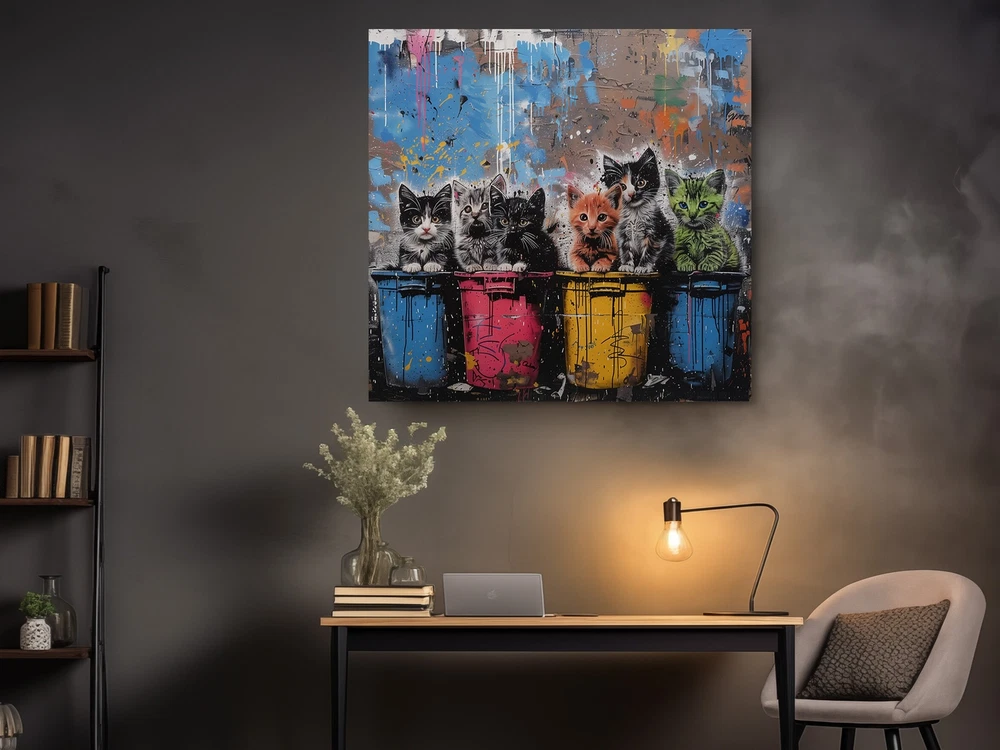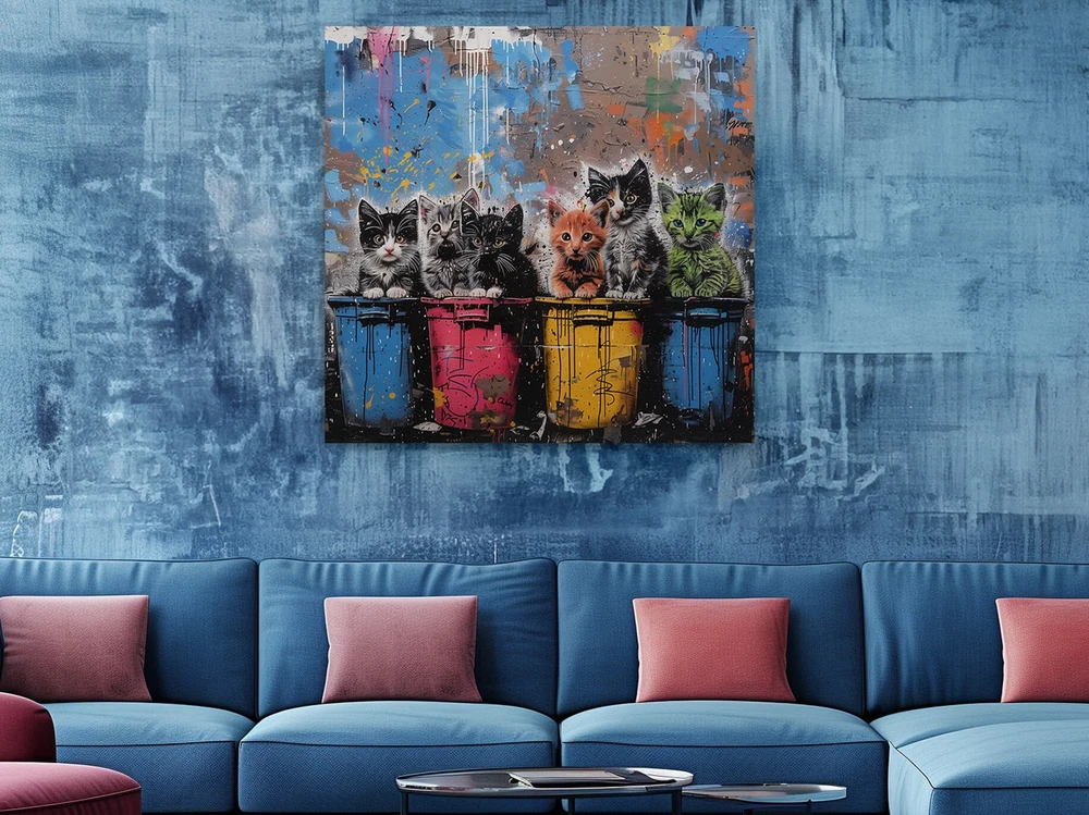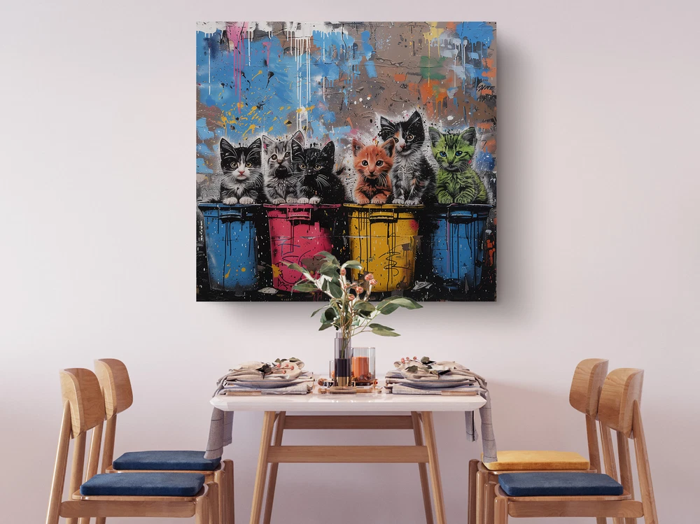 Cute Kittens Street Art Graffiti Grunge by Banksy on Canvas Print - Home Decor