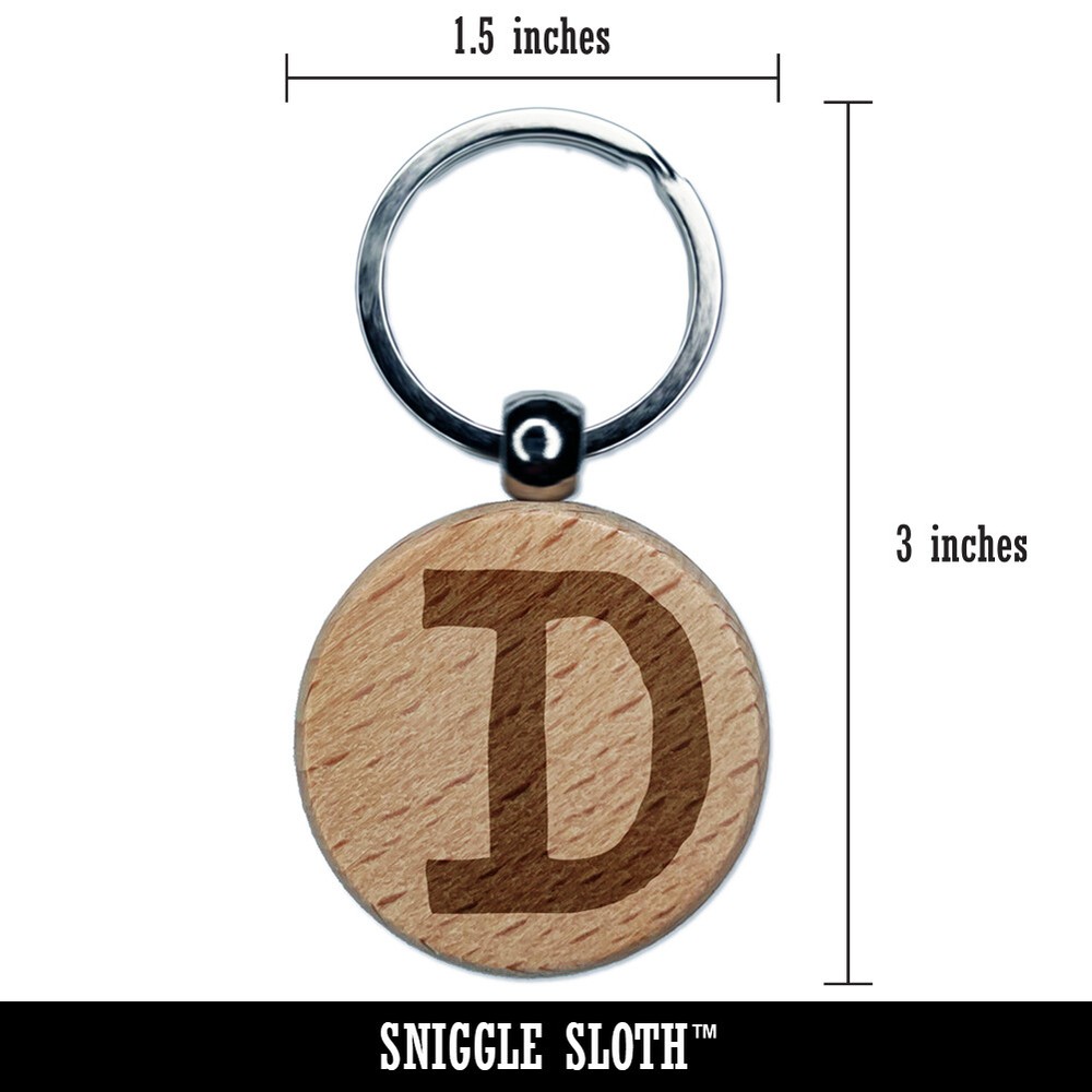 Cute Letter D Uppercase Typewriter Font Engraved Wooden Keychain Charm