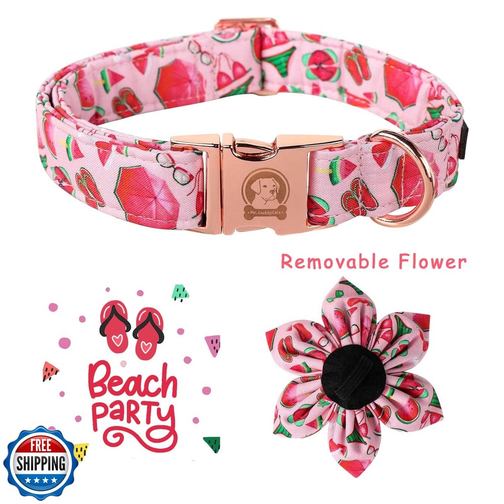 MR.CHUBBYFACE Summer Dog Collar with Flower, Cute Watermelon Pet Collar with Metal Buckle, Adjustable Durable Puppy Collar for Small Medium Large Dogs Features Material: The dog collar is made of 100% cotton, providing a light and breathable experience for your dog Design: The collar features cute double bowties with hand-sewn details and elastic straps Removable Accessory: The bowtie can be detached and fastened to any collar, making it a versatile accessory Buckle: The collar has a durable metal buckle with a safety snap-on feature for easy removal Adjustable Size: The collar is adjustable and suitable for small, medium, and large dogs with measurements in the product description Shipping Free & Fast Shipping: We offer free shipping to most of the USA with a normal delivery time of 3-7 days. However, due to the current situation, additional delivery time (up to 3 weeks) may be required for some items. Alternative Carriers: We may use alternative carriers (e.g., USPS, FedEx, UPS) to ensure your package arrives safely and on time. Due to the use of multiple carriers, we are unable to provide a tracking number automatically. Handling Time: Orders are processed and shipped within 1-2 business days of receiving cleared payment. Shipping Restrictions: Shipping to Alaska, Hawaii, Puerto Rico, Guam, and other US territories may incur shipping charges or delivery restrictions. Please contact us before ordering, or your order can be refunded/cancelled. State Restrictions: Certain items may not be shipped to California due to state regulations. Contact for Tracking Updates: If you require tracking updates or have any concerns about the delivery of your order, please feel free to contact us, and we will be happy to assist you. Return Policy 30-Day Hassle-Free Returns: If you are not completely satisfied with your purchase, you can return the item for free within 30 days of receiving it for a full refund or exchange. Easy Return Process: Contact us, and we will provide you with a prepaid return shipping label and detailed instructions. No Restocking Fee: There are no restocking fees for returns. However, the buyer is responsible for return shipping costs if the return is not due to a seller"s error. Refund Processing: Refunds will be processed within 1 business day of receiving the returned item in its original condition. Feedback Your feedback is extremely important to us. We strive to provide the best products and customer service possible. If you are satisfied with your purchase, please take a moment to leave us a positive review. If you have any concerns or issues with your order, please contact us before leaving negative feedback. We are committed to resolving any problems and ensuring your satisfaction. Contact Us If you have any questions or concerns, please feel free to reach out to our customer support team. You can contact us through the eBay messaging system. We are available Monday to Friday, 9:00 am to 5:00 pm EST, and we will do our best to respond to your inquiry within 24 hours. Thank you for supporting our small family business!