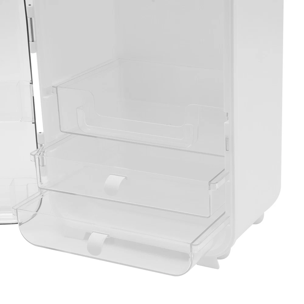 Adorable Makeup Organizer Cosmetic Storage Cabinet With Mirror & Cabinet Light Description In daily life, a clean and orderly space can make us feel relaxed and happy. When there are many disordered items, an organizer is essential. This large-capacity makeup storage box is made of PP and the bear adopts electroplating processes, so the whole item is durable and has a strong bearing capacity of 20lbs. It can help you store in order and bid farewell to the messy desktop. With it, the happiness of life will follow. Key Features Premium Material: High-quality PP makes this product strong and durable, so it can keep beautiful and practical without frequent replacement. Strong Bearing Capacity: The solid material and stable structure make this product bear about 20lbs of weight, so you can use it without worrying about collapse. Wide Space: The large size of 10*7.9*14.2 inch, three-tier design, multiple slots, and a wide and sunken top provide enough space for you to store various objects by category, thus creating a clean and tidy environment for you. Careful Design: The door with a magnet design facilitates the closing of the door and create a high sealing space to protect your items from dust and water. The LED light will not flicker and consume less energy, so it can protect your eyes, save you costs, and provide sufficient lighting in a dark environment. Beautiful Appearance: The timeless white, round lines and golden bear with electroplating technology make the whole product lovely and modern. Wherever it is placed, it will be a beautiful scenery. Enjoy Convenience Instantly: You can use the product directly without installing it, saving you time. The size of 10 * 7.9 * 14.2 inch and the weight of 5.07lbs make it easy to place and move anywhere. Effortless Cleaning: The smooth surface and removable drawers allow you to easily remove dust and residues with a towel and water. Ideal Gift: With good performance, this product can be used as a holiday or housewarming gift for family, friends, and lovers so that they can enjoy a more convenient life. High Performance-price Ratio: The combination of a makeup storage box, mirror, LED light, and USB charging cable can meet your needs at one time, so you don't need to buy them separately. Details Round Corners: Compared with traditional square corners, an arc design can better care for your skin. Anti-slip Legs: Four legs can provide additional support to better maintain the stability of the product, and also raise the bottom to avoid moisture. Elevated Edge: The elevated edges of drawers can effectively prevent items from falling and save your costs. Application This product is suitable for storing skin care products with a height of less than 7.87inch. It can be widely used in living rooms, bedrooms, bathrooms, apartments, and university dormitories to store cosmetics, lotion, skin creams, nail polish, makeup brushes, lipsticks, facial masks, combs, and other items. Specification Material: PP Color: White, Clear Surface Treatment of Bear: Electroplating Style: Modern Shape: Rectangular Number of Items: 1 Number of Tiers: 3 Assembly Required: No Mount Type: Countertop Usage: Cosmetic, Makeup Organizer Bearing Capacity: About 9.07kg/20lbs Light Source: LED Light Color: White Efficiency: E Height of Bear: 5cm/2inch Product Size: 25.5*20*36cm/10*7.9*14.2 inch Suitable Bottle Height: Within 20cm/7.87inch Package Included 1*Makeup Storage Box 1* Mirror 1* USB Charging Cable Other Accessories for Use Notes 1. Please note that our package only includes one storage box, not cosmetics. 2. Please do not put the product near the fire source to avoid damage and danger. 3. Please allow the slight color difference caused by the shooting light and 1-3cm error due to manual measurement, and make sure you do not mind before ordering. Payment Delivery details Terms of sales About us Contact us Payment We accept ebay payment 。 Fees such as import duties, taxes are not included in the item price or shipping costs. These charges are the buyer's responsibility. Delivery details Shipping: 2-9 working days to: USA Terms of sales We maintain high standards of excellence and strive for hundred percent customer satisfaction. Feedback is very important to us. We hope that you contact us immediately before you give neutral or negative feedback, so that we can address your concerns. It is impossible to address issues if we do not know about them! About us Your satis faction is our ultimate goal. We work hard to earn your trust and future business. Our certified technicians have tested each item before shipping. The unit comes with 1 year limited warranty on all manufacturing defects. a) If you receive a defective item, you may return it or ask for a discount. Please contact us within 14 days after you receive the package. b) What you returned must be intact and in its original packaging as re? u. Customer is responsible for shipping costs of the returned item. c) We will cover the cost of shipping back t with the shipping rate indicated in the registration page. We will send you a new unit or refund the full payment you paid. Thank you. Contact us Business Hour Business Hour: Monday To Friday: 8:30 AM to 5:00 PM (Beijing China time) Due to time zones, our reply to your questions may not be immediately. But within above working time, we will reply your email within 24 hours. If it's non-workdays, please kindly be patient and wait till Monday. Please contact us with ebay message. Please feel free to contact us if you have any questions. Monday To Friday: 8:30 AM to 5:00 PM (Beijing China time) Due to time zones, our reply to your questions may not be immediately. But within above working time, we will reply your email within 24 hours. If it's non-workdays, please kindly be patient and wait till Monday. Please contact us with ebay message. Please feel free to contact us if you have any questions. Note Cannot ship to Alaska, Hawaii Brand Unbranded Type Makeup Storage Box Color 