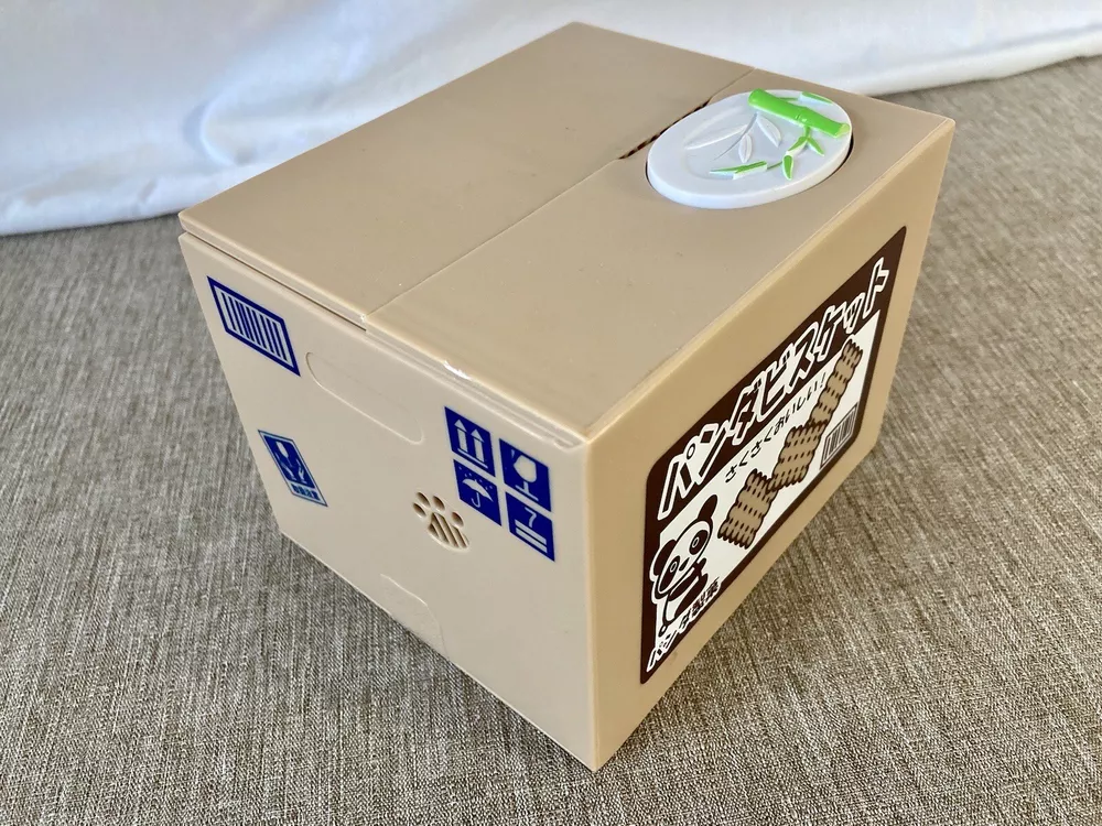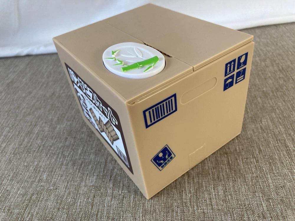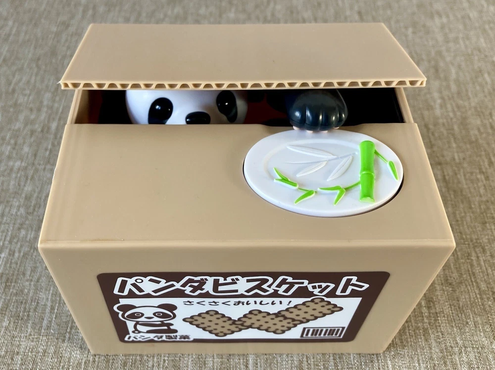 This savings box features an adorable panda and is great way for children and adults looking to make saving spare change fun. The automated “coin-stealing” function adds a bit of cuteness to the process; just place a coin on the plate and the panda pulls it into the bank. Condition: This item was purchased in Japan (see pictures for text translation), was lightly used, and is still in excellent condition. Requires two AA batteries (not included).