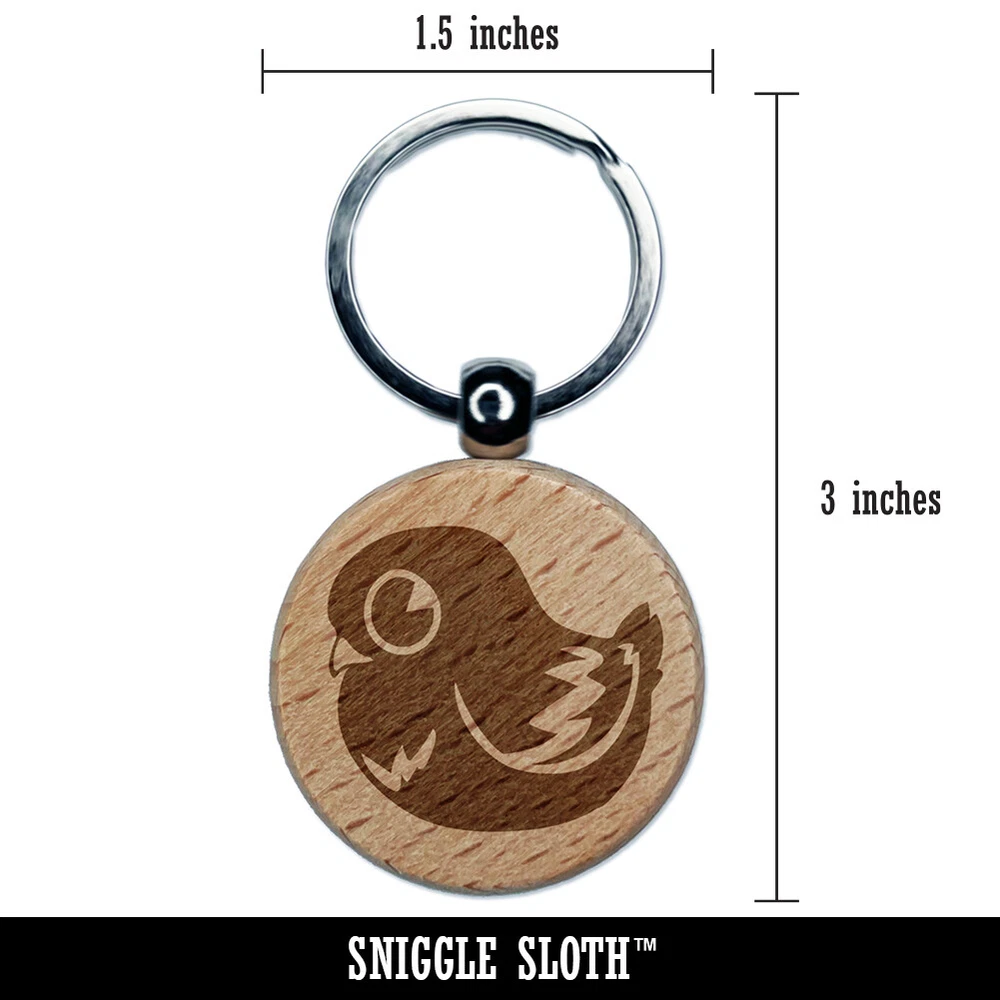Cute Pigeon Bird Engraved Wood Round Keychain Tag Charm