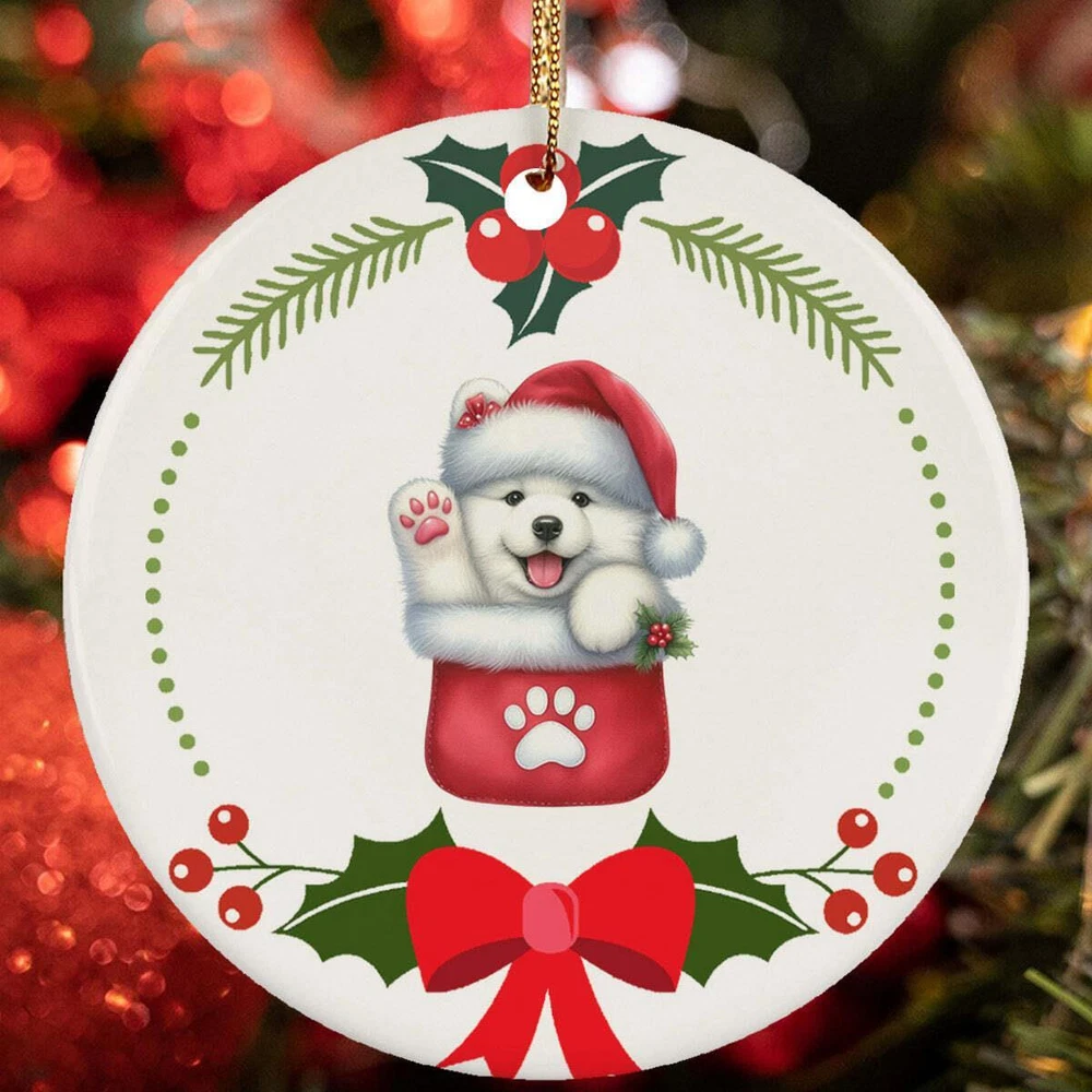 HomeCute Samoyed Puppy Dog Pocket Lover Wreath Christmas Ornament Gift Decor Hanging