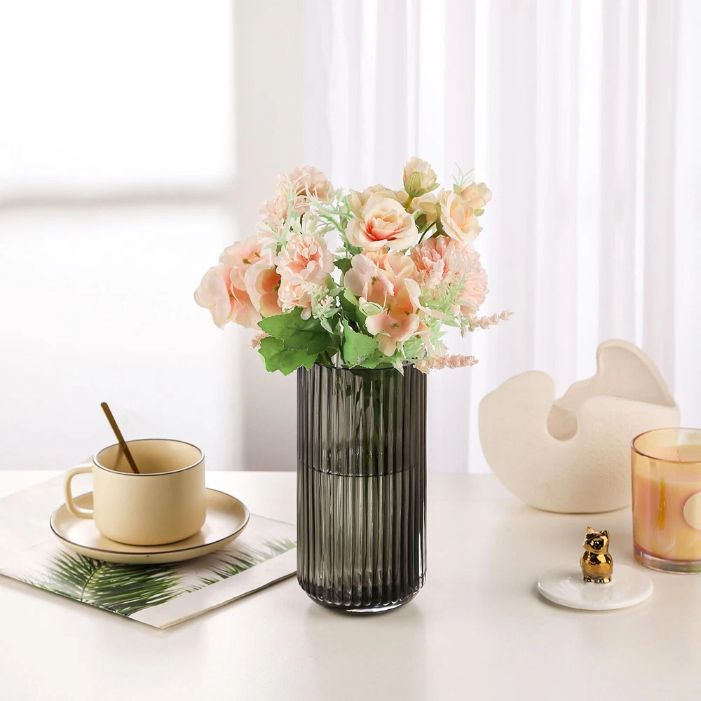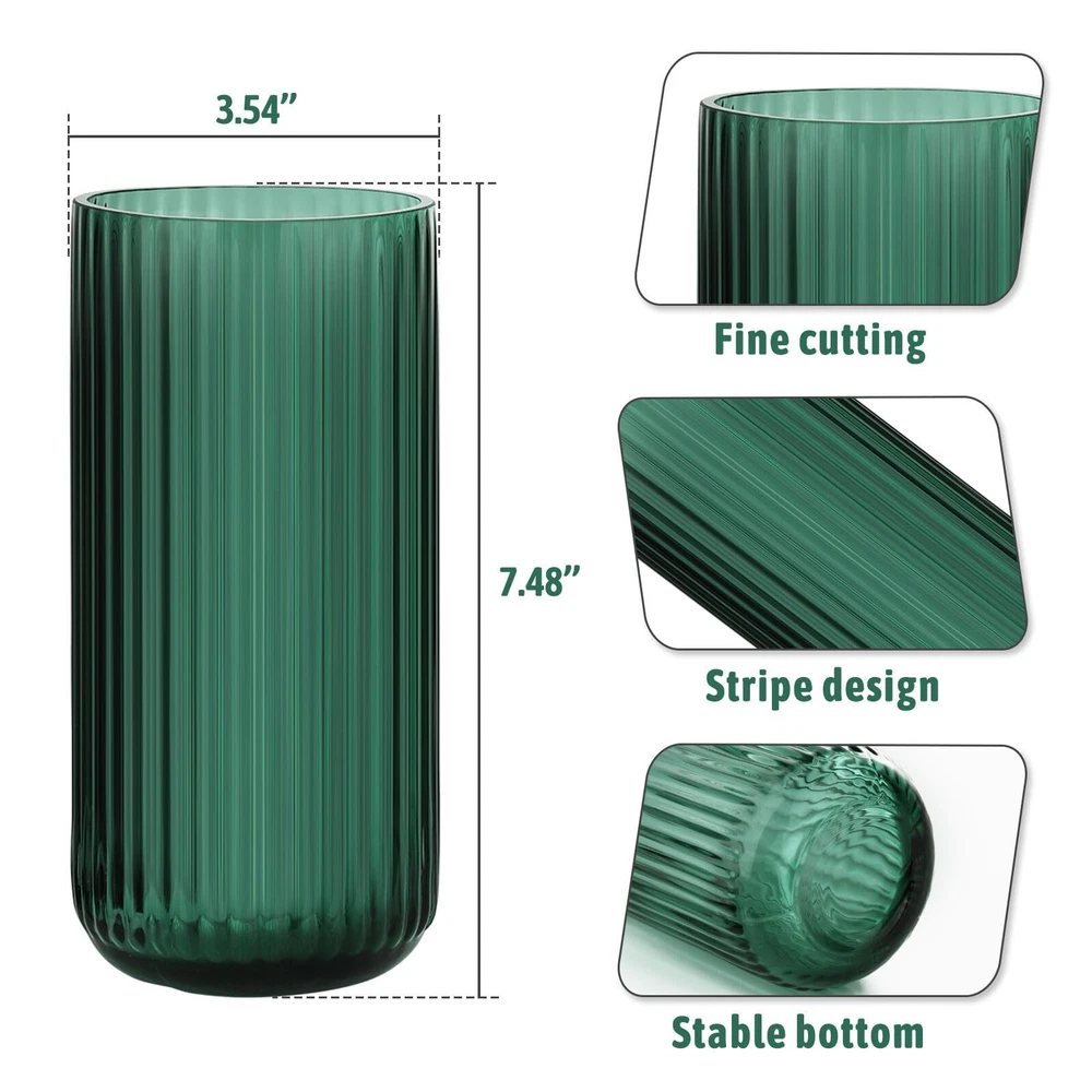 Cool blown glass vase – this unique flower vase is a great smokey vase. The unique ribbed glass design with the beautiful color makes it a great dining table centerpiece décor when holding a bouquet of flowers. The light plays beautifully on the decorative glass vase, given the illusion of curves and indents that aren't physically there. Match perfectly with vintage décor- This aesthetic designed dark green, straight lines, fluted glass vase perfect with vintage décor and most traditional home décor. Wide mouth vases for flowers – this smoked glass vase features beautiful color and size for a large floral bouquet. The dark green hides the stems under a bouquet. The wide mouth looks great with larger bouquets or even a dozen tulips - just keeps everything straighter rather than pinch together and flare. Solidly built coffee table vase – The dining table vase is sturdy and wide enough to fit a nice size bouquet of flowers. It measures about 3.74*7.5 inches (Diameter*H). Exact size detail can be read from the pic. Versatile glass for flower vase – This aesthetic flower vase is suitable for various occasions. With straight lines look, this unique purse vase makes the flowers look even better. The smoky colored glass will hide stems whether you’re using fresh flowers or dried. Perfect for wedding, party and dining table.