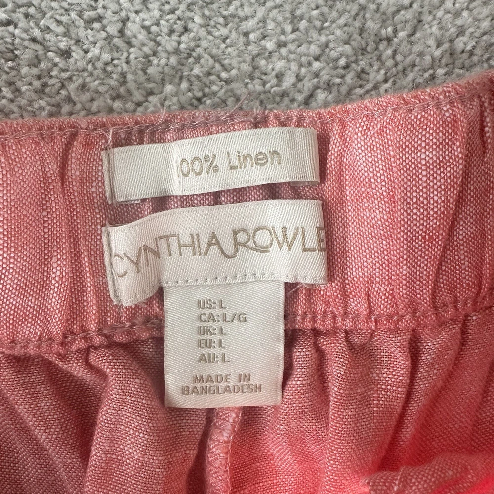 Cynthia Rowley 100% Linen Beach Pants Size L Coral Pink Coastal Vaca Wide Leg