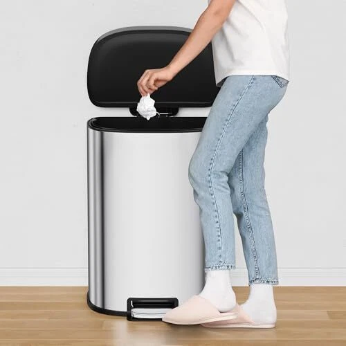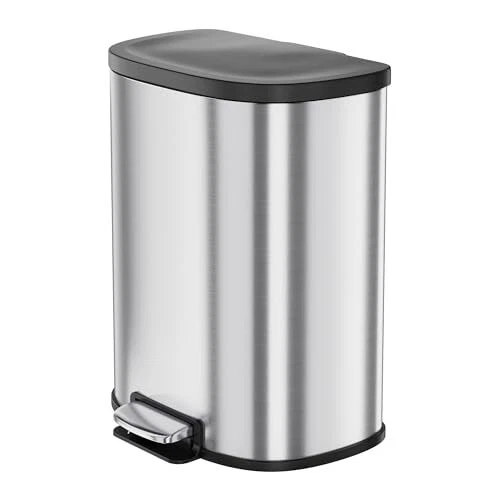 [50 Liter/13.2 Gallon Capacity] The 50L single-bin trash can is perfect for medium to large families, especially those with children or pets. Its spacious design is ideal for kitchens, gatherings, and commercial spaces, minimizing the need for frequent emptying and making waste management effortless. Upgrade your home or business with this efficient solution! [One Big Compartment] The single-compartment stainless steel trash can is its simplicity and ease of use, allowing for quick disposal without sorting confusion. Unlike two- or three-compartment designs, it provides a straightforward solution that is ideal for busy environments where convenience is key [Hand Free] This stainless steel trash can features a foot-operated lid, allowing users to open it without touching the body, reducing odor leak and keeping hand clean. The foot pedal frees up your hands, making disposing of trash more convenient, especially during busy times. [Odor Seal] The lid of the trash can effectively prevents odors from escaping, maintains a tidy appearance, and supports efficient waste sorting. [Easy to maintain] The Stainless steel trash cans are highly advantageous due to their corrosion resistance, durability, and easy cleaning. They resist rust and wear, ensuring long-lasting use, while their smooth surface allows for quick sanitation. Overall, they are a practical and stylish choice for any environment.