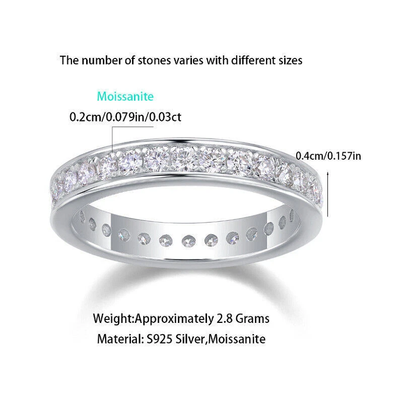 SAFE & SECURE SHOPPING 100% SATISFACTION GUARANTEED FAST SHIPPING D VVS1 Moissanite Women Girl S925 Sterling Silver Eternity Engagement Band Ring Product Description Top Class Moissanite Jewelry: Promise 100% Pass Diamond Tester Main Stone: Lab-Created Moissanite Stone Color: D Color Clarity Grade: VVS1 Cut Grade: Excellent Metal: Real 925 Sterling Silver Occasions: Anniversary/Party/Daily Superior Cut: The cut of our moissanite is a work of precision. Expertly crafted by master jewelers, the facets are precisely aligned and proportioned. Whether it's a round brilliant cut, princess cut, or any other style, the cut enhances the natural beauty of the moissanite. Passes the Diamond Test: With the same optical and physical properties as Diamonds. Comes with a certificate of GRA authenticity attesting to their superior quality.Our products are quality tested before sale, please rest assured to buy. Durable: Our jewelry is all up to excellent quality standards and our pieces will last as we quality check every piece of jewelry to make sure it shines right & wont tarnish after wear & tear. To ensure the longevity of your plated items store your jewelry in a dark, cool, dry place such as a pouch or air tight box and avoid rubbing plated items together. BEST GIFT : Comes with a delicate jewelry box, perfect gift for any gift giving occasion, great Christmas gifts, Thanksgiving gifts, graduation gift, birthday gift, congratulation gift, vacation gifts, mother day gift, anniversary gift or business gift for men, women, mother, wife, business partner. Sharing happiness is so simple. Silver Jwelry care tips: 1. We recommend removing all jewelry before stepping into shower and rings before washing hands to mainatin the shine. 2. Avoid spraying of perfumes directly. always wear your jewelry after you have put on the perfume/deodrants. 3. Store your jewelry in a cool, dry place, away from moisture in a box or pouch that comes with you piece. 4 Clean your pieces using a jewelry polishing cloth or certified liquids like Pitambari ect to remove tarnishing. Payment Shipping Returns Contact Us Feedback LIMITED LIFETIME WARRANTY Payment We accept All Type of Payment. Shipping We only send items to the registered eBay address. Items will be shipped within 3 business days from the date payment is received (not include public holiday and weekend) Most times you will receive your order within 8-13 business days after we transfer your package to the delivery company. We offer combined shipping for buying multiple item. As per eBay regulations, import duties, taxes, and customs charges are the buyer's responsibility. Returns If for any reason, your jewelry does not fit, need different size, or simply decide to send it back for a refund, you can simply fill the exchange sheet included in the package. If you need more assistance, please feel to contact us and we will be happy to assist you. All items must be in new condition for refund to be applied. If the item that you returned to us is damaged, altered, or not in original condition, it will not be accepted for refund. Contact Us We are proud to offer quality service and we glad to see you in our eBay store. The larger the order, the bigger the discount! If you have any questions about our products, please do not hesitate to contact us.Thank you for your interest in our company, we hope that you will be satisfied with the service and quality of our products. If you need cooperation, please contact us, We usually reply eBay messages no later than 24 hours except that we are off on weekends. Feedback We appreciate your positive feedback and 5-star Detailed Seller Ratings (DSR), and will do the same for you on eBay at the same time. We value every customer. Please make sure you contact us before leaving a negative or a neutral feedback, or giving us a low DSR.There are always ways to work things out to meet your satisfaction. LIMITED LIFETIME WARRANTY We offer lifetime warranty on the ring and the stones for any defects. If there is a defect, such as a stone falling off, we will inspect your item. If the damage is due to a manufacturing defect, we will be more than glad to repair it and even exchange it if necessary. Warranty does not cover normal wear and tear, lost products or abused products. You can also contact us if you want it re-polished so it looks like the day you first received it. Copyright © 2022 Tongtool Hot sale 2CT Round Cut Moissanite Wedding Engagement Ring 925 Sterling Silver Jewelry 39.57 USD Free shipping Real 925 Sterling Silver Moissanite Engagement Ring D VVS1 Certified 1CT Women 42.09 USD Free shipping 1CT Round Cut MOISSANITE Cluster Engagement Ring for Women-925 Sterling Silver 37.99 USD Free shipping 1Ct Heart VVS1 Moissanite 925 Sterling Silver Wedding Promise Ring Gift For Her 44.27 USD Free shipping 3MM Round Cut D/VVS1 Moissanite Eternity Band Wedding Ring for Women S925 Silver 58.99 USD Free shipping 1 Ct Round Cut GRA Moissanite 925 Sterling Silver Solitaire Wedding Promise Ring 26.31 USD Free shipping 2-3CT MOISSANITE Women Engagement Ring 925 Sterling Silver Fashion Jewelry 43.99 USD Free shipping Crown Halo Band Ring 14K White Gold Plated Wedding D VVS Moissanite Jewelry 35.57 USD Free shipping 3mm Round Cut VVS1 MOISSANITE Solitaire Ring 925 Sterling Silver Wedding Jewelry 47.36 USD Free shipping Moissanite Women Wedding Ring Solid 925 Sterling Silver D Color VVS1 5/6/7/8/9 38.98 USD Free shipping 925 Sterling Silver Round Cut VVS1 Solitaire Moissanite Wedding Band Ring GRA 53.99 USD Free shipping 925 Solid Sterling Silver Eternity Brilliant Engagement Wedding Band Ring 2mm 45.25 USD Free shipping 2mm Round Cut VVS1 MOISSANITE Eternity Band Ring 925 Sterling Silver Women Gift 48.99 USD Free shipping 1.8CT Round Cut Moissanite Solitaire Engagement Promise Wide Band Ring Eternity 66.99 USD Free shipping Moissanite Wedding Band Ring 925 Sterling Silver GRA Real Round Cut D/VVS1 39.99 USD Free shipping 3/5/10 CT D VVS1 Pink Moissani