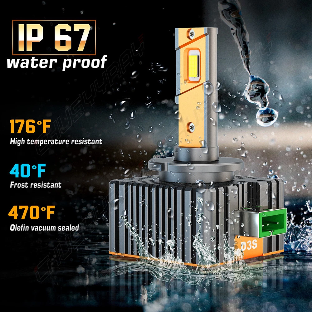 Information: a)Compatible List can not show up all Car model. Please check the Correct item size of your vechicle. it will work and fit.Thank you! b)If you are unsure the item fit or not , please do remember send message to tell us your car make, model, year and other information which is helpful to check the item fit or not. For example: 2004 Ford F 150, high/low beam 2015 RAM 1500 with projector-type, high beam 2019 Ford F 150 ,XL Crew Cab Pickup 4-Door 2.7L Specification: Low power consumption and long lifespan Waterproof and dustproof HID Simple to install With enhanced durability and shock resistance You can see more clearly when driving at night Enhance driving safety Light Color: White Power: 70W/set Type: D3S / D3R / D3C Hight luminous efficacy Flux:12000LM/Pair Waterproof: IP68. Voltage:9V to 36V.Wide-range voltage,constant urrent control,anti-interference circuit design. Apprication:Upgrade for Car,Truck,SUV,RV HID Xenon Headlight,ALL IN ONE Style, no extra driver needed . Beam Angle: 360° Long range:6000K color temperature and 200m light range. Package Includes: 2Pcs HID Xenon Light Bulbs Xenon light is a real highlight for all drivers looking for high performance and stylish design packed with special features and innovative technology. In addition to many other benefits, xenon technology achieves excellent road illumination as well as individual light design. Features:Features: ***Three Times Brightness: LED is about 32000 lumens, the halogen lamp about 1000 lumens, LED consumes approximately 35 watts, about half the halogen lamps of 65 watts. ***Five Times the Product Lifetime: LED without use tungsten wire as a medium, not only a more stable light output, but service life more 50000 hours, five times than the halogen bulb. ***Environmental Protection: Sun white light can make the driver more confortable, anti-UV quartz glass can prevent cracking the mirror and shade, spray,Mercury-free. ***Precise Focal Length: The light same as the original car can avoid glare, Lamp holder with high temperature materials can avoid vaporization and atomization caused by lighting. ***Safety: Oil-resistant, Heat-resistant and wear-resistant due to the good quality wires and materials, Waterproof can reduce the chance of rain leakage and short circuit occurs. 1.HIGH BRIGHTNESS: Lastest CSP TX3570 led chips with 6000K cool white light ;300% brighter than your stock Halogen headlights. technology to ensure a perfect beam pattern without any dark spots or foggy light. 2.POWERFUL HEAT DISSIPATION: Aluminum heat sink and 12,000 RPM Turbo Cooling fan with high efficiency colling to ensures your LED Headlight bulbs Over 50,000 hrs of brilliant continuous light. Control driver has intelligent control chip,can monitor fan speed for optimal heat protection and performance and provide wide voltage,constant current IC. 3.EASY INSTALLATION: Can be installed in 10 mins. No relay. No capacitors. No extra wiring. Plug and play. 4.IP68 WATERPROOF: Water-proof and heat-protected with integrated cooling chip and fan for heat dissipation. Rainproof driver, housing, and fan works even in extreme situations. Automatic short-circuit protection. On Feb 20, 2023 at 01:43:46 PST, seller added the following information: On Nov 22, 2024 at 19:07:18 PST, seller added the following information: