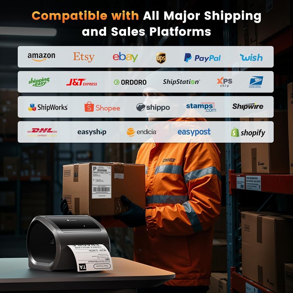 This thermal printer is a game-changer for small businesses! The built-in paper holder keeps my workspace tidy, and it prints labels fast and clear in various sizes. No more bulky external racks—just plug in, load labels, and go. Perfect for shipping, organizing, or inventory. Super reliable and compact—it fits anywhere but handles heavy use like a champ. Highly recommend for anyone needing a reliable, space-saving label solution!