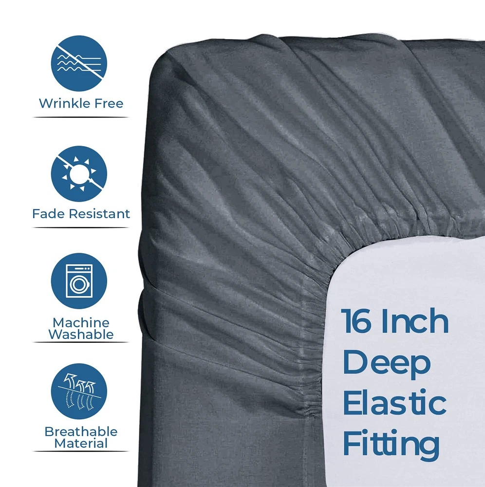 β πππππ πππ π & ππππ ππππππ πππππ πππ: This jersey knit sheets feel just like your favorite t-shirt. The cotton jersey fabric is warm, soft, flexible, and breathable for maximum sleep comfort. Each Dan River California King jersey bed sheet set comes with 145 GSM, 1 (78x84 inch) elastic fitted sheet, 1 (108x102 inch) flat sheet and 2 (20x40 inch) pillowcases. Choose from a variety of beautiful solid colors. β πππππππ ππππ-ππππππ ππππππ: Our deep pocket California King sheet set are designed to accommodate modern, thicker mattresses with a generous 16-inch deep pocket. This ensures a secure and snug fit, making them suitable for a variety of mattress sizes. No more struggling to get your sheets to stay in place. Each Dan River California King size sheets set includes 1 (78x84 inch) elastic fitted sheet, 1 (108x102 inch) flat sheet and 2 (20x40 inch) pillowcases. β πππππππ πππππ ππππππ: Elevate the aesthetics of your bedroom with a range of beautiful solid colors including: Black, Brown, Burgundy, Dark Gray, Hunter Green, Light Blue, Light Gray, Navy, Pink, & White. Whether you prefer classic neutrals or vibrant hues, our Sheet Sets available in versatile sizes: Sheet Set-King, Queen, Full, California King, Twin XL & Twin which shall be a stylish addition to your bedding collection. β π πππππ πππ ππππ ππππ: Looking for the perfect gift for any occasion? Look no further! Treat yourself or a loved one to this wonderful idea for Christmas, Thanksgiving, Anniversaries, birthdays. Still, Looking for a reason to buy? You can always gift it to yourself for that joyous-Looking home and bedrooms! Rest assured that your gift is also environmentally and socially conscious as all our products are certified by OEKO-TEX STANDARD 100 CERTIFIED. β ππππ ππππππππππππ: Our jersey Sheet Set is durable and machine washable. When washing make sure to follow these rules carefully: Set the machine to wash in warm (not hot) water on a gentle/delicate cycle with a cold-water rinse. Use a mild detergent that does not contain any bleaching agents such as chlorine or peroxide.