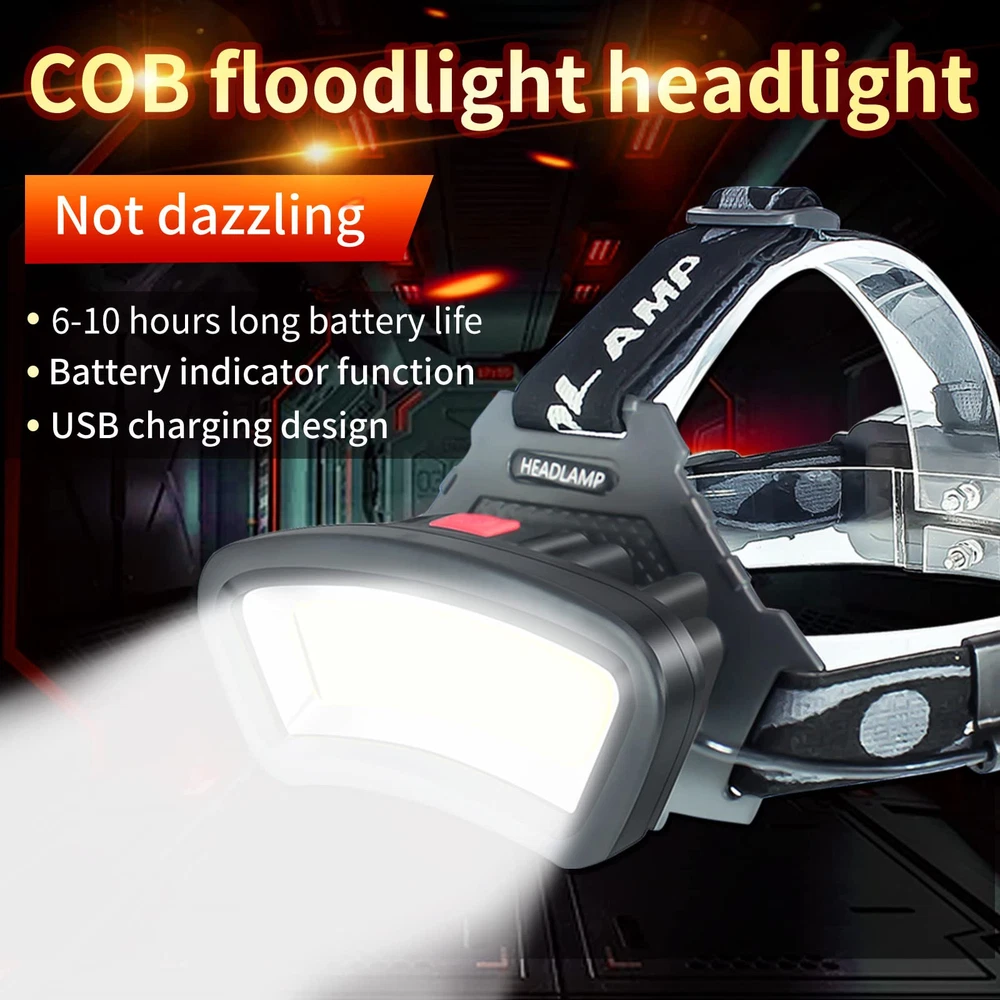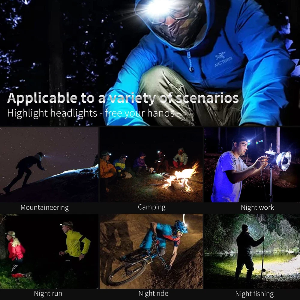 ✔HANDS FREE ,HASSLE FREE---Why waste your time and money fiddling with flashlights and buying extra batteries? With rechargeable headlamp you can have a reliable, hands-free led headlight to brighten up your environment, leaving you free to work, read, and explore whenever and wherever you want. Do not hesitate to get floodlight bright headlights newest designs. ✔SUPER BRIGHT AND SOFT LIGHT & NOT DAZZLING---The arc-shaped COB light source is used, the light is soft and uniform, and it will not harm the eyes while illuminating. Four lighting modes: strong white light-weak white light-red light-red light strobe. USB rechargeable design --- powered by 6800 mAh high-capacity rechargeable battery, which can be used for more than 6 hours under strong light, and more than 10 hours under low light. ✔WATERPROOF FOR OUTDOOR USE---Practical, Reliable. Head 90º swivel ability, rotate it to shine literally any direction you want ! Rated as IPX4 water resistant grade :on the outside, there’s a waterproof switch that’s safe to use even when it’s raining; on the inside, there’s high-quality, leakage-resistant, waterproof wiring, there to make sure your light stays on even when that rain is soaking through.Click the "ADD TO CART "Button Now! ✔FIT FOR THE WHOLE FAMILY ---With a little help from the adjustable headband, you should be able to tailor this most COST-EFFECTIVE head lamp to pretty much any friend, neighbor, or family member who joins in your outdoor (and indoor!) adventures. 【Service Commitment】--- Please contact the seller in time if you have any questions, we provides 7x24 hours satisfying after-sales service. ✔Yes, We Mean Infinite Uses: Use these head lamps to keep both your hands free when you’re working in the garage, have one ready when the power goes out, or stock up on a whole set so you can take your family hiking and spelunking in safety- you won’t be running out of uses for this creation any time soon !