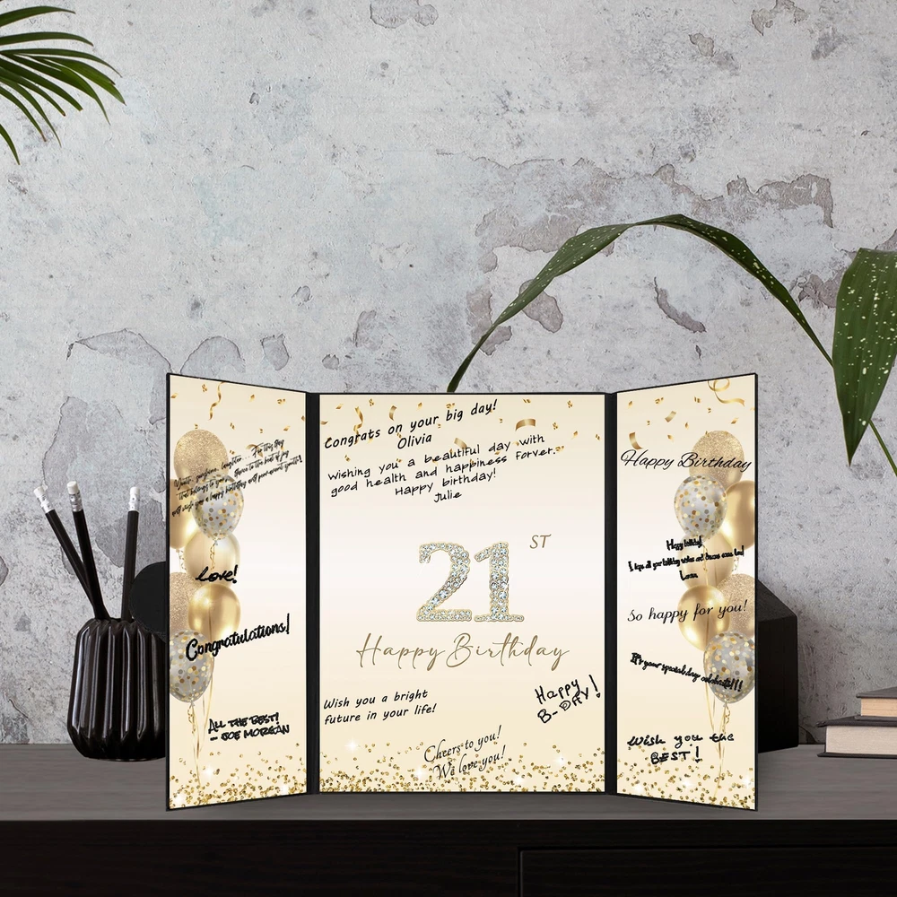 DARUNAXY Black Gold 21st Birthday Party Decorations, Happy 21st Birthday Alternative Signature Guest Book for Men Women Cheers to 21 Years Old Gifts 21 Birthday Signing Card Board Party Supplies 【Package Included】 - You will get a Happy 21st Birthday signature guest book(without pen). It doesn't need to assemble and is a practical tool to sign the names or blessings of the guests at the 21st birthday party. It is durable and suitable for long term storage for you, your friends or family beautiful memories. It will not fade for years, perfect for writing, durable, suitable for long term storage. You can look back over time at your amazing creation. 【21st Birthday Gift】 - 21st Birthday is a significant milestone and worth taking the time to celebrate! It is an excellent way for your guests, friends, family, and coworkers to create a sincere and timeless souvenir instead of the often impersonal and forgotten ordinary gifts. Our happy 21st birthday certificate guest book can be beautifully displayed and appreciated for years to come because of the durable finish. 【Perfect Size】 - The cover of Happy 21st Birthday signature sign is approx. 45.6 x 30.6 cm/ 18 x 12inches; the left and right inner page is approx. 10.5 x 30cm/ 4.1 x 11.8inches; the middle inner page: approx. 21.5 x 30 cm/ 8.5 x 11.8inches. It is a fun party decoration idea for the 21st Birthday. You can make your keepsake unique and keep them endlessly. 【Unique Design】 - The framed cover of the 21 birthday certificate gift is professionally designed with pearlescent frosted paper, with a gilded round badge. There are three parts of the inner page for signature. The internal middle page contains the words "Happy 21st Birthday". Easy to write on and won't smear or easily tear. You can sign the best blessing and wishes for your friends, family, or colleagues as a perfect gift. 【Wide Application】 - Decorating your home and party with our gold 21st Birthday Certificate poster card will be a big hit at your 21st birthday party. This cheers to 21 year old party decoration is easy to match with other party supplies, creating a warm vibe for your party. Perfect as a decoration for birthday parties for you, your family, friends, or coworker. The framed black gold 21st birthday guest book can be displayed anywhere at home or office as cherished reminders of the special day. 【Package Included】 - You will get a Happy 21st Birthday signature guest book(without pen). It doesn't need to assemble and is a practical tool to sign the names or blessings of the guests at the 21st birthday party. It is durable and suitable for long term storage for you, your friends or family beautiful memories. It will not fade for years, perfect for writing, durable, suitable for long term storage. You can look back over time at your amazing creation. 【21st Birthday Gift】 - 21st Birthday is a significant milestone and worth taking the time to celebrate! It is an excellent way for your guests, friends, family, and coworkers to create a sincere and timeless souvenir instead of the often impersonal and forgotten ordinary gifts. Our happy 21st birthday certificate guest book can be beautifully displayed and appreciated for years to come because of the durable finish. 【Perfect Size】 - The cover of Happy 21st Birthday signature sign is approx. 45.6 x 30.6 cm/ 18 x 12inches; the left and right inner page is approx. 10.5 x 30cm/ 4.1 x 11.8inches; the middle inner page: approx. 21.5 x 30 cm/ 8.5 x 11.8inches. It is a fun party decoration idea for the 21st Birthday. You can make your keepsake unique and keep them endlessly. 【Unique Design】 - The framed cover of the 21 birthday certificate gift is professionally designed with pearlescent frosted paper, with a gilded round badge. There are three parts of the inner page for signature. The internal middle page contains the words "Happy 21st Birthday". Easy to write on and won't smear or easily tear. You can sign the best blessing and wishes for your friends, family, or colleagues as a perfect gift. 【Wide Application】 - Decorating your home and party with our gold 21st Birthday Certificate poster card will be a big hit at your 21st birthday party. This cheers to 21 year old party decoration is easy to match with other party supplies, creating a warm vibe for your party. Perfect as a decoration for birthday parties for you, your family, friends, or coworker. The framed black gold 21st birthday guest book can be displayed anywhere at home or office as cherished reminders of the special day. Shipping from the USA All of our products are shipped from the USA, ensuring quick delivery to your destination. Payment We offer the following payment methods: PayPal, credit card, bank transfer, and eBay's secure payment system. Free Shipping & Free Returns Shipping within the USA is FREE. Additionally, any return is absolutely free for you. Risk-Free Purchase You have the option to return an item within 30 days without any justification. We cover the return shipping costs! Fast Shipping We ship immediately upon receipt of payment. Generally, the package is delivered within 2-3 days in the USA. If it takes longer, we will contact you. Quality and Costs Made in Europe, USA, China No customs fees or additional charges Total satisfaction guarantee Invoice with declared VAT available upon request in .pdf format Feedback Your feedback is very important to us. After you pay for your purchase, you will automatically receive positive feedback from us.