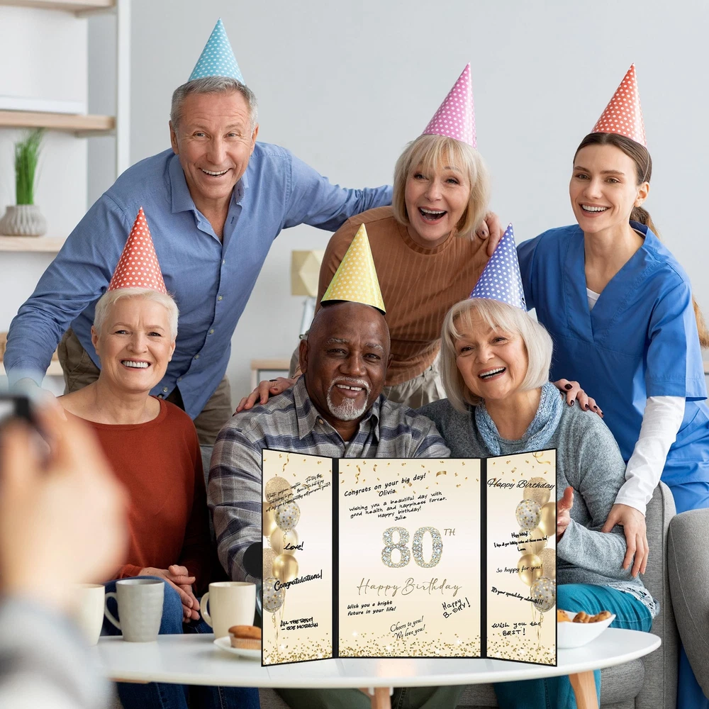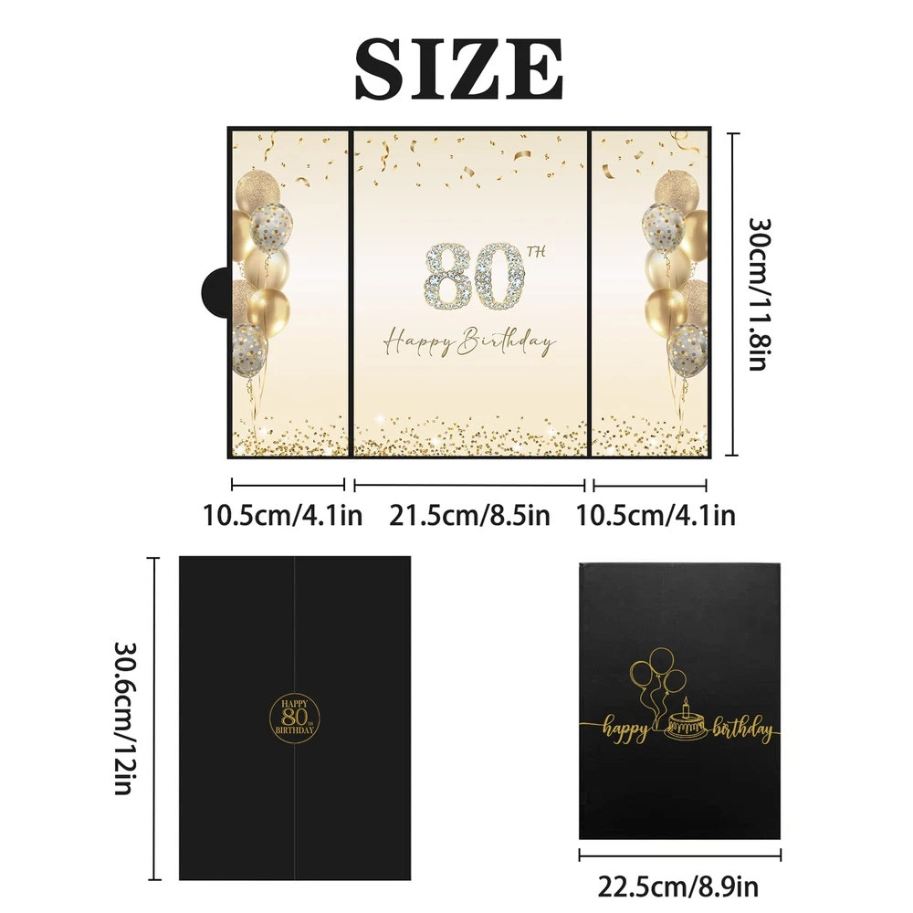 DARUNAXY Black Gold 80th Birthday Party Decorations, Happy 80th Birthday Alternative Signature Guest Book for Men Women Cheers to 80 Years Old Gifts 80 Birthday Signing Card Board Party Supplies 【Package Included】 - You will get a Happy 80th Birthday signature guest book(without pen). It doesn't need to assemble and is a practical tool to sign the names or blessings of the guests at the 80th birthday party. It is durable and suitable for long term storage for you, your friends or family beautiful memories. It will not fade for years, perfect for writing, durable, suitable for long term storage. You can look back over time at your amazing creation. 【80th Birthday Gift】 - 80th Birthday is a significant milestone and worth taking the time to celebrate! It is an excellent way for your guests, friends, family, and coworkers to create a sincere and timeless souvenir instead of the often impersonal and forgotten ordinary gifts. Our happy 80th birthday certificate guest book can be beautifully displayed and appreciated for years to come because of the durable finish. 【Perfect Size】 - The cover of Happy 80th Birthday signature sign is approx. 45.6 x 30.6 cm/ 18 x 12inches; the left and right inner page is approx. 10.5 x 30cm/ 4.1 x 11.8inches; the middle inner page: approx. 21.5 x 30 cm/ 8.5 x 11.8inches. It is a fun party decoration idea for the 80th Birthday. You can make your keepsake unique and keep them endlessly. 【Unique Design】 - The framed cover of the 80 birthday certificate gift is professionally designed with pearlescent frosted paper, with a gilded round badge. There are three parts of the inner page for signature. The internal middle page contains the words "Happy 80th Birthday". Easy to write on and won't smear or easily tear. You can sign the best blessing and wishes for your friends, family, or colleagues as a perfect gift. 【Wide Application】 - Decorating your home and party with our gold 80th Birthday Certificate poster card will be a big hit at your 80th birthday party. This cheers to 80 year old party decoration is easy to match with other party supplies, creating a warm vibe for your party. Perfect as a decoration for birthday parties for you, your family, friends, or coworker. The framed black gold 80th birthday guest book can be displayed anywhere in the home or office as cherished reminders of the special day. 【Package Included】 - You will get a Happy 80th Birthday signature guest book(without pen). It doesn't need to assemble and is a practical tool to sign the names or blessings of the guests at the 80th birthday party. It is durable and suitable for long term storage for you, your friends or family beautiful memories. It will not fade for years, perfect for writing, durable, suitable for long term storage. You can look back over time at your amazing creation. 【80th Birthday Gift】 - 80th Birthday is a significant milestone and worth taking the time to celebrate! It is an excellent way for your guests, friends, family, and coworkers to create a sincere and timeless souvenir instead of the often impersonal and forgotten ordinary gifts. Our happy 80th birthday certificate guest book can be beautifully displayed and appreciated for years to come because of the durable finish. 【Perfect Size】 - The cover of Happy 80th Birthday signature sign is approx. 45.6 x 30.6 cm/ 18 x 12inches; the left and right inner page is approx. 10.5 x 30cm/ 4.1 x 11.8inches; the middle inner page: approx. 21.5 x 30 cm/ 8.5 x 11.8inches. It is a fun party decoration idea for the 80th Birthday. You can make your keepsake unique and keep them endlessly. 【Unique Design】 - The framed cover of the 80 birthday certificate gift is professionally designed with pearlescent frosted paper, with a gilded round badge. There are three parts of the inner page for signature. The internal middle page contains the words "Happy 80th Birthday". Easy to write on and won't smear or easily tear. You can sign the best blessing and wishes for your friends, family, or colleagues as a perfect gift. 【Wide Application】 - Decorating your home and party with our gold 80th Birthday Certificate poster card will be a big hit at your 80th birthday party. This cheers to 80 year old party decoration is easy to match with other party supplies, creating a warm vibe for your party. Perfect as a decoration for birthday parties for you, your family, friends, or coworker. The framed black gold 80th birthday guest book can be displayed anywhere in the home or office as cherished reminders of the special day. Shipping from the USA All of our products are shipped from the USA, ensuring quick delivery to your destination. Payment We offer the following payment methods: PayPal, credit card, bank transfer, and eBay's secure payment system. Free Shipping & Free Returns Shipping within the USA is FREE. Additionally, any return is absolutely free for you. Risk-Free Purchase You have the option to return an item within 30 days without any justification. We cover the return shipping costs! Fast Shipping We ship immediately upon receipt of payment. Generally, the package is delivered within 2-3 days in the USA. If it takes longer, we will contact you. Quality and Costs Made in Europe, USA, China No customs fees or additional charges Total satisfaction guarantee Invoice with declared VAT available upon request in .pdf format Feedback Your feedback is very important to us. After you pay for your purchase, you will automatically receive positive feedback from us.