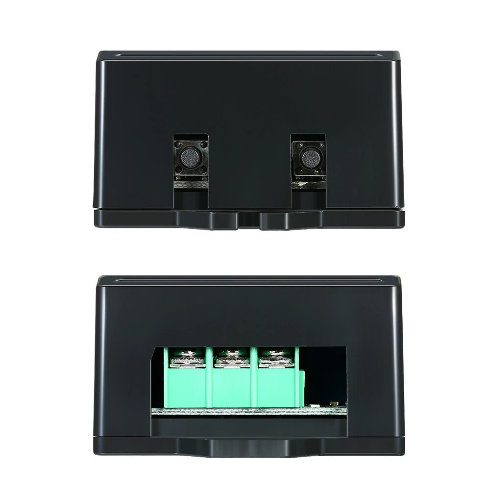 Features: Digital display DC voltage detection, control the relay output. DC 6~80V relay interface board with 2 buttons for easy operation. With clear LED display, convenient to check the value. Adjustable Voltage Detection Range: DC 0~99.9V. When the measured voltage is lower than the lower limit or higher than upper limit value, the relay works. Can be used for voltage detection switch, battery over/under voltage protector or discharge meter. Comes with a cover for conservation. Specifications: Material: PCB + ABS Working Voltage: DC 6~80V Voltage Detection Range: DC 0~99.9V Error: +/-0.1V Working Current: 8mA/24V(relay open, LED displays OFF about 4mA/24V); 58mA/24V(relay closed) A set of transformations(normally open/normally close, NO/NC) Contact Load: NO: 30A/250V AC or 30A/30V DC; NC :20A/250V AC or 20A/30V DC Attention: Because high voltage DC electric arc damages relay contact, so the electric load above DC60V load current is less than 10A. Contact Resistance: ≤100mΩ(1A 6VDC) Mechanical Durability: 10 millions Electricity durability: >100,000 (20A~250VAC) Operating Temperature: -40~85°C Item Size: 9.4 * 5.2 * 3cm / 3.7 * 2.05 * 1.18in Package Size: 9.5 * 6 * 3cm / 3.74 * 2.36 * 1.18in Package Weight: 85g / 3oz Package List: 1 * Relay Switch Controller