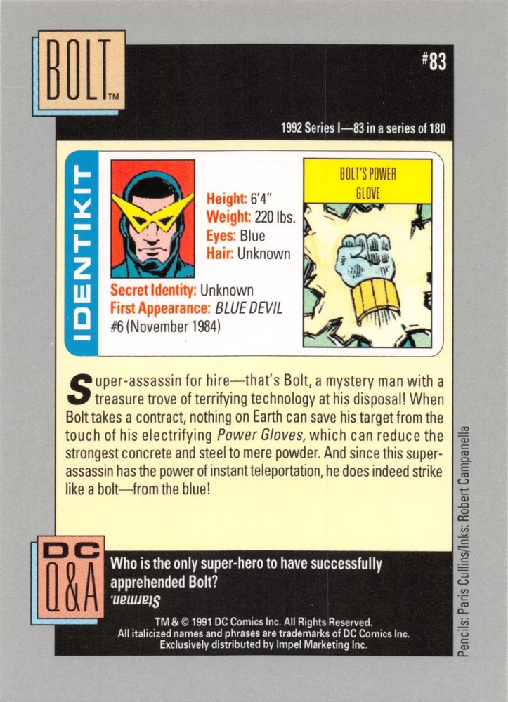 This listing is for your choice of any available 1991 Cardz "Cosmic Cards" base card from the drop-down menu above. Photos show front and backside of each card, be sure to scroll sideways to view front and backside photos! Check out my other listings for more single parallels from this same set. Any questions? Please ask before buying. International "USPS First Class Mail" will not include a tracking number for this item, if you would like a tracking number please choose the "eBay International Standard Shipping" option when you check out. As with all of my "pick-a-card" listings, I will be shipping with "eBay Standard Envelope". The rules of this envelope state that it cannot be too thick, so please expect your order to be packaged as follows: 1 to 6 cards will be slid into a single sleeve, the sleeve will then be slid inside of a semi-rigid Card-Saver. 6 to 12 cards will be slid into a double sleeve, 13 to 18 cards into a triple sleeve, 19 to 24 cards into a quadruple sleeve(up to six cards per sleeve). The double, triple and quadruple sleeve shipping will not have the Card-Saver. If you buy more than 1 card and want it packaged with more than 1 Card-Saver(or 1 sleeve per card), I kindly ask that you contact me before purchasing to be sure that this is possible to have it done with the stated shipping charge, or if additional shipping would be required. If you do not contact me, then you can expect to receive your order packaged as I have explained here. Please do not expect rigid top-loaders to be included, I don't normally keep a lot of them in stock, but if you message me prior to ordering I will be able to see if I have any that can be included with your order - additional shipping may be required. In order to get free combined shipping from this and any of my other "pick-a-card" listings, you must add all of your cards to the cart and check out when you are done shopping. If you do not use the cart you will be overpaying on shipping and I cannot refund you on over-payed shipping. So please use the cart and get your FREE COMBINED SHIPPING!