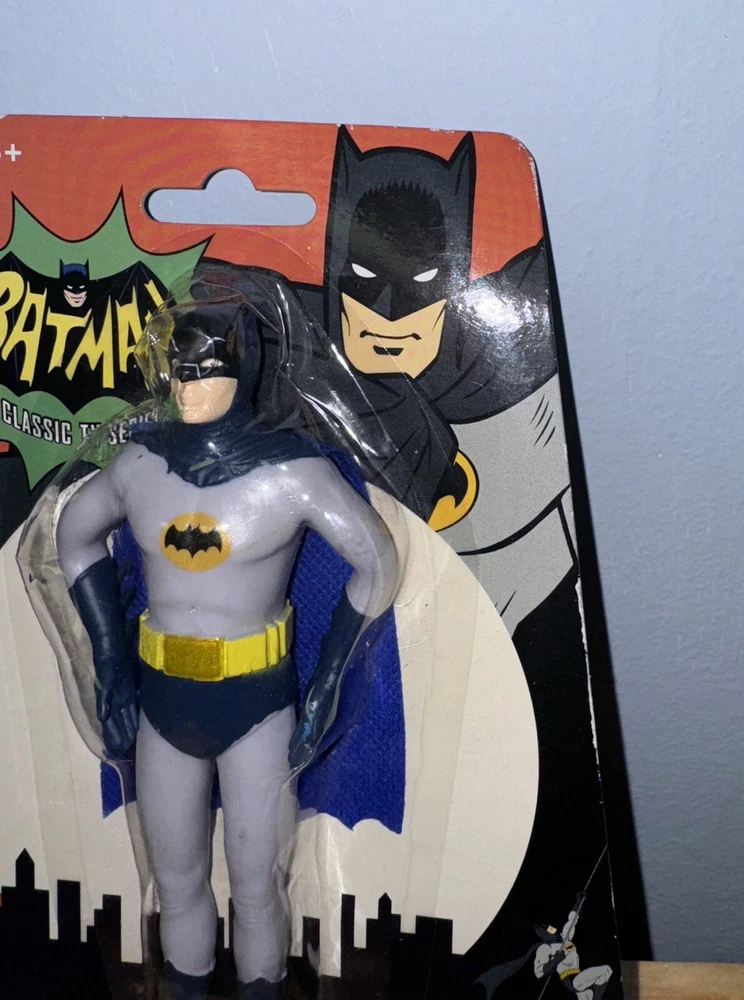 Introducing the DC Comics Batman Classic TV Series Batman Bendable Figure by Adam West. This highly collectible figure is made of ABS Plastic and is perfect for fans of all ages. The character is from the Batman TV series and is part of the Pop! product line. Featuring a bendable design, this figure is perfect for display in any collection. The vintage-inspired design is great for fans of classic comics and TV shows. The figure is made in the United States and is suitable for ages 3 and up. Add this unique piece to your collection today!