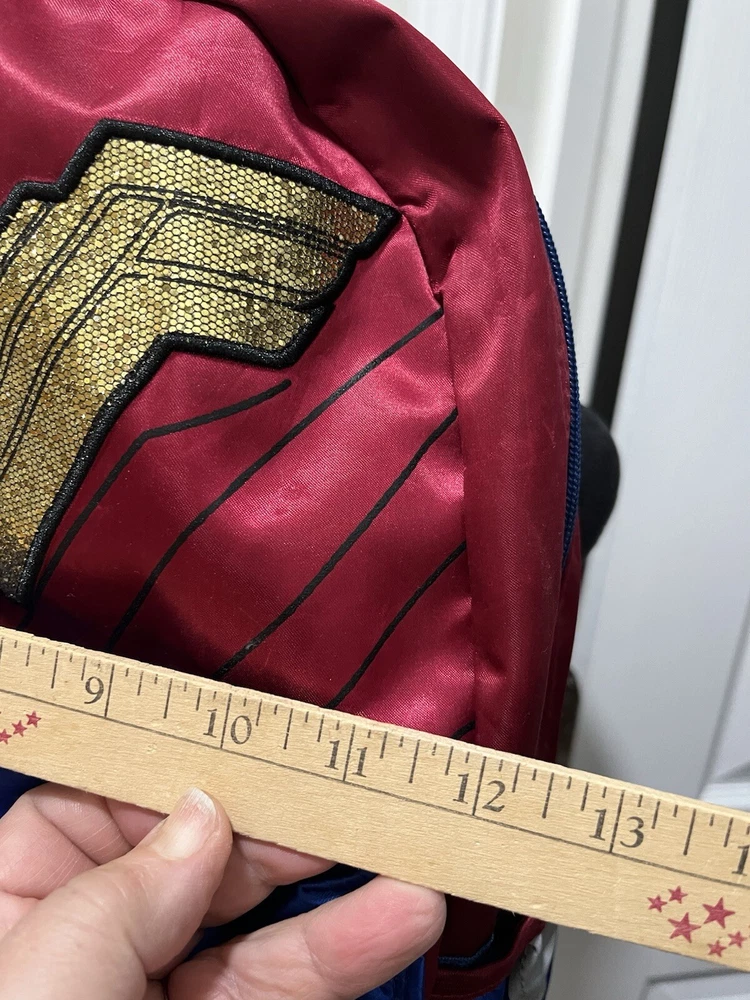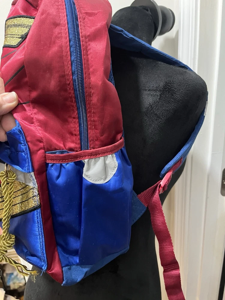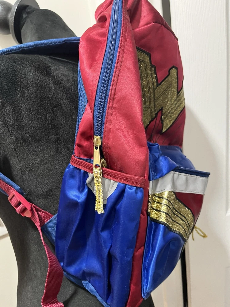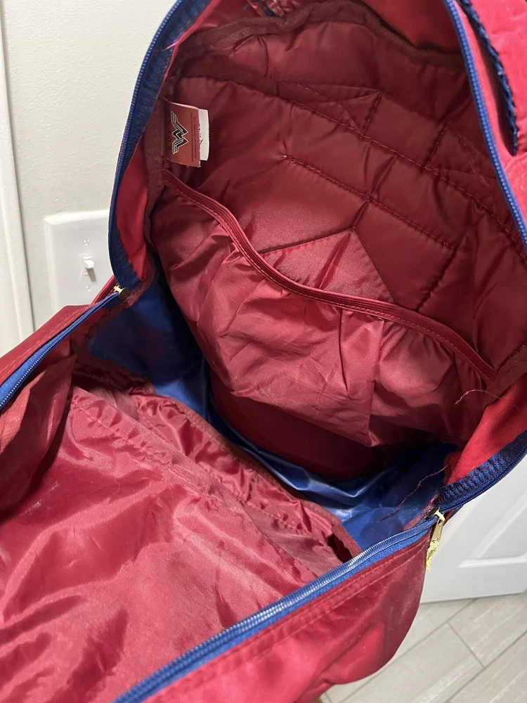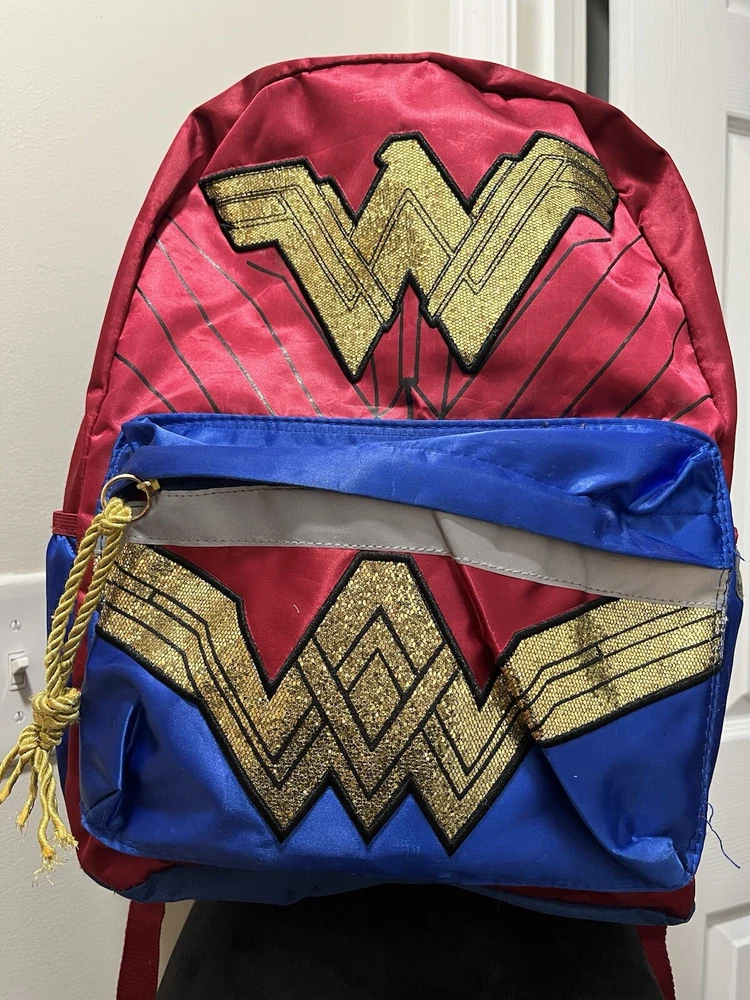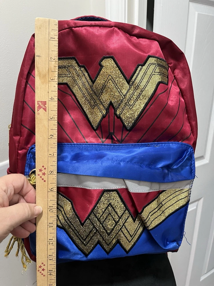 The DC Comics Wonder Woman Dawn of Justice Backpack by Warner Bros is designed for men featuring the iconic Wonder Woman character. It comes in red, gold, and blue colors with adjustable straps for comfort. Made from polyester material, this backpack incorporates the superhero style with practicality for daily use.