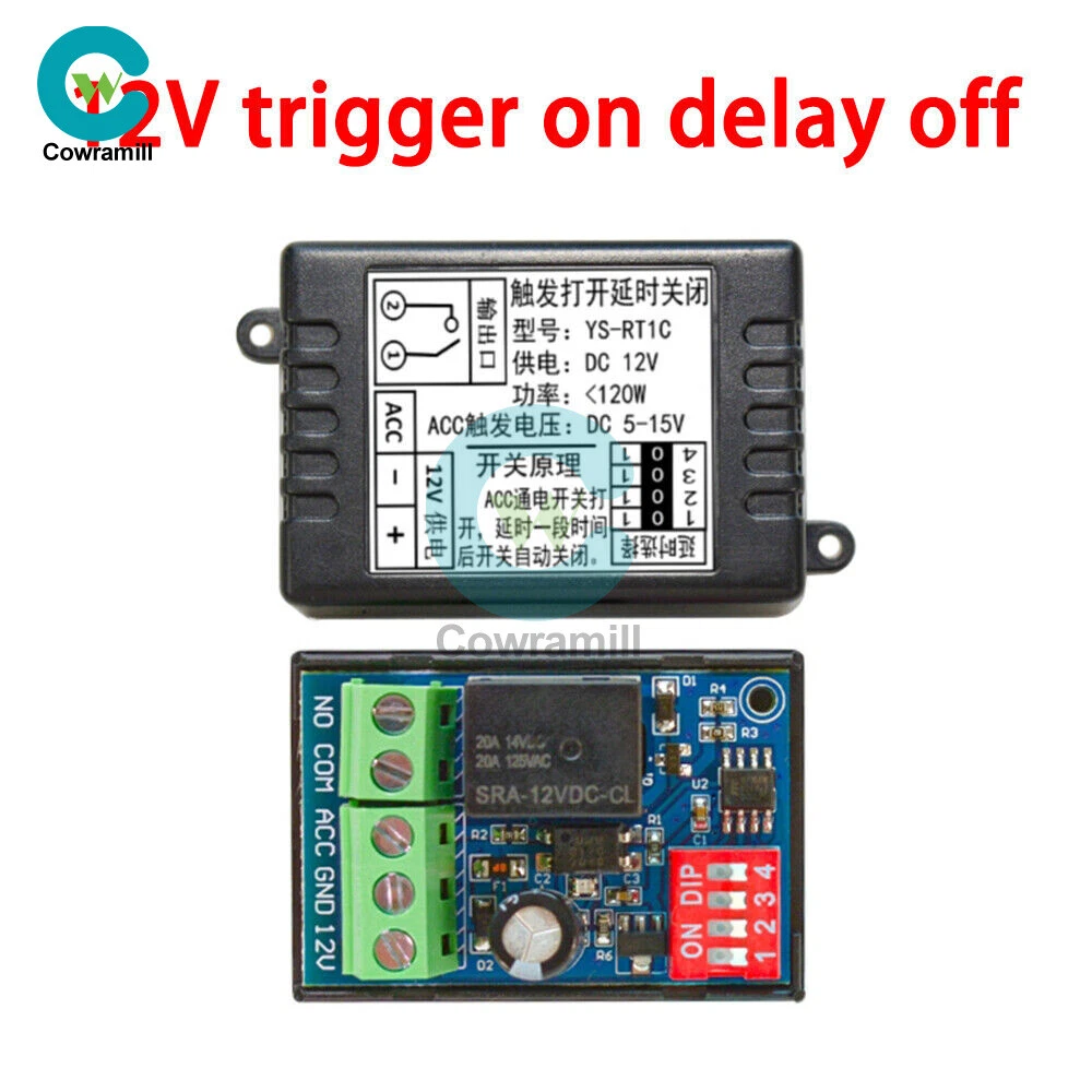 Visit store Items for sale About us Product Details Features 1.High quality shell, dustproof and flame retardant. 2.Car modification parts 3.Time optional, you can choose according to your needs. 4. Simple operation, can be timed to close automatically 5. Wide range of uses, such as exhaust fan, engine, cooling fan, lighting, navigation, media sound, door and window delay lifting and other automotive circuits power failure delay control Model: YS-RT1Q Specification of shell with hole: 63*35*22mm Bare board specification: 45*29*18mm Supply voltage: DC 12V Standby current: ≤10ma Working current: 68ma (current after the trigger switch is turned on) Control voltage at output: DC 0-14V , AC 0-125V Output control current: <11A Working temperature and humidity: -20℃ to 70℃, RH≤80%. Switch workflow: After energizing the switch, when ACC detects power, it starts to delay for 8 seconds and then the switch stays closed, so when ACC detects no power, it starts to delay for X, and then the switch disconnects when the time is up. (which 8 seconds for the fixed time users can not be modified, can be customized) Model: YS-RT1C Specification: 50x35x22mm Supply voltage: DC 12V Working current: 68ma (current after trigger switch on) Standby current: 10ma Control voltage at output: DC 0-14V , AC 0-125V Output control current: <11A Operating temperature: -20℃ to 70℃ Working Principle: After connecting the power to the device, the trigger port will provide voltage trigger, and the switch will be opened and closed automatically after a delay time. Model: YS-RT1K Shell with hole specifications: 63 * 35 * 22mm Bare board specification: 45*29*18mm Supply voltage: DC 12V Standby current: <3MA Operating current: 68ma (current after trigger switch on) Control voltage at output: DC 0-14V , AC 0-125V Output control current: <11A Operating temperature: -20℃ to 70℃ Working Principle: After powering on the device, the switch will turn on and after a delay time, the switch will turn off. Commonly used function: check whether the external power supply has power, as a trigger signal to control the lower level equipment. Model: YS-RT1T Specification: 50x35x22mm Supply voltage: DC 12V Working current: 68ma (current after the trigger switch is turned on) Control voltage at output: DC 0-14V , AC 0-125V Control current at output: <11A Operating temperature: -20℃ to 70℃ Working Principle: After connecting power to this device, the device will delay for a period of time and then turn on the output. Model: YS-RT1M Shell with hole specification: 63*35*22mm Bare board specification: 45*29*18mm Supply voltage: DC 12V Standby current: ≤10ma Working current: 68ma (current after the trigger switch is turned on) Control voltage at output: DC 0-14V , AC 0-125V Output control current: <11A Operating temperature: -20℃ to 70℃ List 1 x Car Power Relay Module Payment Method Shipping Policy Feedback Payment Method Payment must be received in 5 business days of auction closing. Please leave note for your special request (e.g. Colors or Size) when you pay the order. Any special request cannot be accepted after 24 hours of payment, because most of orders will be processed instantly and same day dispatched. Shipping Policy 1. We only ship to the confirmed address provided by eBay. please make sure your ebay address is 100% matches the address you would like us to ship to. If not, please let us know before we sent you the package, or we will not be responsible for any loss. hope you could understand. 2. Orders will be processed instantly and dispatched within 1-3 business days except hoilday, so we do NOT accept any email/message note after you place orders. 3. All package need to wait 30 days,Please take care it.Less than 30 days,we can't take a refund. Feedback We maintain high standards of excellence and strive for 100% customer satisfaction! Feedback is very important to us. We request that you keep in touch with us immediately BEFORE you give us neutral or negative feedback, so that we can satisfactorily address your concerns.