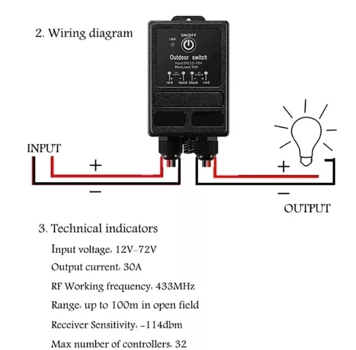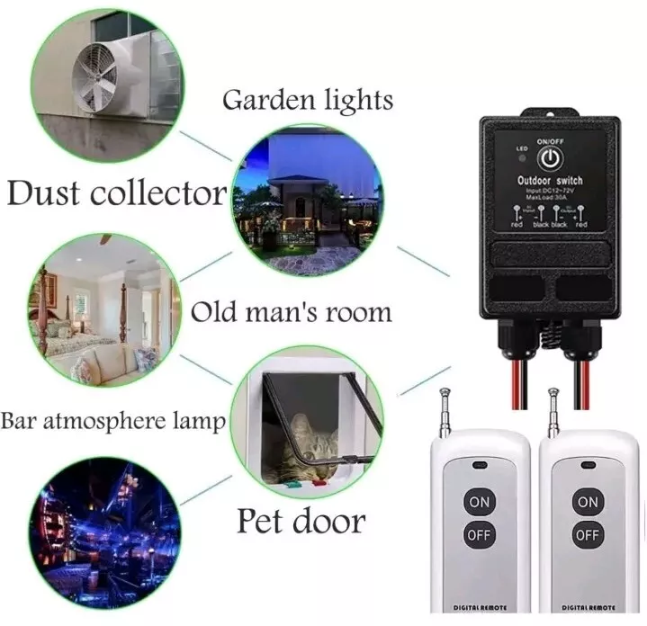 About this item High Power Load:The receiver adopts 40A relay, which can load high-power electrical appliances to ensure long-term stability control.(Note:max load:30A) Strong Singal-Strong RF signal works through walls and doors without any interference; Max range is up to 984ft with no obstacle. IP65 Watertight construction-Waterproof wireless remote control switch is suitable for indoor and outdoor use .use safely even in damp places.Please don't soak it in water. Easy to Install- Simply install the receiver between the devices to be controlled and the power supply. You can switch your device on and off from anywhere via the remote control switch panel. Wide Application:This long distance remote control switch is used in mud pumps, motors, lamps,fans,dust collect, insecticide machines, sprayers, car washers, bells, etc. various types of electrical equipment.