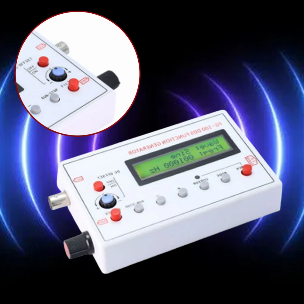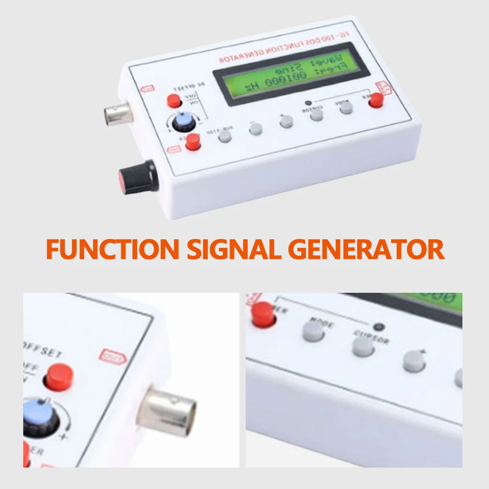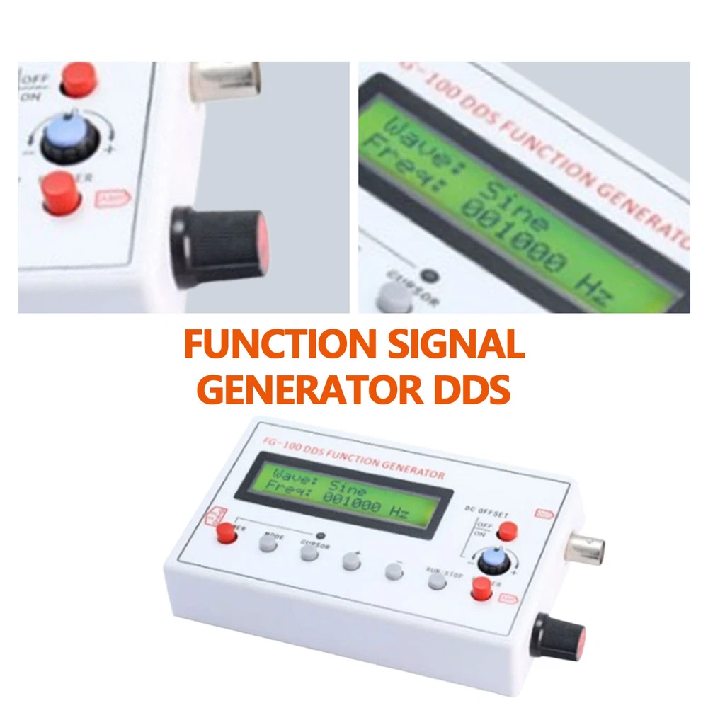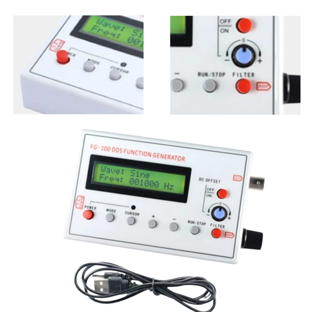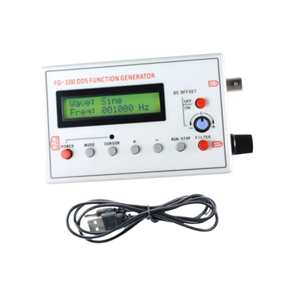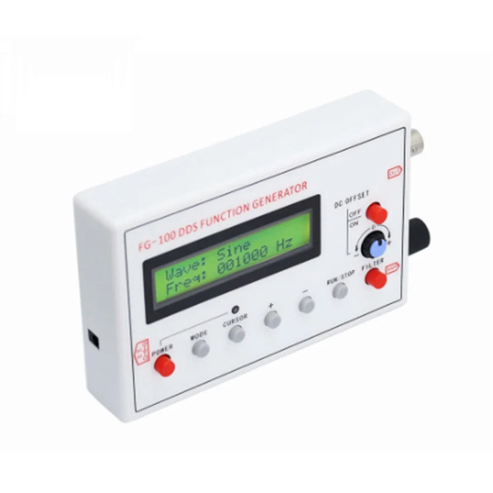 DDS Function Signal Generator Module 1HZ-500KHz Sine +Square Wave+Case FG-100 US Description Pattern Name: 1HZ-500KHZ Used for alignment of audio equipment and up into the lower radio frequencies at the lower end of the Am band or Amateur bands Features Small size, complete functions, simple operation, easy to carry. It can be powered by adapter or lithium battery. The good accuracy and frequency stability of DDS are suitable for oscilloscope scanning time factor calibration. Square wave output, suitable for oscilloscope attenuator and probe pulse characteristic adjustment. Together with the oscilloscope, it can be used for electronic circuit test and debugging, frequency characteristics and impulse response test and measurement of audio amplifiers. Technical index 1. Frequency range: sine wave 1Hz-500kHz (where the output amplitude is flat to 200 kHz, the output amplitude will decrease as the frequency is further increased), other waveforms 1Hz-50kHz (but the upper limit of the adjustable frequency is not limited, if The requirements for distortion and shaking are not high, and the frequency of use can be further increased). 2. Resolution: 1Hz. 3. Output waveform: sine wave, square wave, triangle wave, forward sawtooth wave, reverse sawtooth wave, electrocardiogram, noise wave. 4. Sine wave distortion: <1% below 1kHz, <0.5% above 1kHz. 5. Output amplitude: maximum ±10V (P-P). 6. Output impedance: 50 ohms. 7. DC offset: maximum ±10V, with shutdown function. 8. All setting parameters can be saved 9. There are filters that can be turned on and off, which can be well adapted to the output of sine and pulse waveforms. 10. Power supply: DC3.7-10V. It is recommended to use DC5V adapter, or 3.7V lithium battery. 11. Dimensions: 140x80x27 mm Package Included 1 x DDS Function Signal Generator 1 x USB to DC Power Cable