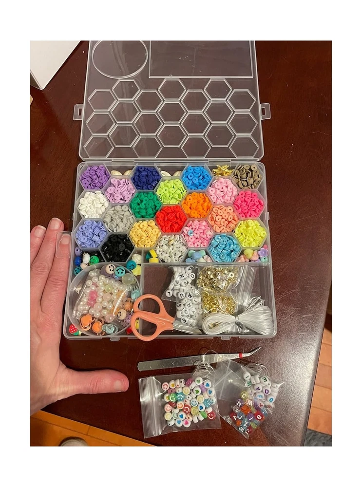 DEHVIHS Clay Beads Kit, 6000PCS Friendship Bracelet Making Kit, 21 Colors with 26 Types of Charms Preppy Polymer Heishi Beads with Letter Beads Jewelry Making Kit Product Details Color: Colorful Brand: Unbranded MPN: Does not apply UPC: Does not apply EAN: Does not apply Brand: DEHVIHS Age Range (Description): Kid Color: Colorful Item dimensions L x W x H: 7.09 x 7.87 x 0.71 inches Material: polymer clay heishi Brand: DEHVIHS Age Range (Description): Kid Color: Colorful Item dimensions L x W x H: 7.09 x 7.87 x 0.71 inches Material: polymer clay heishi Seasons: All Seasons Included Components: 2 rolls of elastic thread, scissors, tweezers, 21 colors of clay beads, 3 varieties of letter beads, 25 varieties of charms and accessories Number of Pieces: 6000 Style: Unique Special Feature: Polymer Clay Heishi, Versatility, Personalization Art Craft Kit Type: Clay Beads, Friendship Bracelet Making Manufacturer: DEHVIHS Product Dimensions: 7.09 x 7.87 x 0.71 inches Item Weight: 6.4 ounces Date First Available: November 18, 2023 [Unlock Your Creativity]: This comprehensive beading kit provides you with a wealth of inspiration. 21 vibrant colors of clay beads (about 260pcs per color, 5460pcs in total), 3 varieties of letter beads (104pcs in total), and an assortment of 25 varieties charms and accessories (436pcs in total). We've also included 2 rolls of elastic thread, a pair of scissors, and tweezers. Let your imagination soar and indulge in endless DIY fun! [Premium Quality Material]: Our clay beads are crafted from polymer clay heishi, offering a lightweight and comfortable feel. Perfect for any occasion, from beach outings to parties and banquets, these beads ensure both style and comfort. [Versatile Creations]: Dive into a world of possibilities! Use this clay bead kit to craft friendship bracelets, necklaces, anklets, or even charming cell phone pendants. Bond with your kids over cheerful family DIY time or create heartfelt DIY gifts for birthdays, Valentine's Day, Mother's Day, Christmas, and Thanksgiving. [Ideal DIY Gift]: Explore various color combinations and letter bead arrangements to unveil unique designs with distinct meanings. Enhance not only your crafting skills but also color cognition, hands-on ability, concentration, and patience. This kit fosters a harmonious and enjoyable family atmosphere, strengthening parent-child relationships through shared DIY experiences. [Important Reminders]: For the safety of children, it's advisable to supervise their use of this clay beads kit to prevent accidental ingestion. If you have any questions or need assistance with our product, feel free to reach out. Your satisfaction is our priority!