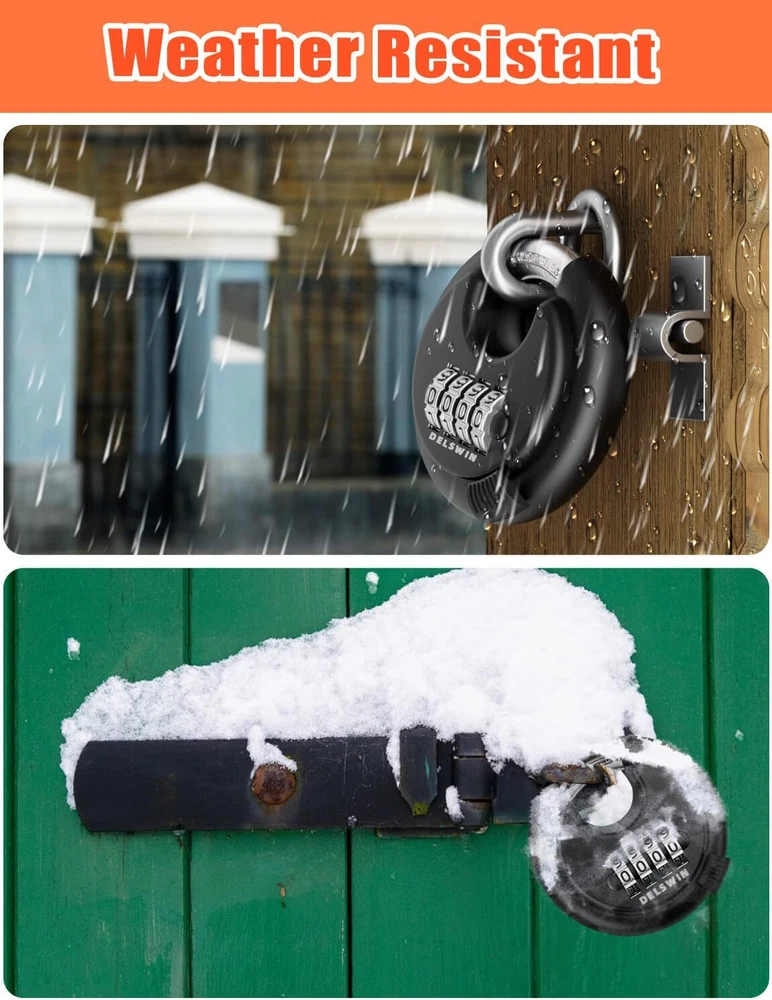 Store New Arrivals Add to Favorite View Feedback Contact DELSWIN 4-Digit Disc Combination Lock Outdoor - Heavy Duty Combination Padlocks with Hardened Steel Shackle Weatherproof Combo Locks for Gates,Sheds,Fence,Storage Unit (3/8" Shackle, Black,2 Pcs) Description Style Disc Combination Lock Control Method App Warranty Description 12-month warranty from the date of purchase Batteries Included? No Usage Inside, Outside Number of Pieces 2 Batteries Required? No Finish Painted Brand DELSWIN Material Stainless Steel Item Dimensions LxWxH 2.75 x 2.75 x 0.82 inches Finish Type Painted Manufacturer DELSWIN Item Package Quantity 1 Item Weight 1.1 pounds Lock Type Combination Lock Special Features Hardened steel construction, Cut Resistant, Weather-resistant, 4-Digit Combination Special Feature Hardened steel construction, Cut Resistant, Weather-resistant, 4-Digit Combination Part Number K25005-2 Color Black 2Pcs Shape Round Recommended Uses For Product Storage Unit, Garage, Fence, Trailer Product Dimensions 2.75 x 2.75 x 0.82 inches Size Shackle Diameter: 3/8" Unbreakable Lock for Security - The whole lock body adopts the most solid lock material - Stainless steel 304, with the advantages of anti-rust, anti-drilling, anti-prying and extra long service life. Hardened steel shackle offers extra cut resistance. And the slide button will not fall off as easily as other locks, safe enough to protect your thumb from being scratched while sliding it open or closed. So its solid construction means you can use it for years without worrying. Waterproof & Rustproof - This lock is 100% outdoor weather resistant, corrosion resistant. Operate smoothly and these numbers don't get stuck whether in bad weather, cold weather, or when it rains. Easy-to-use Keyless Dial - With 10,000 possible combinations, our lock is much more secure than traditional 3-digit code locks. You can easily set a new combination in just 10 seconds using our straightforward instructions. Versatile & Durable - The padlock has a diameter of 70mm(2.75inches) and a thickness of 22.5mm(0.88inches).The shackle is 22mm(0.86inches)wide, 18mm(0.7inches)tall,and has a diameter of 9.5mm(3/8 inches). making it ideal for use on storage units, fences, garages, sheds, trailers, outdoor gates, warehouses, moving trucks, and more. Before purchasing, please measure the lock hole or latch on your item to ensure that this padlock will fit securely. If you have any questions about the size or compatibility of this lock, please don't hesitate to contact us for assistance. Exceptional Customer Service - We offer a 12-month worry-free guarantee on all of our locks, and our friendly customer service team is always available to help you with any questions or concerns you may have. We're committed to providing you with an exceptional shopping experience. Product Description DELSWIN 4 Digit Combination Disc Padlock HIGH SECURITY AND RELIABILITY Hardened Steel Shackle & Safe Circular Design DELSWIN hardened steel shackle has a cut resistant up to 8100lbs The round shielded design minimizes shackle exposure and protects against bolt cutter attacks. Keyless Heavy Duty Lock 4 digits provide 10,000 different combinations for added security. Weatherproof Padlock Don't worry about the bad weather. Combo lock from DELSWIN made of stainless steel with a hardened steel shackle for further strength and security. Anti-corrosion, Antifreeze. ABOUT US We offer the best prices around on high quality products. Our E-store includes media such as books, movies, music and games while offering electronics, toys, sporting apparel, clothing, tools, general home, garden items and more. SHIPPING We are always working hard to ensure your package arrives as soon as possible. Please understand that some factors like weather, high postal traffic, and the performance of shipping companies are outside of our control. We offer free shipping to the lower 48 states and ship within 2 business days of payment, usually sooner. We do not accept P.O. Boxes. Please provide a physical address. For shipping outside of the continental USA, we only use eBay's Global Shipping Program.The item is shipped to KY and then sent to the rest of the world. International customers are responsible for all duties and taxes. Continue to check out in order to calculate costs for shipping the item to your country. Messages regarding eBay's Global Shipping Program MUST be directed at eBay EXCLUSIVELY. RETURNS We offer a 30-Day Return Policy on items which you are not completely satisfied with. You have the option for a full-refund or an exchange of the item. No returns are available on items shipped outside of the USA. PAYMENT We accept PayPal. CONTACT US This page content is yet to come Please ad us to your favorite seller and visit again later Thank You CUSTOMER SATISFACTION We try our very best to make sure every customer is completely satisfied. If there's a problem, message us! We're happy to help. WE ACCEPT Copyright © 2021 AutoDS. | All Rights Reserved