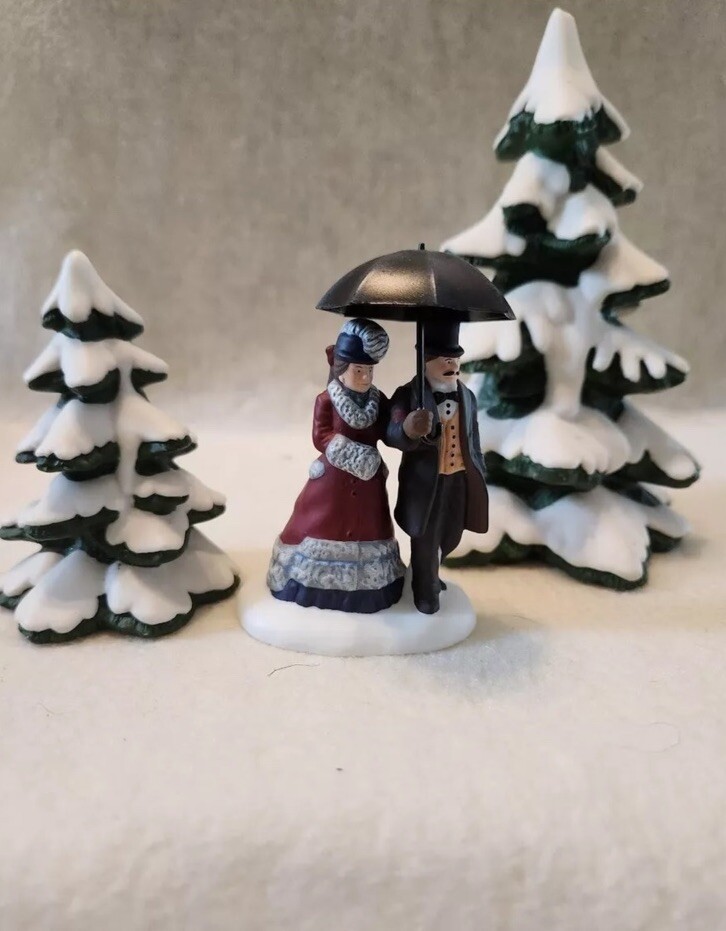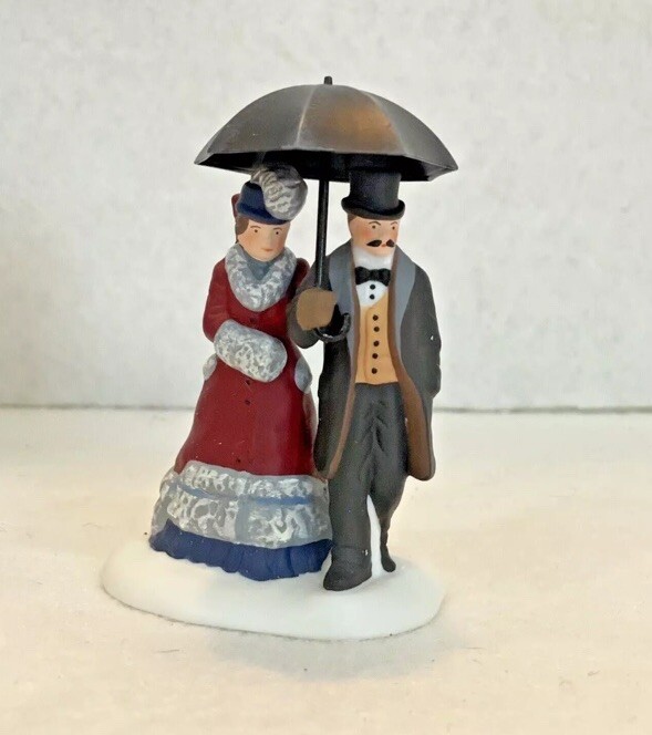 Enhance your Christmas decor with this charming accessory from the Department 56 Dickens Village collection. The figurine features a delightful couple out for a stroll under the umbrella, adding a touch of nostalgia to your festive display. Crafted from high-quality ceramic and porcelain, this multi-colored piece is asymmetrical in shape and comes painted with intricate details that bring the characters to life. The item, which was manufactured in 1999, is a perfect addition to any room and suitable for collectors of all ages, including teens, adults, and kids. It comes boxed, making it an ideal gift for loved ones or a treat for yourself. Celebrate the seasonal theme with this exquisite figurine that will surely become a treasured part of your holiday tradition.