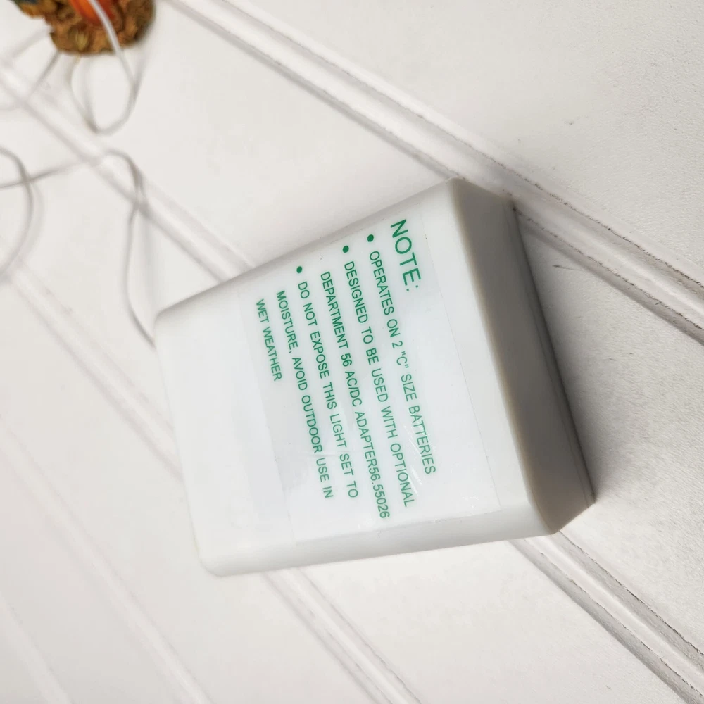 This is a DEPT 56 Halloween Village accessory featuring LIGHTED HALLOWEEN SCARECROWS, which are new open box. It is a collectible item that would make a spooky addition to a Halloween-themed display or village. This accessory is perfect for decorating during the Halloween season and would add a festive touch to any holiday display. Takes two c batteries not included. New open box never displayed. Batteries not included