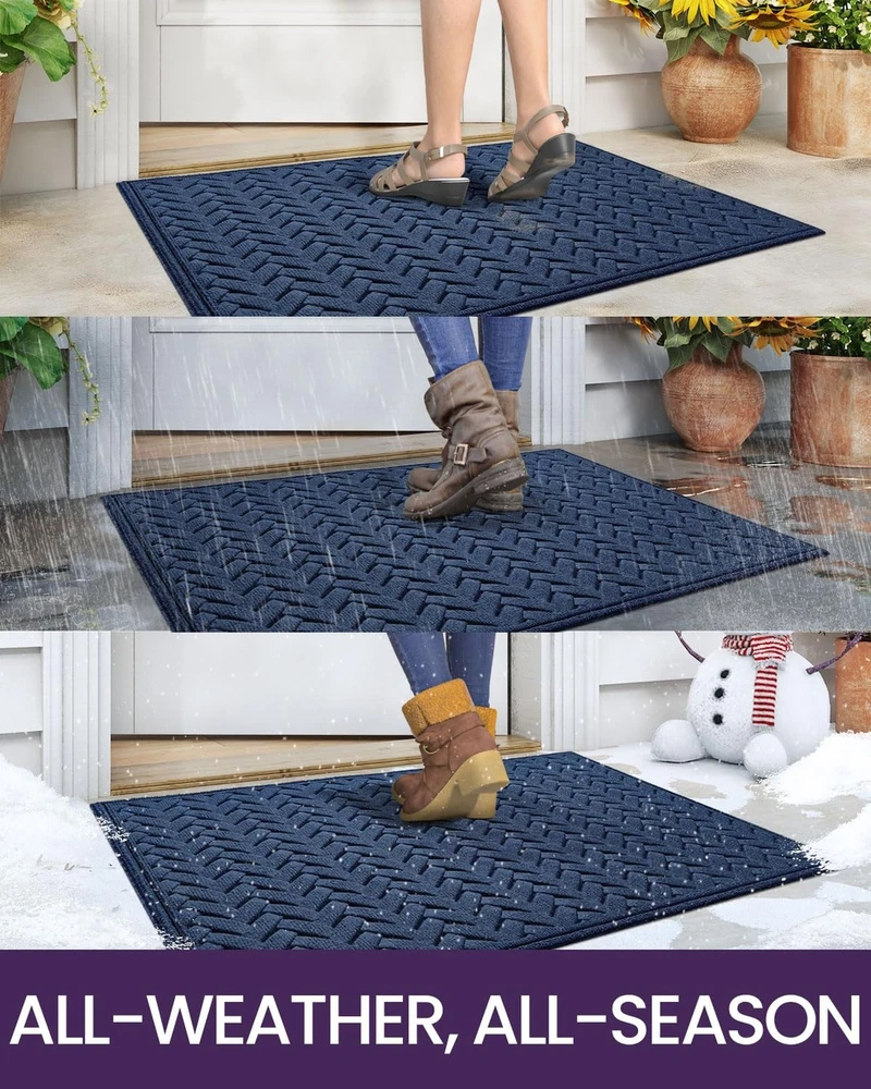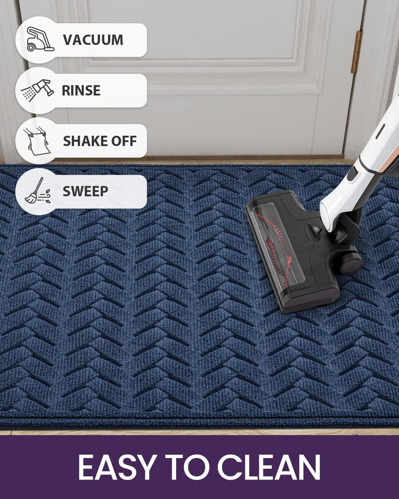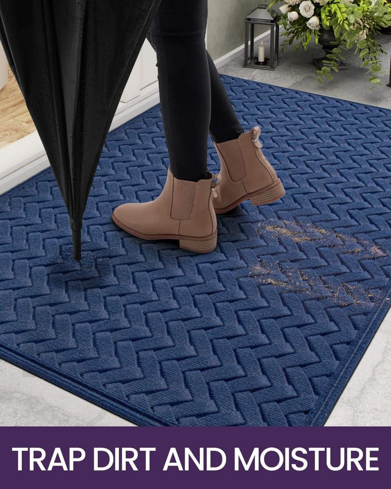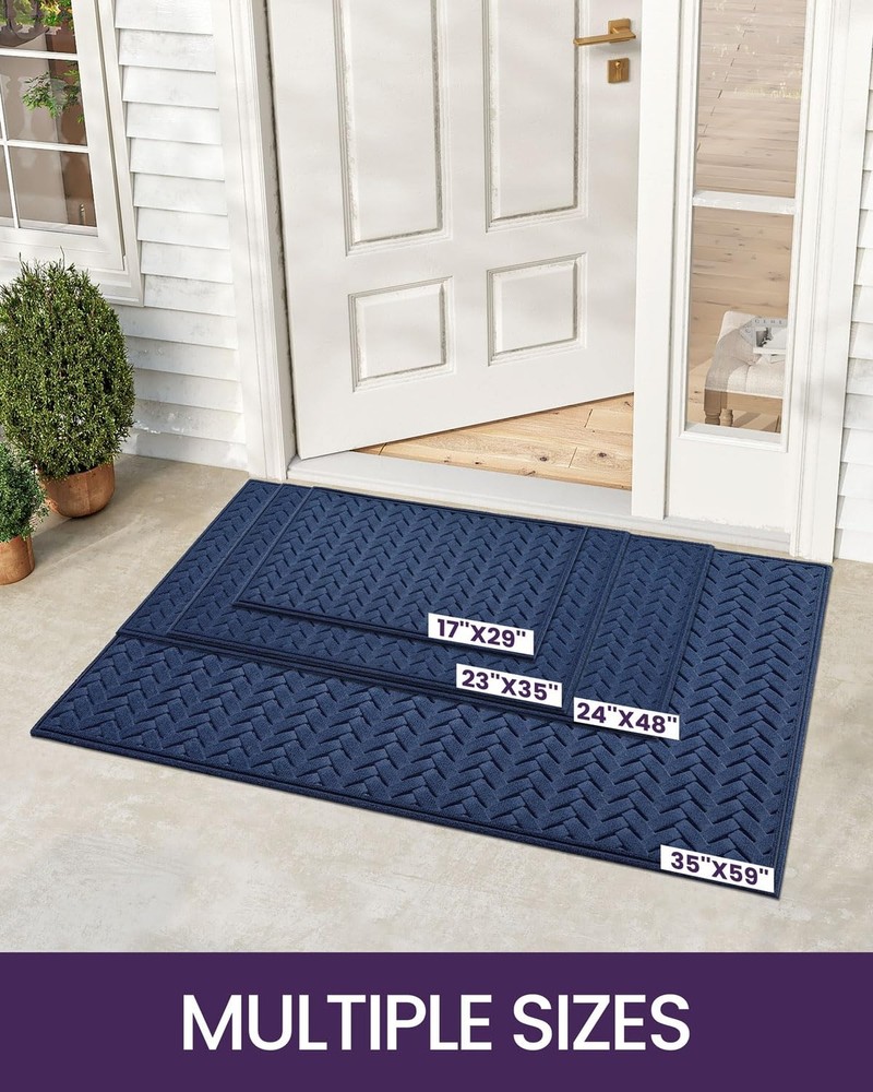 DEXI Front Door Mat, Non Slip Low-Profile Doormat for Inside Back Entrance, Stain and Fade Resistant, Easy Clean Patio Welcome Entryway Mats, 23x35, Wave Navy Product Details Size: 23"x35" Color: Wave Navy Brand: DEXI MPN: GB UPC: Does not apply EAN: Does not apply Brand: DEXI Size: 23"x35" Material: Polypropylene Weave Type: Machine Made Item Weight: 3.2 Pounds Brand: DEXI Size: 23"x35" Material: Polypropylene Weave Type: Machine Made Item Weight: 3.2 Pounds Pile Height: Low Pile Construction Type: Machine Made Back Material Type: Rubber Color: Wave Navy Indoor/Outdoor Usage: Outdoor, Indoor Theme: Welcome Is Stain Resistant: Yes Product Care Instructions: Sweep, Vacuum, Shake Off, Rinse Pattern: Waved Shape: Rectangular Special Feature: Fade Resistant, Easy to Clean, Stain Resistant, Non Slip, Washable Room Type: Hallway Product Dimensions: 35"L x 23"W Rug Form Type: Doormat Style: Modern Min. Required Door Width: 30 Inches Number of Pieces: 1 Item Thickness: 0.25 Inches Water Resistance Level: Waterproof Age Range (Description): Adult Item Weight: 3.2 pounds Manufacturer: Derxi Country of Origin: China Item model number: GB Stylish Design Outdoor Rug- Door mats for home entrance must be strong for all weather. This entryway rug is not easy to fade or wear out. The doormat is a suitable for front/back door, entryway, Trap Dirt and Mud- This doormat indoor entrance using premium polypropylene, which can help you to collect dirt like mud,rock,sand and etc. The outside door rug has a strong function with trap dirt,it can also prevent the moisture from permeating to your floor. Non Slip Backing-The outdoor mats for home entrance is heavy duty. The backing is non slip and helps to stay in the place. The outside door mats is stable and will not damage to your floor. Low Profile Thickness- The outdoor door mat with a very thin thickness,if you are looking for a fashion and low profile door mat,this indoor mat will be your good choice. Whenever you open or close the door, you will have no trouble with this entry mat. Easy Care Doormat- For daily cleaning,vacuum or rinse are both available. The most easily way is shaking the indoor outdoor rug to let the dirt dropping into your garbage can or rinse with water hose.
