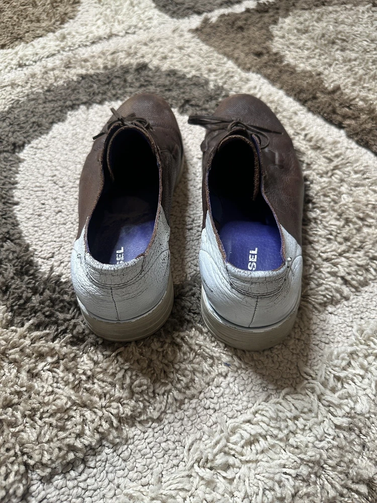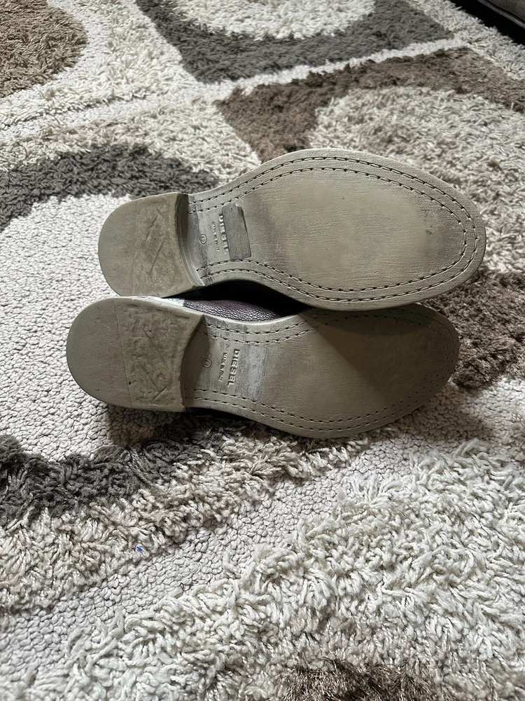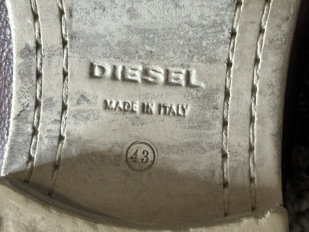 Elevate your style with these stunning brown color block oxfords from Diesel. Crafted with high-quality leather and designed in Italy, these shoes are perfect for the fashion-conscious man who wants to make a statement. The medium width and US shoe size 10 make them a comfortable fit for any occasion. These shoes are perfect for men who want to add a touch of sophistication to their wardrobe. The dark shade and perforated design add a unique touch that will make you stand out from the crowd. Whether you're dressing up for a formal event or just want to look sharp, these Diesel oxfords are the perfect choice.