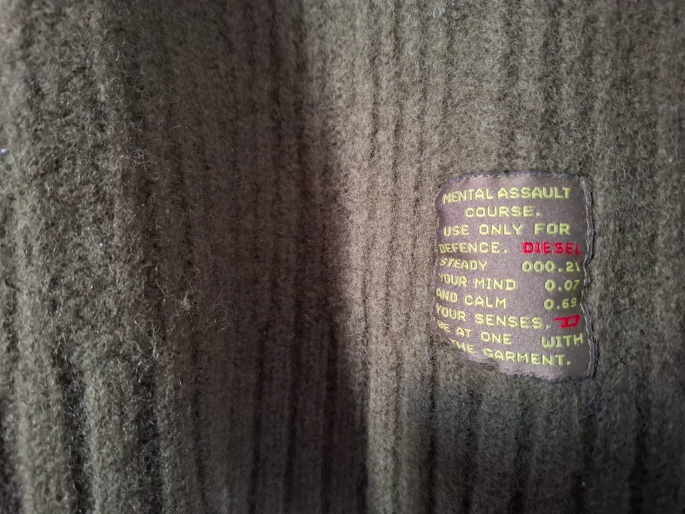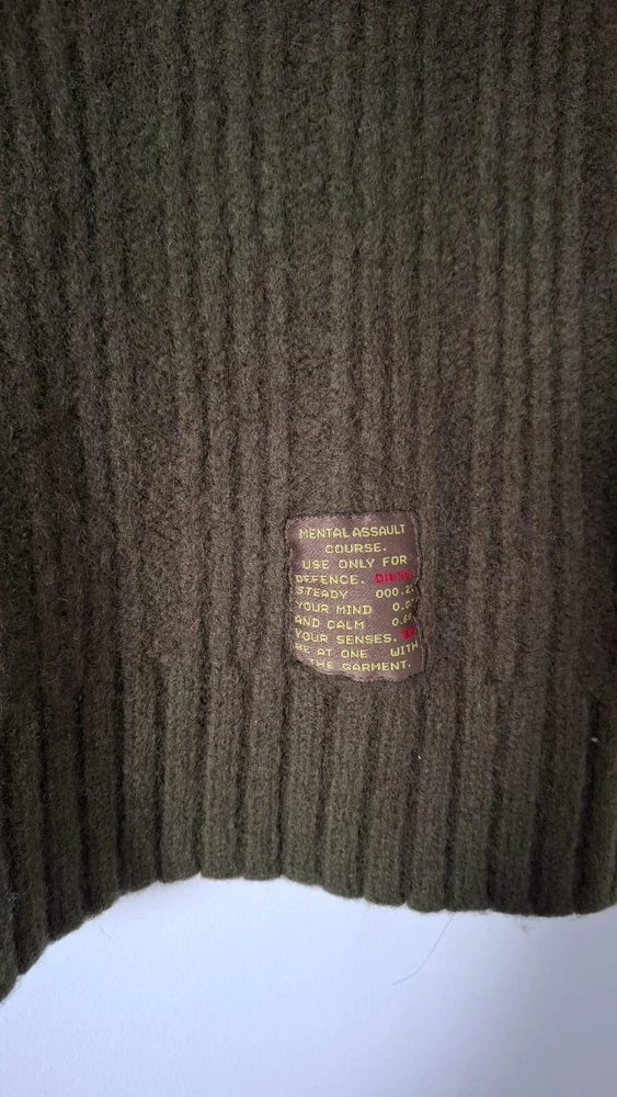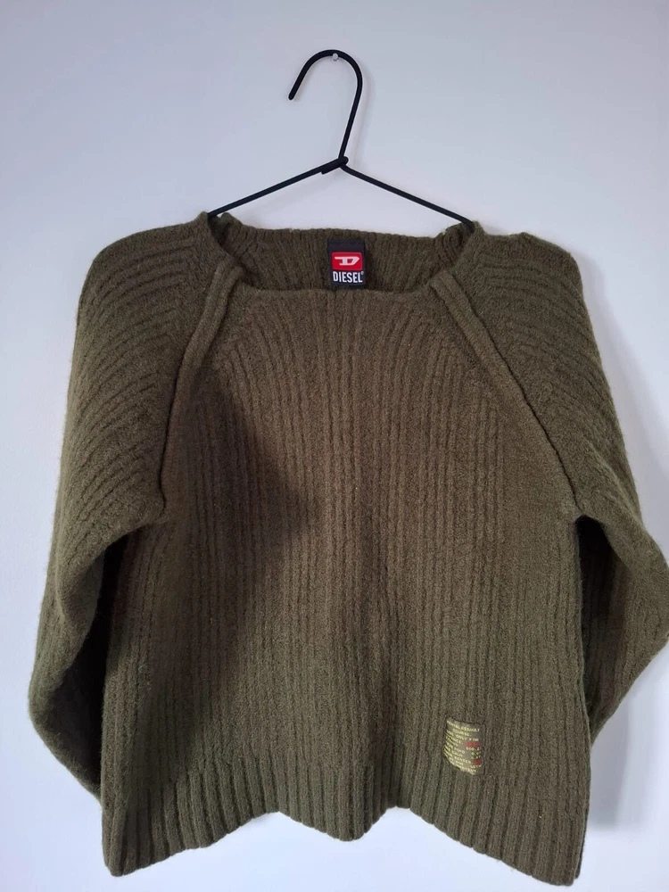 Item Highlights: DIESEL army olive green ribbed knit sweater Crew neck with classic raglan sleeves for a relaxed silhouette Distinctive Diesel patch detail: “Mental Assault Course” print for an edgy look Crafted from 100% pure wool for superior warmth and comfort Thick ribbed knit texture – ideal for cooler weather Size XS (fits a relaxed Small) Garment Care: Hand wash only, lay flat to dry. Do not bleach, wring, or tumble dry. Shipping Information: Please note: This item ships from Tirana, Albania. Domestic shipping is not applicable. Actual shipping times align with the international shipping options provided. Expedited shipping via UPS Worldwide Expedited is included. Your package will ship directly from Albania and arrive in 1–4 business days . Customs Notice: Any additional charges related to importation, such as customs duties, VAT, or other taxes, are not included in the price. These charges will be paid directly to the shipping carrier by the buyer upon delivery, if applicable. If the buyer does not clear the item from customs, they remain responsible for the cost of returning the item to the seller. Please ensure you are familiar with your country's import policies before purchase. Returns: Returns are accepted within 30 days if the item is unused and in its original condition. The buyer is responsible for return shipping. Thank you for being here! Don't forget to browse our other timeless pieces—you might find your next wardrobe favorite. 😊