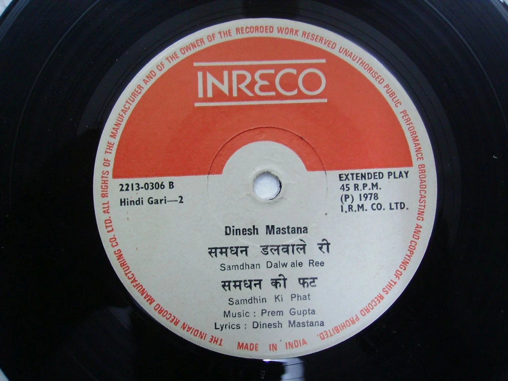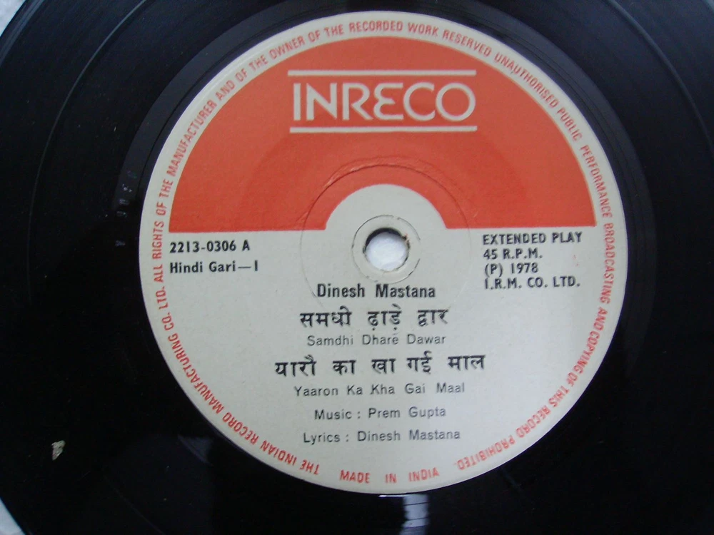 DINESH MASTANA PREM GUPTA HINDI GARI rare EP RECORD 45 vinyl INDIA 1978 EX