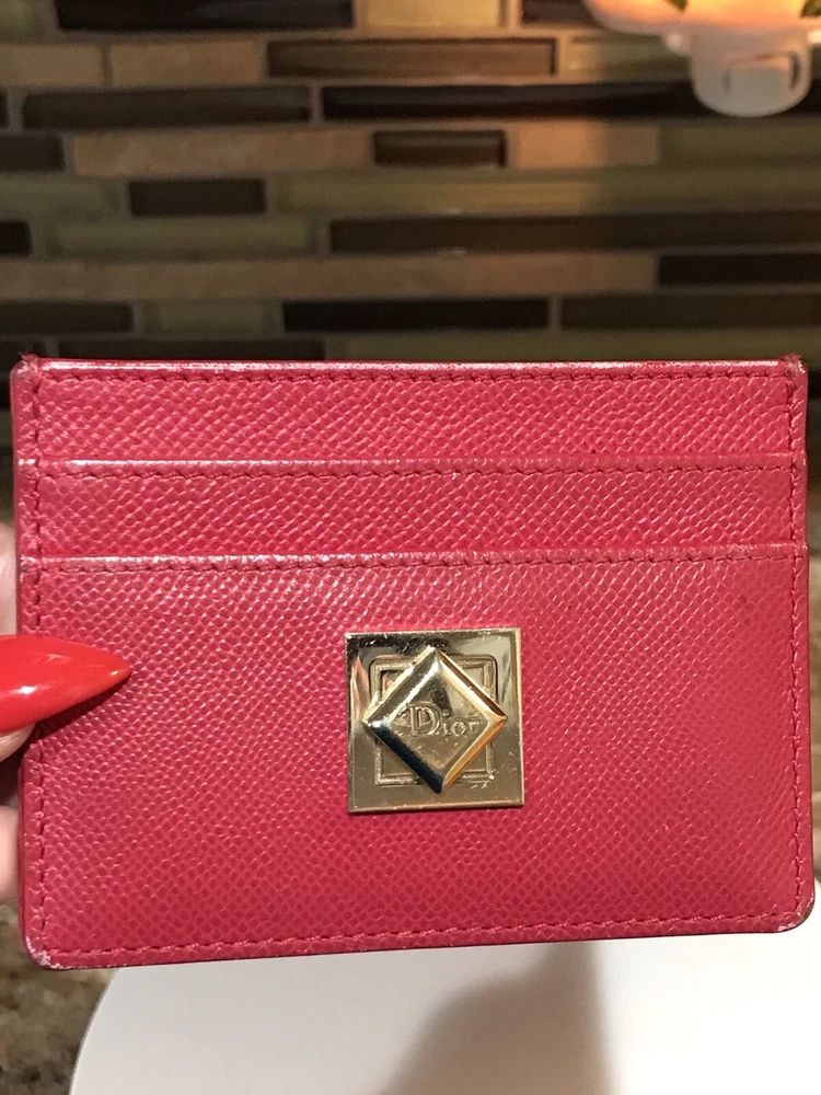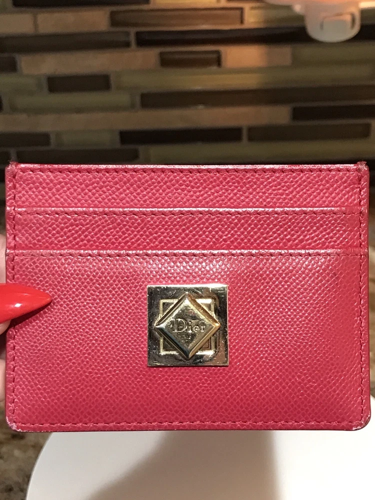 -Condition: Pre-owned β ; in good condition -Rubbing on edges/corners; some scratches -Color: Pink π -Material: Leather -Signature Christian Dior πβ€οΈπ₯ -Credit card slots -Gold Hardware -Very beautiful & vibrant card holder π -Reasonable offers are welcome π€