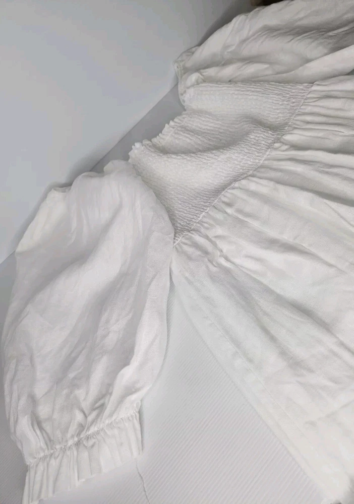 DISSH White Puff Sleeve Linen Dress Size 14 Classic Bohemian Gypsy Measurements: Bust not stretched out 34cm Bust stretched out 55cm Sleeve length 53cm Length 103cm. Please use photos for additional information and a guide as to how to rate them… Colour may vary from photo to photo… Please keep in mind that you are purchasing an item that is second-hand. Most items will show some sign of cosmetic wear throughout the item/garment. Sizes may vary so please read measurements. We do our best to show an accurate representation of the condition in the photos. Sent with Australia Post Standard Parcel in a small/medium or large satchel parcel type bag with a tracking number. All items are packaged and wrapped with extreme care, we use bubble wrapping and cardboard where necessary, and satchels and boxes to deliver clothing and other items. All garments are wrapped in tissue paper. We will recycle as much as we can in regards to packaging. I'm happy to combine purchases when applicable… Express postage upgrade $3