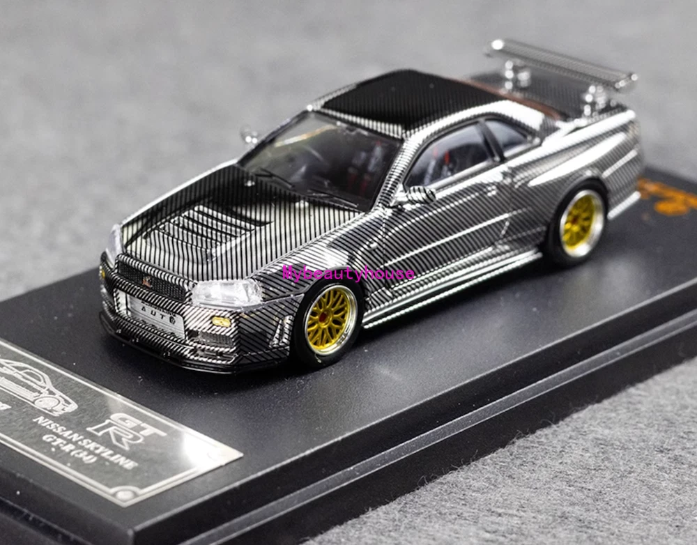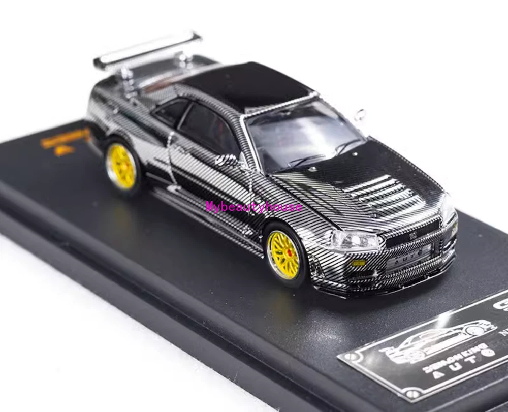 DK 1:64 Silver Carbon Skyline GTR R34 Racing Sport Model Diecast Metal Car