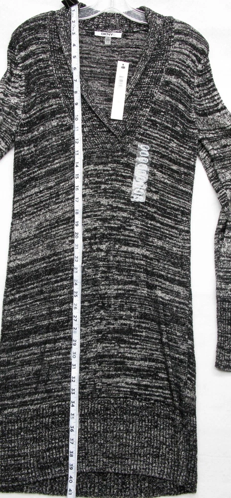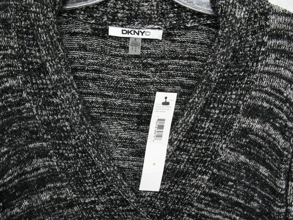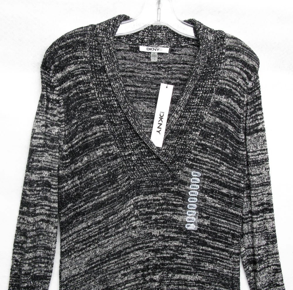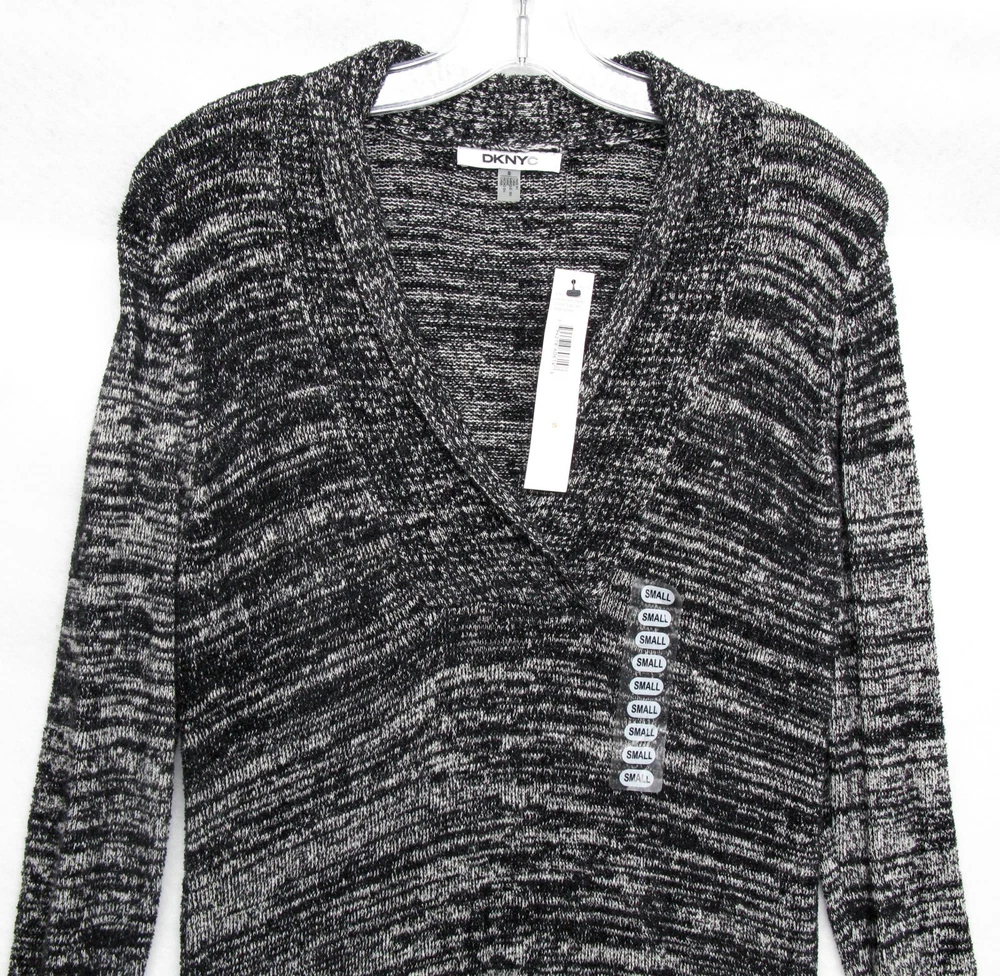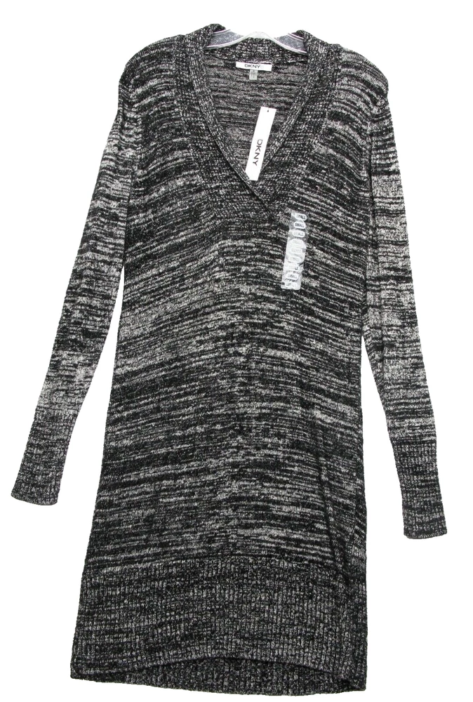 DKNY Black White Knit Long Winter Sweater DKNYC Office Casual Dress Small S NEW