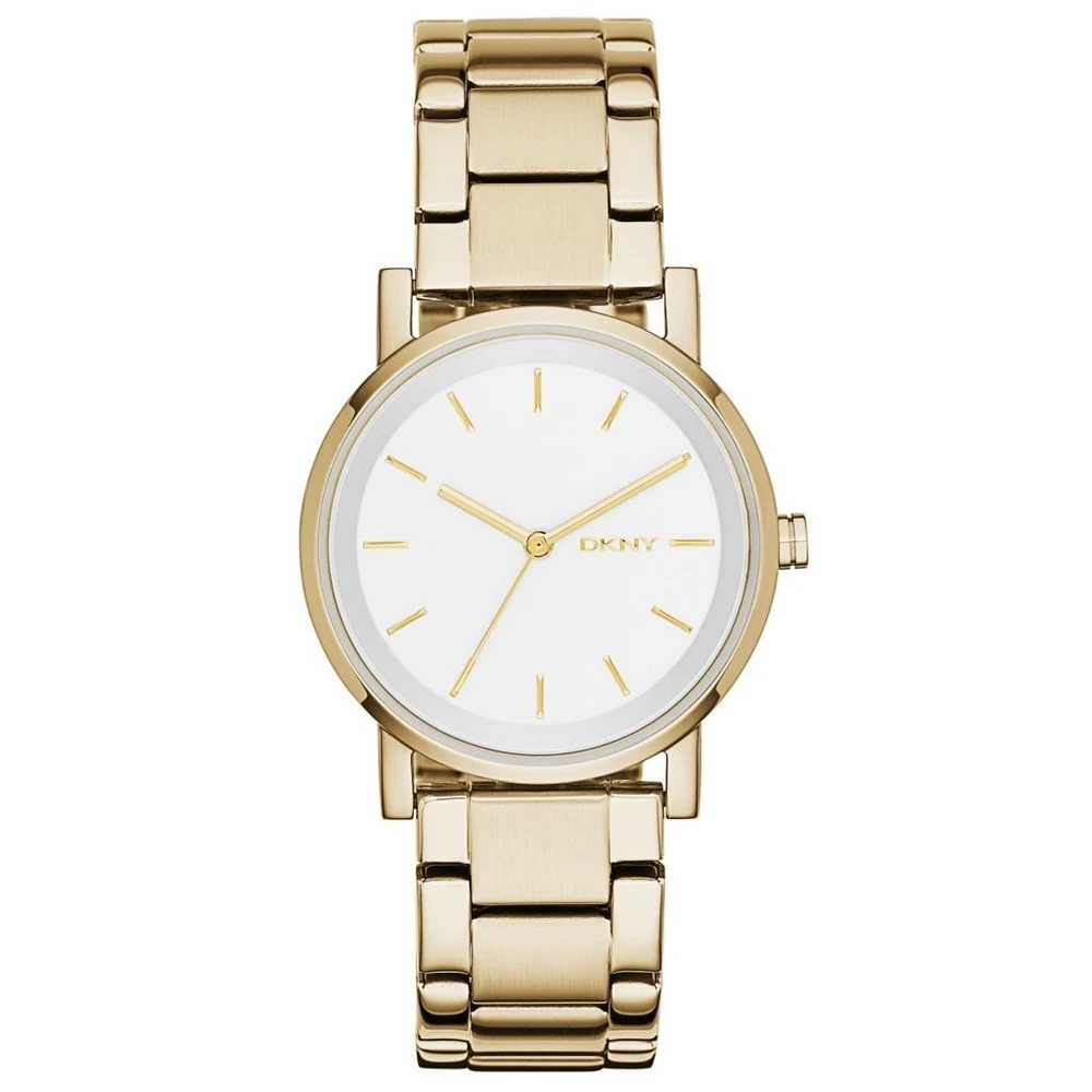 DKNY Women's Soho Quartz Stainless Steel Dress Watch, Color: Gold (Model: NY2343 Simply stated, DKNY is the energy and spirit of New York: international, modern, fresh, and real. DKNY addresses the real-life needs of women everywhere — from work to weekend, jeans to evening. Inspired by the downtown Manhattan neighborhood, the DKNY SoHo watch is the definition of sleek and modern. With a boyfriend-inspired 34mm case design, this timepiece is made for life-on-the-go. Case size: 34mm; Band size: 18mm; quartz movement with 3-hand analog display; hardened mineral crystal face resists scratches; imported Round gold-tone stainless steel case with white sunray dial; gold-tone stainless steel bracelet band; links can be removed for a customized fit Water resistant to 50m (165ft): suitable for short periods of recreational swimming and showering, but not diving or snorkeling; 5 ATM Description In 1985, Donna Karan revolutionized dressing for the modern woman based on an intuitive understanding of their needs, desires, and busy lives. Today, our DKNY Ladies Watches live by those same standards. Shipping We offer FREE shipping on all orders! We ship within Three business days of payment, usually sooner. We use a selection of shipping services such as UPS, FedEx, USPS etc. We only ship to the lower 48 states, no APO/FPO addresses or PO Boxes allowed. Local pickups and combined shipping options are not provided at this time. Return You can return a product for up to 30 days from the date you purchased it. Any product you return must be in the same condition you received it and in the original packaging. Please keep the receipt. Payment We accept payment by any of the following methods: PayPal Please pay as soon as possible after winning an auction, as that will allow us to post your item to you sooner! Feedback Customer satisfaction is very important to us. If you have any problem with your order, please contact us and we will do our best to make you satisfied. Contact Us If you have any queries, please contact us via ebay. We usually respond within 24 hours on weekdays. Please visit our eBay store to check out other items for sale! Thank you for shopping at our store.