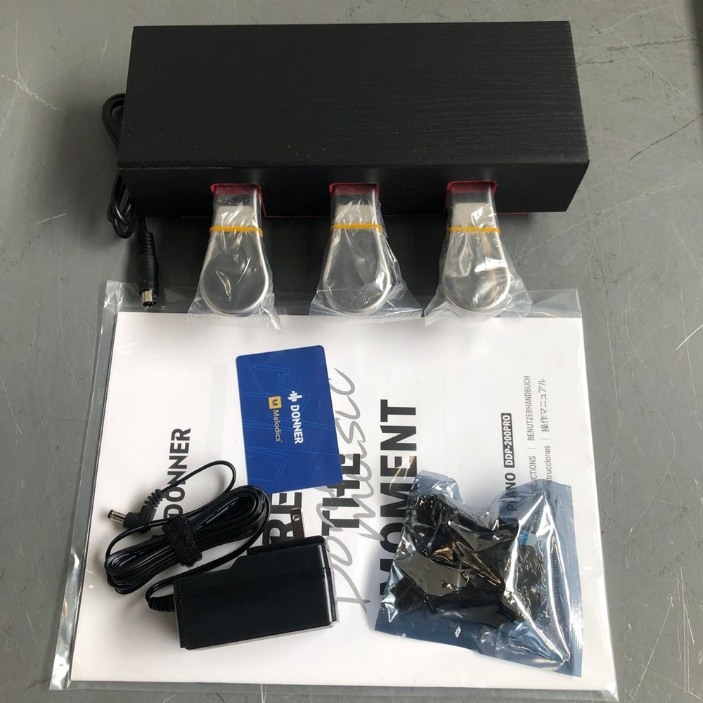 DONNER DDP-200 PRO DIGITAL PIANO KEYBOARD WITH 88 WEIGHTED KEYS, STAND/PEDALS You are bidding on ONE BRAND NEW DONNER DDP-200 PRO DIGITAL PIANO KEYBOARD WITH 88 KEY GRADED/WEIGHTED KEYS, STAND, & TRIPLE PEDAL. This is brand new, only opened to be inspected and tested. The original box was slightly distressed, but the piano and all contents are unharmed, in new, perfect condition! This is the upgraded pro model with 154 tones and 256 notes of polyphony as well as higher powered speakers and 2.4" color display. These are normally $800-$1000! It comes with everything shown. This is your chance to save big-time so don't miss out!! - Professional Keyboard: 88 Key Graded Hammer Action Keyboard with 4-level Velocity Curves, allowing players to adjust the touch response for an expressive and realistic playing experience. - Exceptional Sound & Precision: 138 Tones/ 120 Rhythms/ 256 Polyphony/ 130 Demos/ 2*25W Stereo Speakers - Intuitive IPS Touchscreen: A 2.4" full-view color display with touch button design simplifies navigation and enhances control during performances. - Learning Made Easy: Learning Function/ Audio Jack/ Recording/ Connects to IOS/ Android/ Windows Products, including Melodics software and Donner Music App for interactive lessons and practice resources, ideal for mastering techniques. PLEASE READ EVERYTHING IN THE LISTING DESCRIPTION PRIOR TO BIDDING. ITEMS COME AS SHOWN IN THE PHOTOS WITH ONLY WHAT SHOWN. WE DO NOT SHIP OUTSIDE THE USA/CANADA. IF YOU LIVE OUTSIDE THE USA/CANADA AND DO NOT HAVE A CONFIRMED SHIPPING WITHIN THE US THEN WE CAN NOT SHIP TO YOU! YOU MIGHT LOOK INTO FINDING A MAIL FORWARDING PROVIDER IN THE USA AND GETTING THEIR ADDRESS ADDED AND CONFIRMED IN YOUR PAYPAL ACCOUNT! ALSO IF YOU LIVE IN CANADA UNDERSTAND THAT DUTIES AND CUSTOMS TAXES ARE COLLECTED PRIOR TO DELIVERY AND WE DON'T EVER KNOW WHAT THOSE RATES ARE OR HAVE ANY CONTROL OVER THEM AT ALL. KEEP IN MIND IF BIDDING IN CANADA YOU WILL END UP HAVING TO PAY THESE. WE'VE DISCOVERED THAT THOSE WANTING SO SAVE MONEY ON THESE FEES CAN SELF-BROKER PACKAGES LOWERING THEM SIGINIFICANTLY. YOU CAN DO A WEB SEARCH FOR DETAILS ON THIS. PLEASE NOTE THE USE OF THE UPS SHIPPING CALCULATOR UNDER THE SHIPPING TAB. THIS USES THE UPS SITE TO CALCULATE EXACT SHIPPING AMOUNTS. WE DO NOT SHIP OUTSIDE THE US/CANADA (IF YOU LIVE IN CANADA THERE IS A DROP DOWN MENU TO SWITCH THE DESTINATION FROM USA TO CANADA). PLEASE UNDERSTAND THAT THESE ARE THE ACTUAL SHIPPING PRICES PER UPS THAT WE CAN'T CONTROL. WE DO OUR BEST TO PRICE ITEMS COMPETITIVELY ENOUGH THAT THE INCREASED SHIPPING AMOUNTS DON'T MATTER BUT WE WANT YOU TO BE HAPPY WITH EVERY ASPECT OF THE SALE. PLEASE E-MAIL US IF YOU HAVE QUESTIONS PRIOR TO BIDDING SO THERE'S NO CONFUSION Powered by SixBit's eCommerce Solution