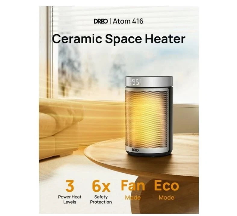 DREO 10'' Portable Space Heater with Remote, PTC Ceramic Electric Heater