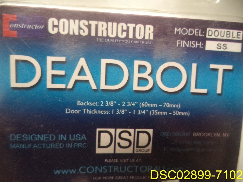 This item is:____________________DSD Constructor Deadbolt Lock SS Finish Double, with 3 keys____________________________________________________________ Sales tax will be added to items shipping to locations in Kansas. Includes only what is shown in the picture. Warehouse Location:____Shelf__c3 box 124______________________________ _____________________________________________________________________ _____________________________________________________________________ _____________________________________________________________________ By bidding and or purchasing this item(s) you (the buyer) agree to the following terms and conditions: 1. An “item” is defined as the following: The unit or units purchased in the ebay listing, (it could be a single unit, multiple units, a mixture of units, a variety of units, the incorrect unit or any combination of units not mentioned). It also includes the packaging, or lack thereof, the shipping label, and any contents place in the package by error. 2. The “Seller” is defined as seller and/or consigner. 3. The “buyer” is defined as the entity that purchased the item from seller and/or consigner. 4. If the buyer does not agree to these terms and conditions then do not purchase from us. 5. All items are sold “AS IS” No warranty or liability is expressed or implied. 6. The buyer agrees that: All items are shipped without insurance. It is the responsibility of the buyer to let us know if they want insurance on the item. Insurance cost is $2.00 for every $50 insured, in $50 increments. The buyer agrees that if no insurance is purchased and the item is not received or received damaged that no claim shall be brought against the seller. 7. We only ship to PayPal confirmed street addresses, no exceptions. No PO Boxes, APO, FPO or similar addresses. 8. The buer agrees that the sale is considered complete once the carrier has picked up the item from the seller. 9. The buyer agrees that if there is a dispute that arises that the dispute will be settled in the State of Kansas under the laws of Kansas. 10. The buyer agrees that the item fits the buyers purpose prior to bidding. 11. The buyer agrees to indemnify and hold harmless the seller from any and all claims arising out of any conditions or defects for the item or items that they purchased 12. We only ship to the continental United States. The shipping price quoted is for the continental United States Only. All other locations will be charged extra. Out of county buyers agree to pay any additional charges that we ask them to pay including but not limited to import duties, shipping costs, packaging costs, time costs, and other costs. If the item is shipped via ebay global shipping program these terms and conditions still apply. 13. Claims made against the carrier for non-delivery, lost in transit or any other reason shall be made solely by the buyer without aid from the Seller. 14. In the event that any clauses or phrases contained here within are ruled out by a judge, the law, a lawyer, jurors, and or any other entity all others remain in effect. 15. If any claim is brought against the Seller the buyer agrees to pay for any and all costs including legal fees, travel, time, accommodations, and other costs. Late payment will result in the seller charging interest at the maximum legal rate. 16. In any event or circumstance the maximum liability to the Seller is the purchase price plus cost of shipping plus sales tax if applicable. This amount is not subject to inflation, interest, inconvenience fee or any other price adjustment. 17. The buyer agrees there will be no refunds for any reason outside of Ebay’s return policy. 18. The buyer understands that our items are wholesale, overstock, unclaimed, foreclosure purchase or salvage goods. Most boxes have been opened for inspection and photos. If items are listed as new they may not come with original packaging. 19. The buyer agrees that they are trained, licensed, qualified, and understand how to properly use, dispose of and handle the product in accordance with law and regulations. 20. The buyer agrees that if any part of these terms and conditions is determined to be void that it does not void or alleviate the enforcement of the remainder of this contract.