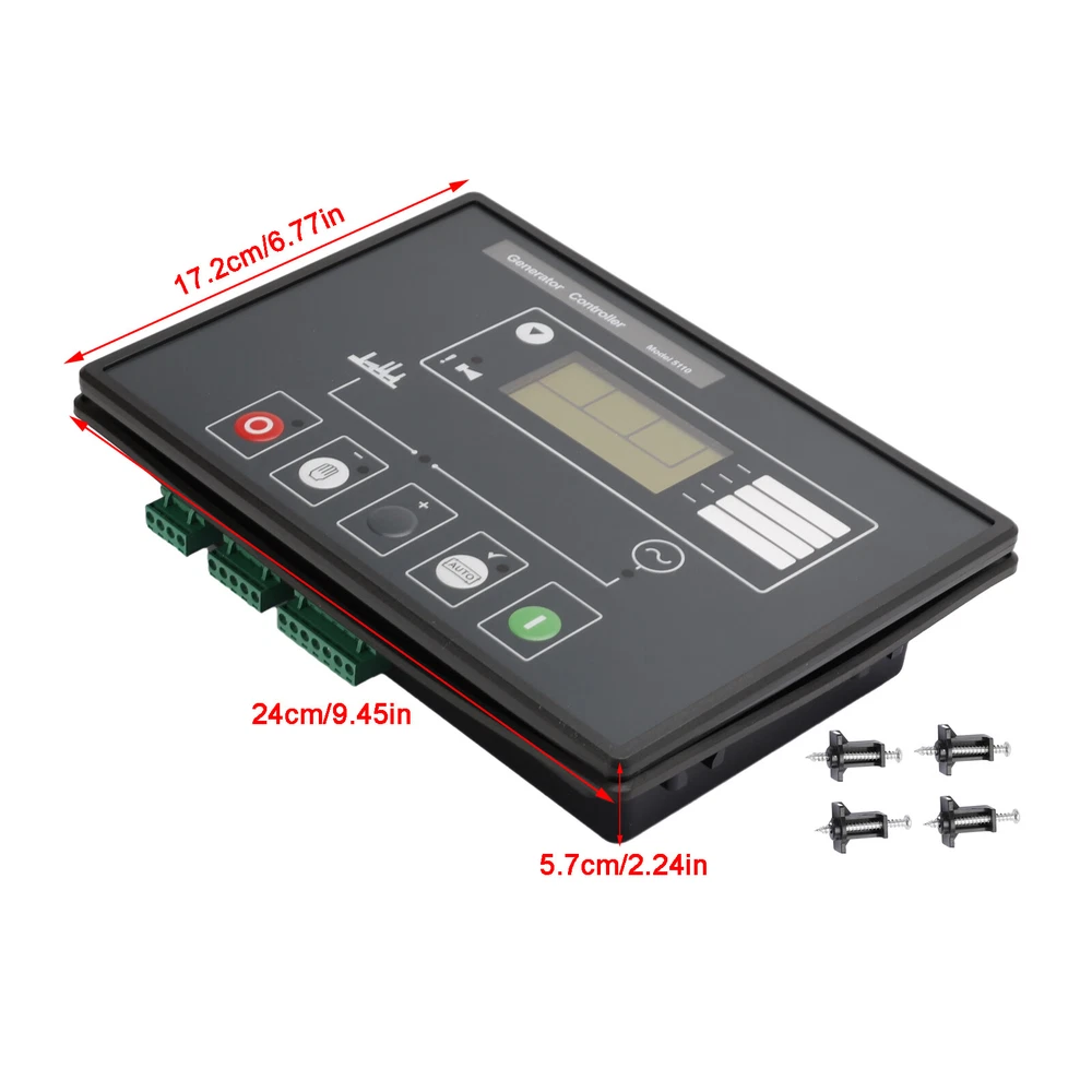 You may also like GAVR-15A AVR Universal Automatic Voltage Regulator Generator 15A 220V 39.85 USD Free shipping BAC06A 12V Battery Charger BAC06A-12V Controller For Smartgen Generator 58.85 USD Free shipping DSE6110 Generator Controller Auto Start Diesel Genset Control Panel 162.85 USD Free shipping AMF Controller Generator Control Panel DSE4520 Parts Automatic Power 85.36 USD 89.85 USD Free shipping 5% off Automatic Voltage Regulator AVR SE350 Compatible For Marathon Generator 28.85 USD Free shipping Automatic Voltage Regulator AVR R230 Compatible With Leroy Somer Generator 38.85 USD Free shipping GAVR-20A AVR Universal/Brushless Generator Automatic Voltage Regulator Module 44.85 USD Free shipping AVR SX440 Automatic Voltage Regulator Compatible With Generator Parts 50.85 USD Free shipping Automatic Voltage Regulator AVR R438 Compatible With Leroy Somer Generator 68.85 USD Free shipping Electronic Speed Controller Governor EFC3044196 3044196 Replacement For Cummins 69.85 USD Free shipping CH2810 12V/24VDC 10A Diesel Automatic Generator Battery Charger 58.85 USD Free shipping AVR MX321 Automatic Voltage Regulator Replacement For Generator 87.85 USD Free shipping DSE5110 Generator Auto Start Control Module Compatible With Deep Sea Feature: 1.Automatically starts 2.Automatically loads transfer 3.Configurable inputs & outputs 4.Configurable alarms & timers 5.Digital inputs 6.Analogue inputs 7.Back-lit character LCD display 8.Engine protection 9.Front panel mounting 10.PC configurable 11.100% Front panel configuration 12.LCD alarm indication 13.LED alarm indication 14.Icon based fault diagnostics Product Description: The DSE5110 is an Automatic Start Control Module designed to automatically start and stop diesel and gas generating sets that include non electronic engines. The module also provides excellent engine monitoring and protection features. The module has the ability to monitor under speed, over speed, charge failure, emergency stop, low oil pressure, high engine temperature, fail to start, fail to stop and loss of the speed sensing signal. The module displays fault conditions on the LCD display and via the LED indicators on the front. Specifics: Condition: 100% Brand New Part Number: DSE5110 Quantity: 1 Dc Supply: 8V to 35V continuous Cranking Dropouts: Able to survive 0V for 50mS, providing the supply was at least 10V before dropout and supply recovers to 5V Start Relay Output: 16A DC supply at supply voltage Fuel Relay Output: 16A DC at supply voltage Auxiliary Relay Outputs: 5A DC at supply voltage Charge Fail/Excitation Range: 0V to 35V Maximum operating Current: 320mA at 12V, 215mA at 24V Maximum stand by Current: 175mA at 12V, 95mA at 24V Alternator Input Range: 15V (L-N) to 333V AC (L-N) absolute maximum Alternator Input Frequency: 50-60 Hz at rated engine speed (Minimum: 15V AC L-N) Magnetic Pick-Up Voltage Input Range: +/- 0.5V to 70V Peak Magnetic Input Frequency: 10,000 Hz (max) at rated engine speed Overall: 240mm x 172mm/9.4" x 6.8" Panel Cut-Out: 220mm x 160mm/8.7" x 6.3" Maximum panel Thickness: 8mm/0.3" Note: 1.Please allow 1-3mm difference due to manual measurement. 2.Due to the light and screen difference, the item's color may be slightly different from the pictures. Package Included: 1 X Generator Controller Module Control Panel 1 X English Product Instructions -About US Founded in 2012, VIPJQ have professional development and sales, and are involved in various products, providing customers with various high-quality products. Since its establishment, VIPJQ has always adhered to the service concept of "customer first" and the management concept of "pursuit of quality", and is committed to providing customers with high-quality original designs. We commit to provide you the best innovative, quality products & professional services with competitive prices. We value every customer, and we look forward to providing solutions for your business needs to help your business achieve its goals, please contact us immediately! We are all about you! We are a Japanese seller,but with large warehouse in USA. We are profesional on Auto Parts,Car Parts,Motorcycle Parts,3C,other hot sale items and so on. We aim to provide to customers high quality product and best service. -About Shipment&Returns The item usually will be dispatched within 3 days after you ordered.All are free shipping. And it usually takes 3-10 working days to delivery depends on buyers' address or other majeure on the way. If you are not satisfied with the items and want to return the item,we hope you could message us first,we will give you the return details, we think we could give you the best service to save your time and money.Thank you. -About Feedback&Customer Service If you are enjoy your shopping here,not only enjoy the items but also the service,we are appreciate you could give us a 5-star feedback. If you are not satisfied with the item,before you give us the negative feedback,we hope we could give you the best solution through our commutication. We think we could do it if you give us the chance.Thank you.