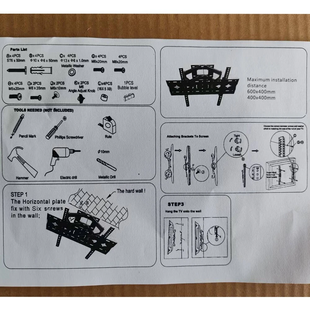 Pet Hair Remover Dog Cat Comb Grooming Massage Deshedding Self Cleaning Brush US 7.1 USD 8.99 USD Free shipping 21% off RECHARGEABLE LED Light-up Flash GLOW COLLAR Dog Pet Safety MICRO USB adjustable 7.51 USD 7.99 USD Free shipping 6% off Pants Rack Shelves 5 in 1 Multi-functional Stainless Steel Wardrobe Magic Hanger 6.8 USD 7.99 USD Free shipping 15% off Solar Power 23 ft 50 LED Flower Fairy Garden Lights Outdoor Decor Waterproof 10.33 USD 10.99 USD Free shipping 6% off Pet Hair Remover Reusable Cat and Dog Hair Remover for Furniture Couch 7.5 USD 10.99 USD Free shipping 32% off Self-Adhesive Leather Repair Patch Tape for Car Seats Couch Sofa Chair Jacket 5.6 USD 10.99 USD Free shipping 49% off Pants Rack Shelves 5-in-1 Steel Multi-functional Wardrobe Hanger 6.2 USD 8.99 USD Free shipping 31% off Wall Mount Magnetic Knife Scissor Storage Holder Rack Strip Kitchen Tool 8.45 USD 8.99 USD Free shipping 6% off Wireless Bluetooth LED Light Speaker Bulb RGB E27 12W Music Playing lamp Remote 9.8 USD 13.99 USD Free shipping 30% off Tactical Dog Collar w/ Handle +Leash Heavy Duty Military Service Canine Training 12.5 USD 15.99 USD Free shipping 22% off Reusable Dog Cat Pet Hair Remover Roller for Furniture, Couch, Carpet, Car Seat 7.1 USD 12.99 USD Free shipping 45% off Solar Power 46 ft 100 LED Flower Fairy Garden Lights Outdoor Decor Waterproof 15.2 USD 19.99 USD Free shipping 24% off SAFE & SECURE SHOPPING 100% SATISFACTION GUARANTEED FAST SHIPPING You may also like Bathroom Accessories Set 6 Pcs Toilet Paper Holder Towel Bar Hooks Matte Black 19.5 USD 23.99 USD Free shipping 19% off Cast Iron Grill Press Weight Steak Burger Press Griddles Flattops Bacon Paninis 15.4 USD 19.99 USD Free shipping 23% off 2 Pack Electric UV Mosquito Killer Lamp Outdoor/Indoor Bug Insect Zapper Trap 18.04 USD Free shipping Electric Mason Jar Vacuum Sealer Kit for Wide Mouth and Regular Mouth Mason Jars 17.5 USD 19.99 USD Free shipping 12% off 35 PCS Christmas Charms Cartoon Kids Children Shoe charms Compatible Crocs 7.1 USD 14.99 USD Free shipping 53% off Reusable Dog Cat Pet Hair Remover Roller for Furniture, Couch, Carpet, Car Seat 7.1 USD 12.99 USD Free shipping 45% off DUAL ARM SWIVEL LCD LED FULL MOTION TV WALL MOUNT 32 42 47 50 55 60 65 70 75 80 Product Description DUAL ARM SWIVEL LCD LED FULL MOTION TV WALL MOUNT 32 42 47 50 55 60 65 70 75 80 This Dual arm full-motion mount accommodates most 32"-80" flat panel TVs up to 88lbs. This mount extends out 14" from wall and allows full-motion capabilities. Full motion allows maximum flexibility, tilts and swivel your TV for easy viewing from any seat in a room. Its post-installation leveling adjustment ensures the TV is perfectly positioned on the wall. Integrated cable management system keeps cables organized and protected. FITS MOST SCREEN SIZES 32" - 80" Screen size support used as a general guideline only. Actual fit is determined by the VESA measurements and weight capacity of this mount. VESA measurements are your mounting hole distance on the back of your TV Supports TVs up to 88lbs VESA mounting pattern max: 100 mm x 100 mm 600 mm x 400 mm (23.6 x 15.75 inches max) Includes all mounting hardware required to install mount onto wall. Common screws included to install TV onto mount. These included screws will fit 95% of TV on the market. If you TV requires special screws, they will need to be purchased separtly from a hardware store. TV tiles +3/- 15 degrees Swivels freely from side to side Max TV to wall distance: 14" Safety Retaining Screw Color: Black About Us Payment Shipping Returns Contact Us About Us 1. Welcome! We specialize in home & garden products, such as solar sensor light, LED grow light, TV wall mount bracket, shelf bracket, towel bar, pants rack, nail file clippers, vacuum sealer and bags, food container, vegetable chopper, sink strainer, can opener, air fryer liner, cookie mold and ect. Our warehouse locates in Forney. It is a clean and smoke-free warehouse. Packages will be shipped to you FREE (domestic only) within 24 hrs. Guarantee of 30-days money back is also provided. We keep on sourcing, and will constantly update our cool & creative products. If you get interest in any cool merchandise overseas, something not shown on eBay, please do not hesitate to contact us. We’ll do our best.We dedicate to provide high-quality products only and create a relax and reliable shopping site for every single customer. If you are happy here, please leave positive feedbacks, your encouragement means a lot to us. If there is anything we can do for you, please feel free to let us know. 2.We also has over 5 years of shipping experience with FedEx and USPS . Our Packing Quality is Guaranteed , Item Ship-ping is timely! Payment 1.We accept PayPal and all forms of credit card. 2.We will only ship to the confirmed Paypal shipping address given with the payment. 3.We do not offer local pick up service. Shipping 1.The shipping rates listed are only for residential or commercial destinations in the continental 48 United States. All international sales will go through eBay Global Shipping Program.please ask us if there are any questions. 2.We only ship the item to the address that is sent to us at the time of checkout. Please verify the correct shipping address in your PayPal account before making your payment. If we ship your item to an old or invalid address and you are not able to locate the item, we are not responsible for shipping a replacement. 3.Currently, we do not ship to Hawaii, Alaska, Puerto Rico,APO/FPO/PO Boxes. 4.We use USPS, UPS & FedEx as shipping method. 5.Payments cleared before 12 PM PST, will be shipped on the same day. Returns 1.30 days Money Back Guarantee. 2.If any package that needs to be returned, please contact our customer service first to receive a RMA form. 3.All return items MUST be in brand new condition. Contact Us l Your five-star reviews help us grow and improve our business, and help us keep eBay fees down. Please give us posi